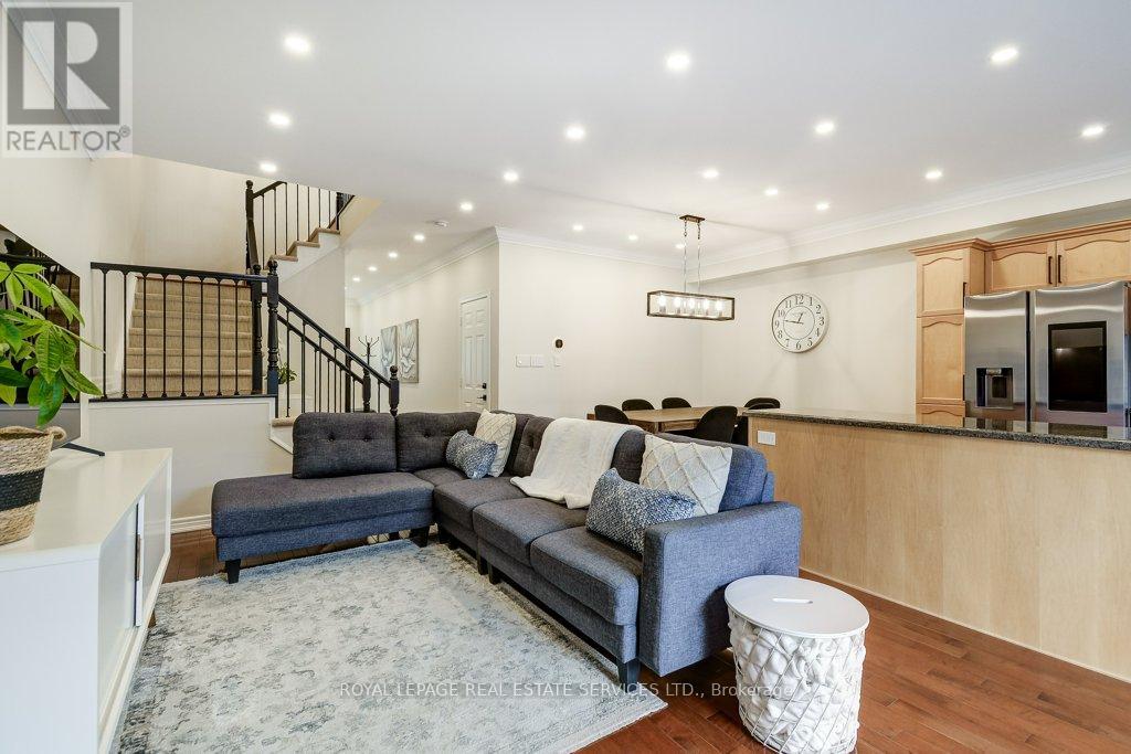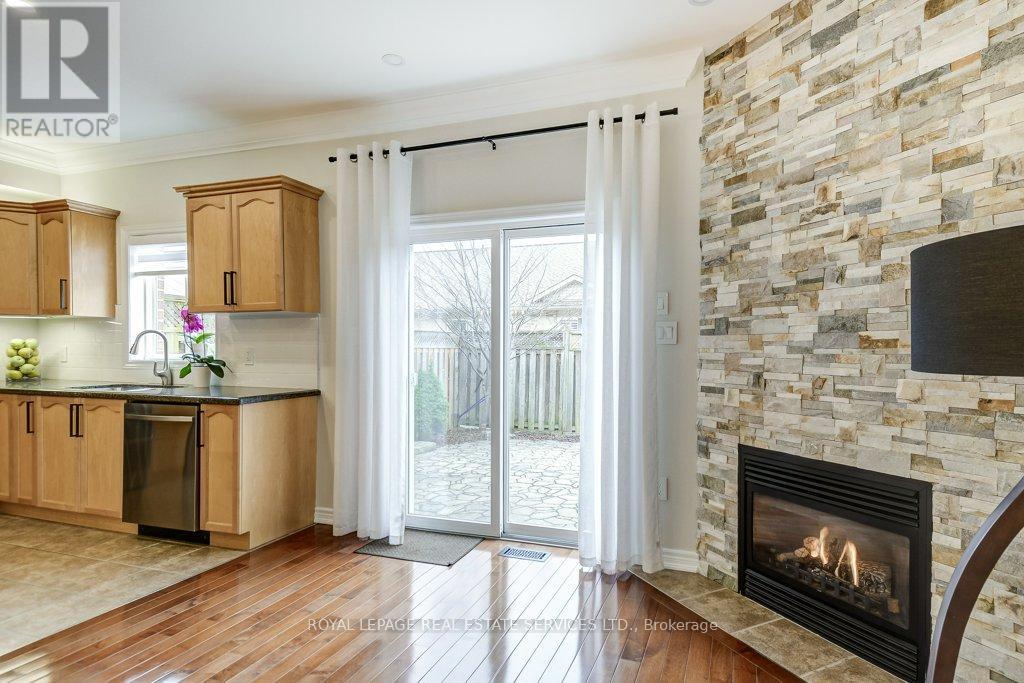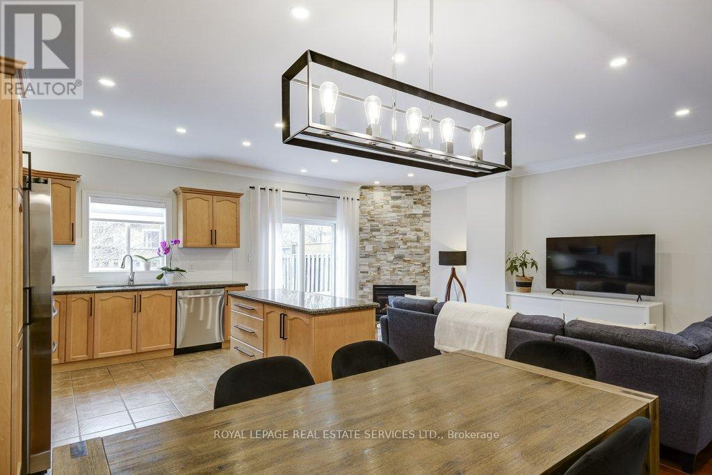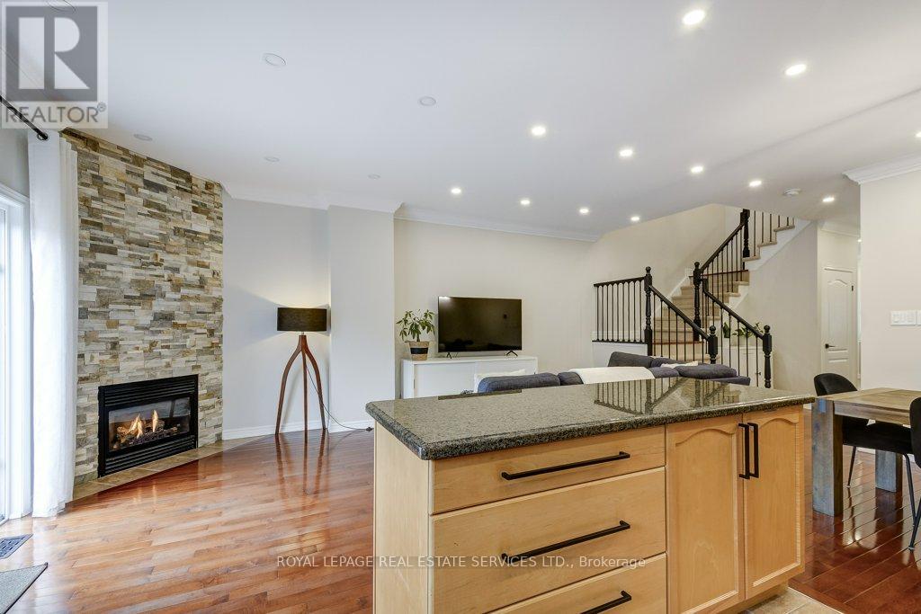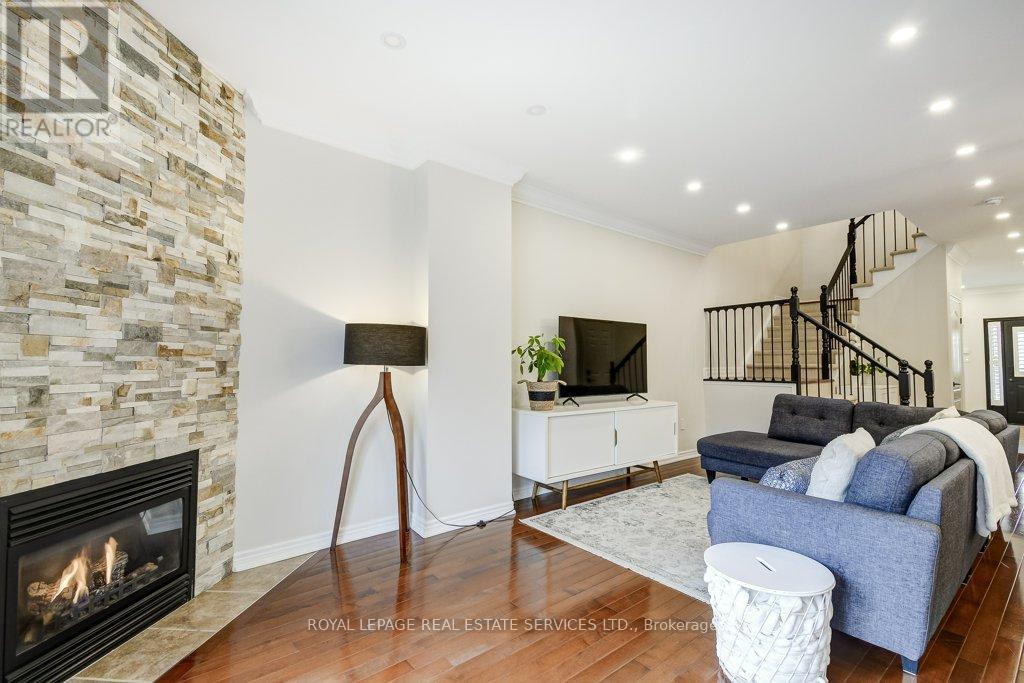 Welcome to this immaculate, spacious 3-bedroom freehold townhouse that shows like new. Ideally located across from Tansley Woods Park, it offers beautiful green space, walking trails, and a perfect setting for families and outdoor enjoyment.Exceptionally well maintained and thoughtfully updated, this home blends modern finishes with everyday functionality. The bright main floor features 9-foot flat ceilings, crown moulding, and pot lights that create a warm, well-lit atmosphere. Fresh paint is complemented by modern light fixtures, updated Decora plugs and switches, and a stylish gas fireplace in the family room, perfect for cozy evenings. The kitchen is both beautiful and functional, featuring granite countertops, a new backsplash, and a full suite of approximately 4-year-old appliances, including a GE gas stove, Samsung fridge, Samsung dishwasher, and built-in Samsung microwave. A convenient 2-piece powder room with updated toilet, inside garage entry, and garage door opener complete the main level. Upstairs offers additional pot lights, updated railings, and modern door handles. The large landing enhances the sense of space and leads to second floor laundry with an Electrolux washer and dryer. Maple hardwood flooring runs throughout both levels, leading to a spacious primary bedroom with a walk-in closet and private 4-piece ensuite. Two additional bedrooms and a second 4-piece bathroom provide comfort for the whole family. The professionally finished lower level adds living space with pot lights, laminate flooring, and a bathroom rough-in. Enjoy a fenced backyard with perennial garden and gas BBQ hookup. Additional features include central vacuum, smart thermostat, humidifier, new furnace and A/C, phantom screen door, and 2022 roof. This turnkey home combines style, comfort, and an unbeatable location, ready for you to move in and enjoy. (id:64974)