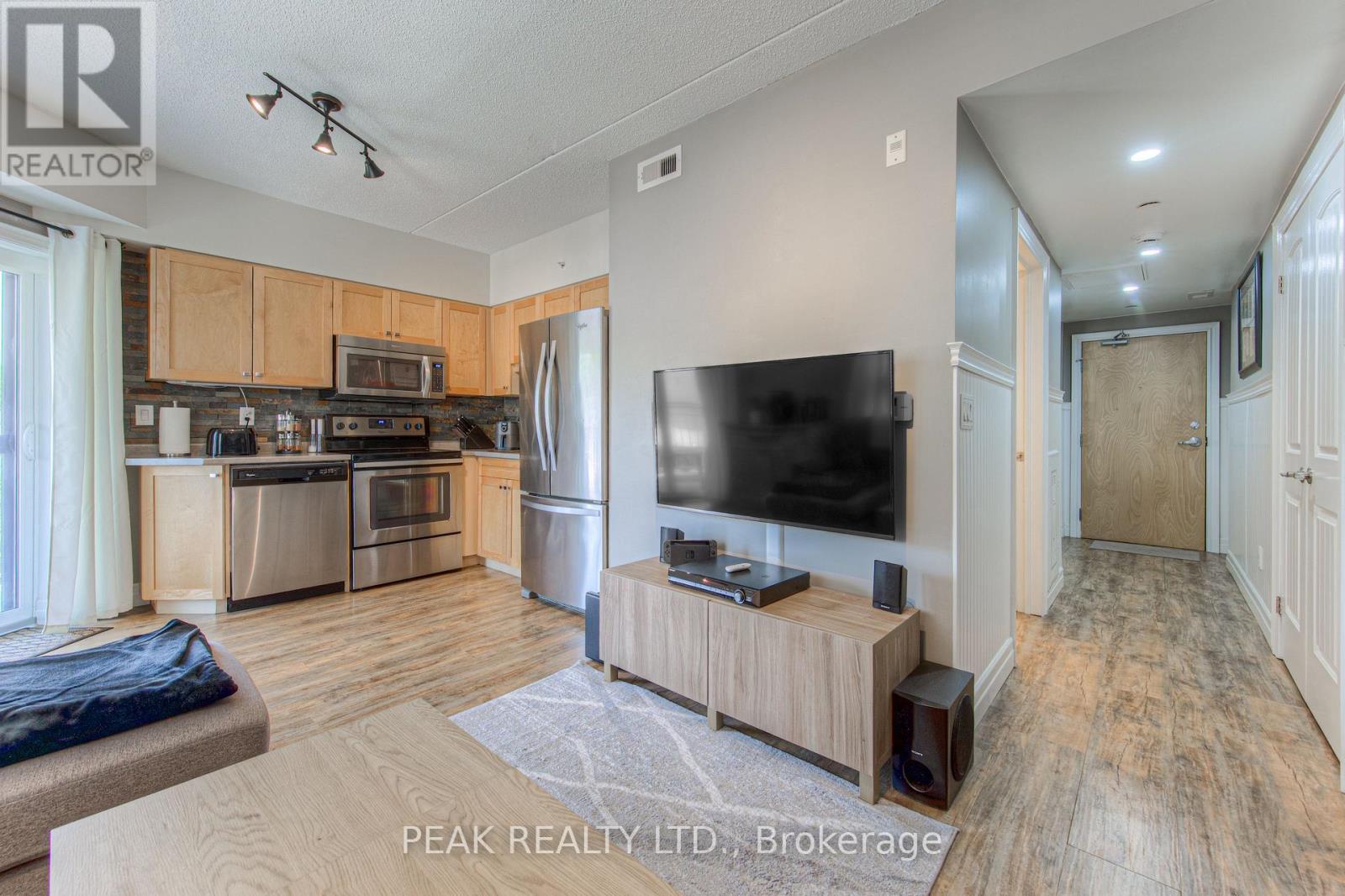 Welcome to this stylish and well-appointed 1-bedroom, 1-bathroom condo ideally situated near the Grand River and the vibrant, up-and-coming Gaslight District. Featuring stainless steel appliances, an electric fireplace, and a generous balcony perfect for taking in the surrounding views, this unit offers a great balance of modern comfort and everyday functionality. One of the standout features is the underground covered parking spot a valuable bonus that offers both convenience and year-round protection from the elements. Whether you're a young professional, first-time buyer, or someone looking to downsize, you'll appreciate the easy access to downtown amenities, restaurants, trails, and public transit. This is your chance to enjoy a low-maintenance lifestyle in one of Cambridges most exciting and evolving neighbourhoods. (id:64974)