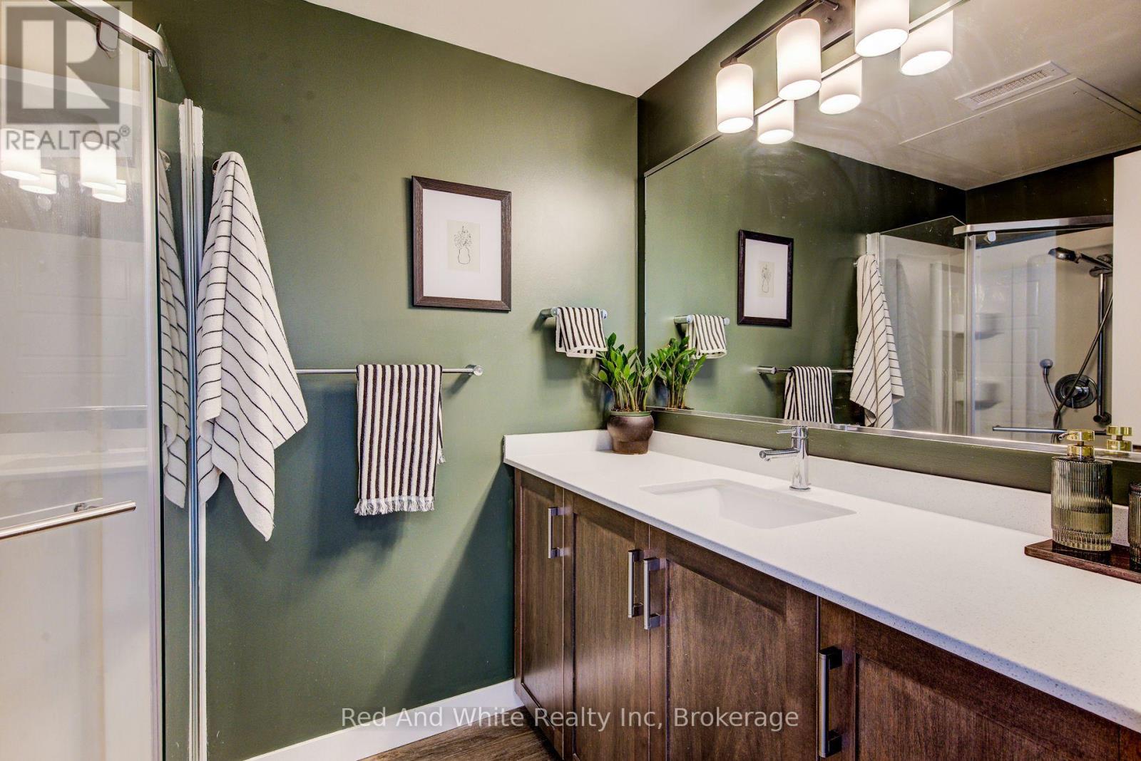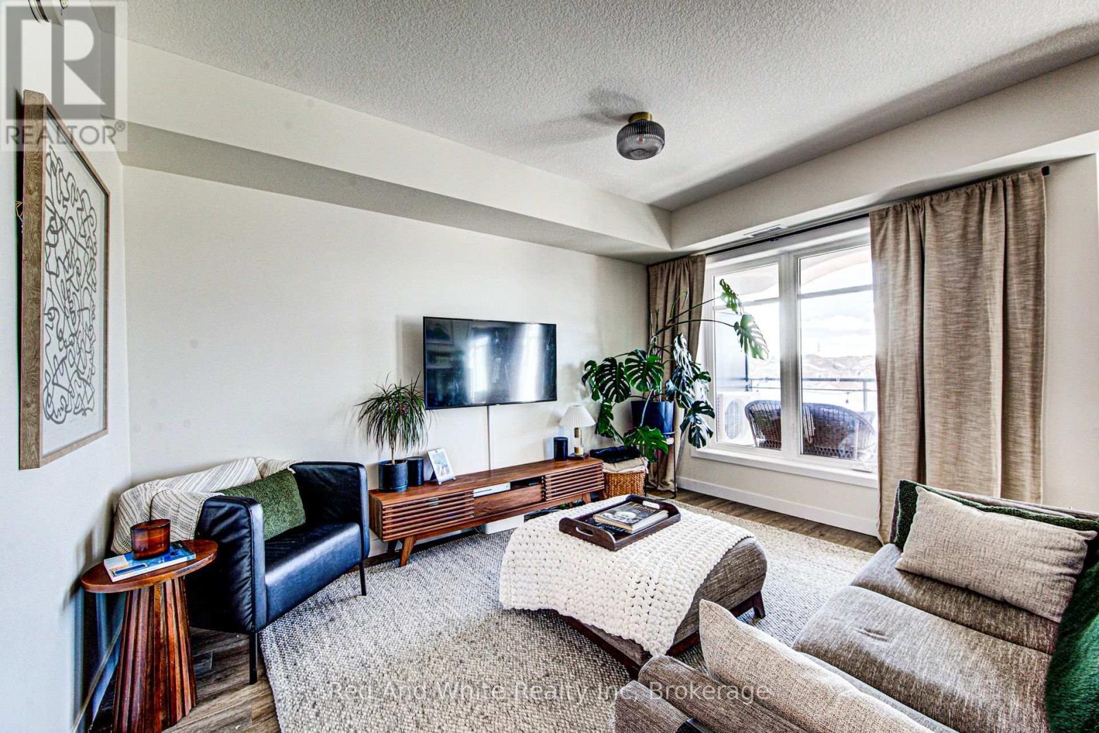 A rarely offered, bright and spacious 2-bedroom, 2-bathroom condo in the highly desirable Williamsburg neighbourhood. This well-maintained unit offers an ideal blend of comfort, convenience, and lifestyle. Enjoy a sun-filled west-facing exposure, bringing in incredible natural light throughout the afternoon and evening-perfect for unwinding after a long day or hosting friends and family in the generous living space. The modern kitchen features a large island, gorgeous cabinetry, and plenty of prep space, making it both functional and inviting. In-unit laundry adds everyday convenience, while thoughtful layout and ample space make this home feel anything but typical condo living. Step outside and you're just moments from parks, shops, and restaurants, with most daily needs within walking distance. Commuters will appreciate being less than 5 minutes to Highway 8. This property offers access to a gym and party room, along with 1 parking space and a storage locker. Affordable condo fees make this an excellent opportunity for first-time buyers, downsizers, or investors alike. (id:64974)