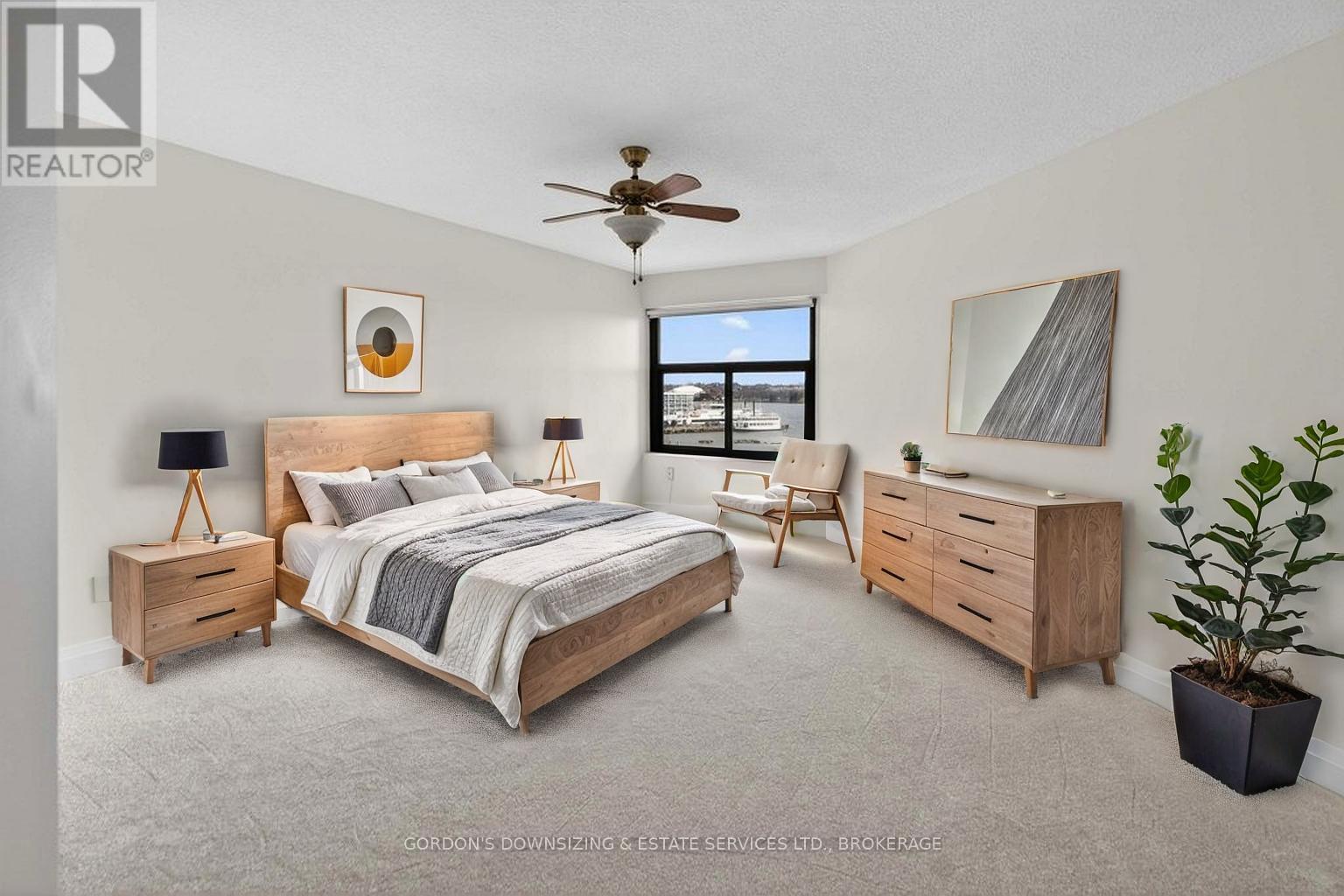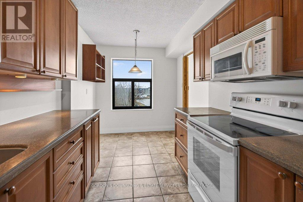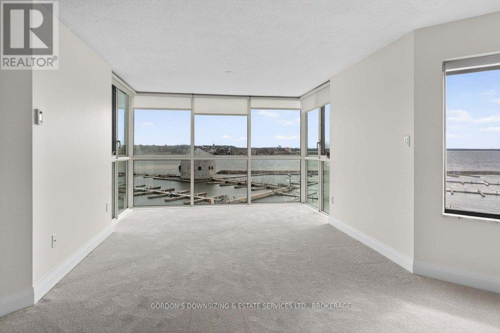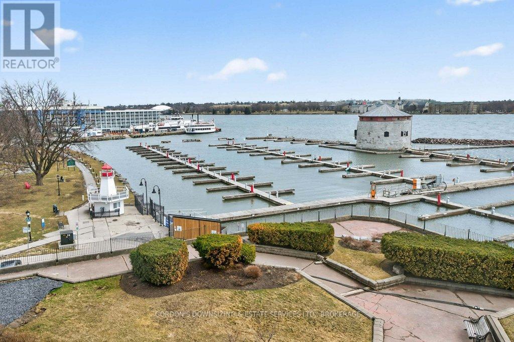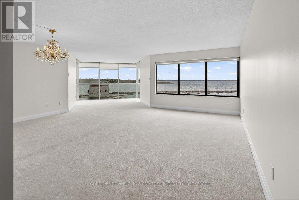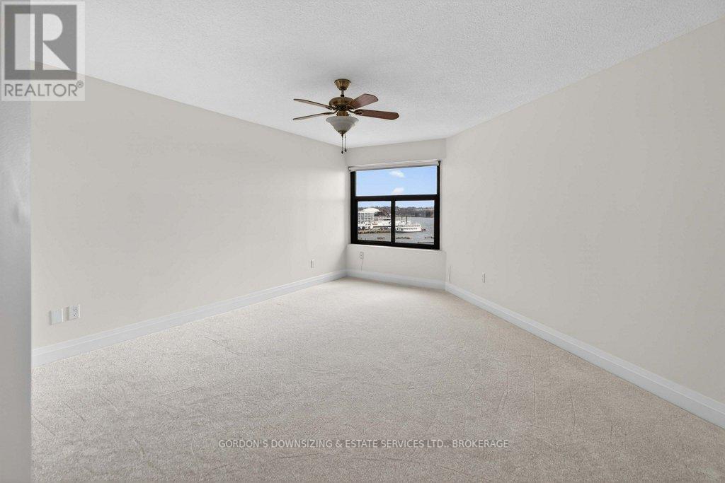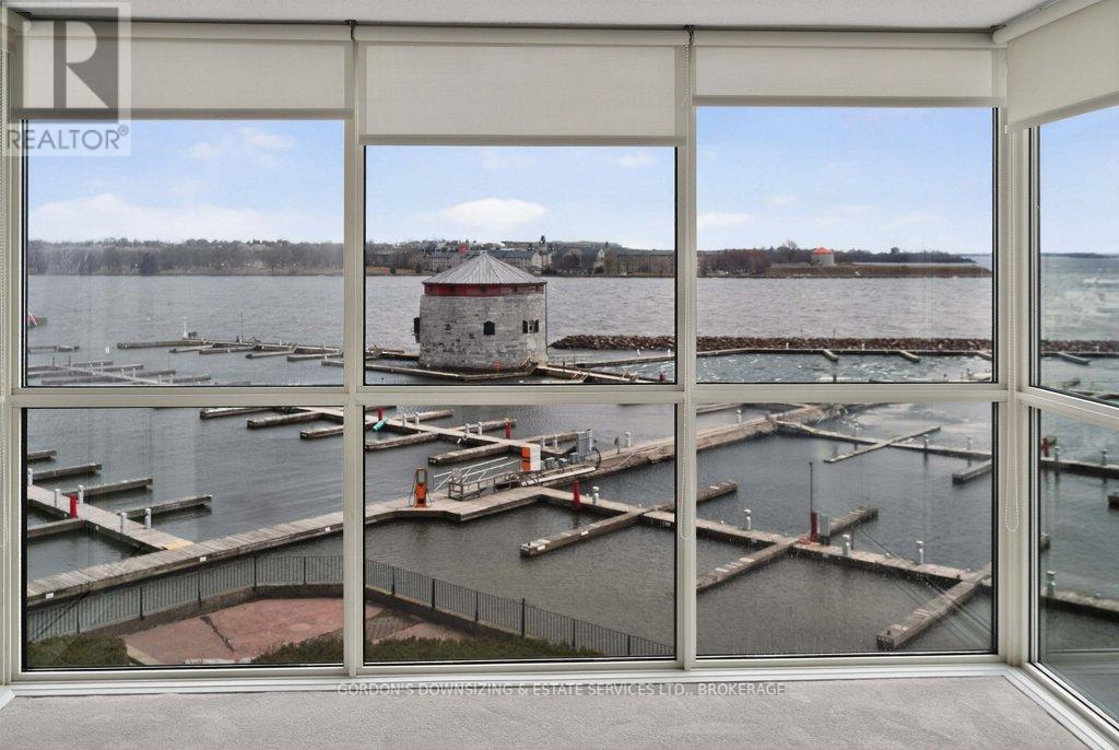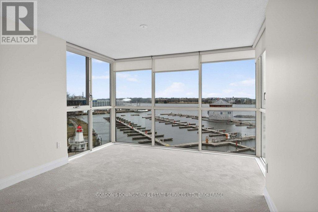Welcome to the prestigious Harbour Place in the heart of downtown Kingston. This move-in-ready fourth-floor condominium offers approximately 1,816 sq. ft. of thoughtfully designed living space, enhanced by breathtaking south-east panoramic water views from every room. Enjoy spectacular views of Confederation Basin, RMC, and the iconic Fort Henry. Enjoy the perfect balance of luxury and convenience in this freshly painted spacious two-bedroom plus den/office, two-bathroom suite. The bright, inviting living room with new carpeting, floor-to-ceiling windows and adjoining dining area overlook Kingston's historic waterfront, creating a stunning backdrop for both everyday living and entertaining. The galley kitchen features ample cabinetry, including a pantry and breakfast nook. In-suite laundry, a dedicated storage room, and multiple closets provide exceptional functionality and organization. The spacious primary bedroom features a walk-in closet, new carpeting, and a well-appointed three-piece ensuite. A generous second bedroom offers a double set of closets, hardwood flooring, and access to a full second bathroom-ideal for guests or family. An additional den or office with hardwood flooring provides flexible space perfectly suited for working from home, hobbies, or a quiet reading retreat. Residents of Harbour Place enjoy an impressive array of amenities, including underground and visitor parking, an indoor pool, sauna, fitness room, squash court, car wash, party room, hobby room, and more-delivering a true maintenance-free lifestyle. Step outside and immerse yourself in the energy of Kingston's vibrant downtown-stroll scenic waterfront trails, explore boutique shops, and enjoy dining at some of the city's finest restaurants, all just moments from your door. Also ideally situated with easy access to Queen's University, CFB Kingston. Confederation Basin and Market square. (id:64974)
