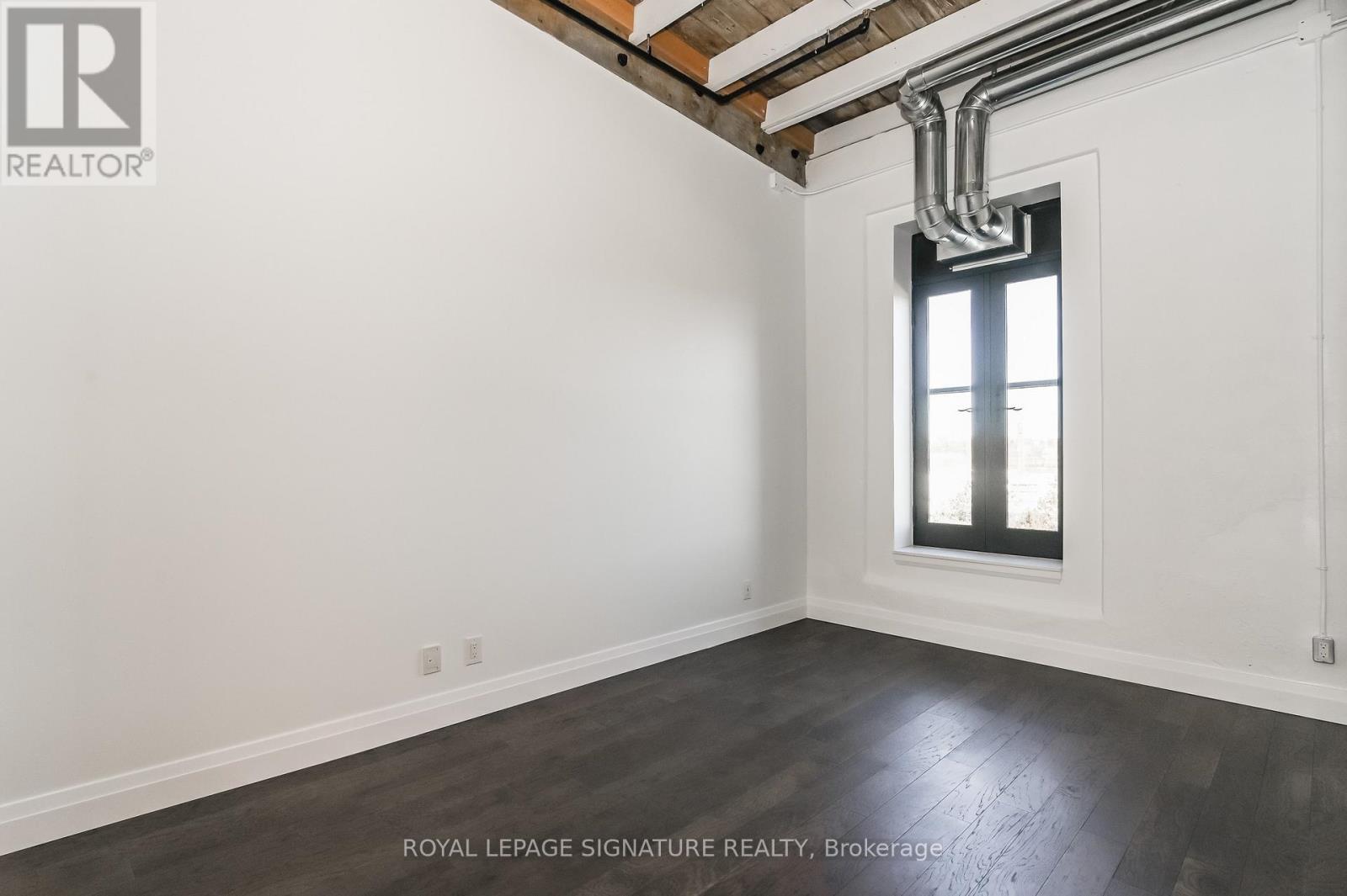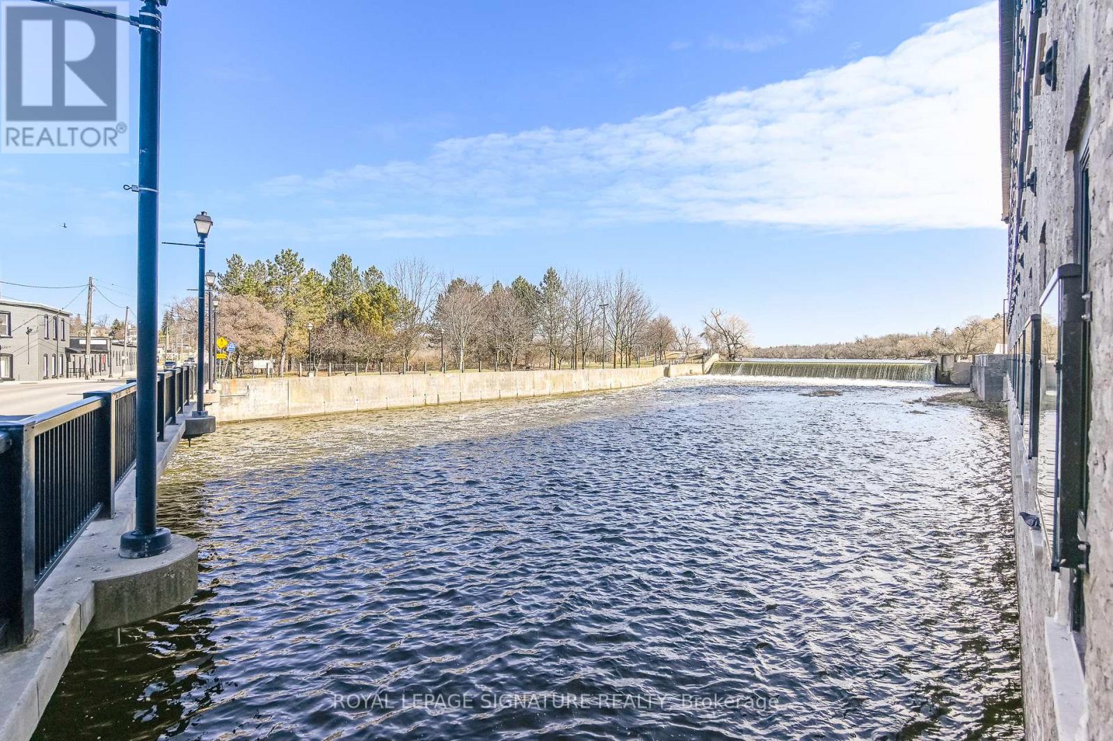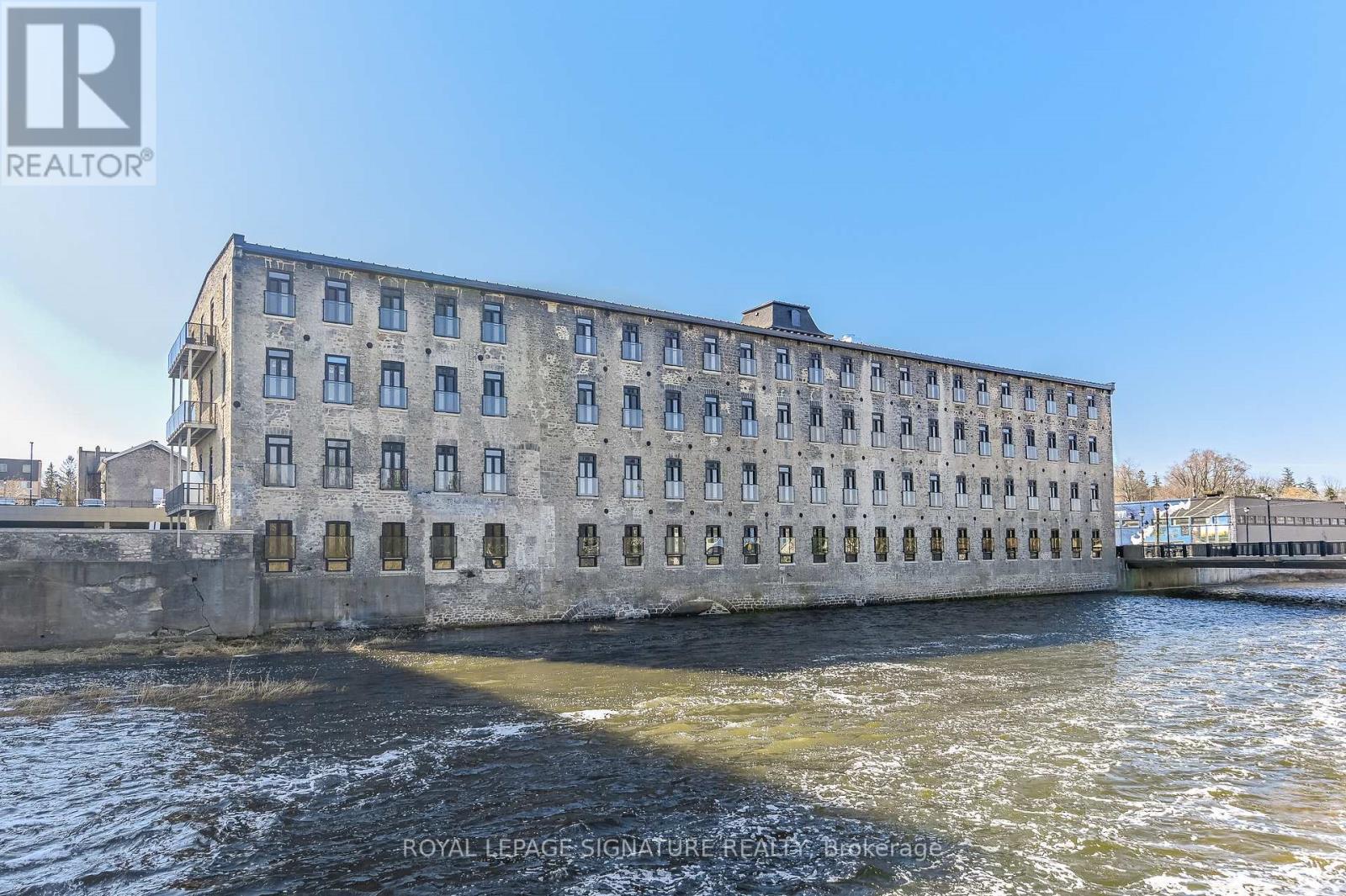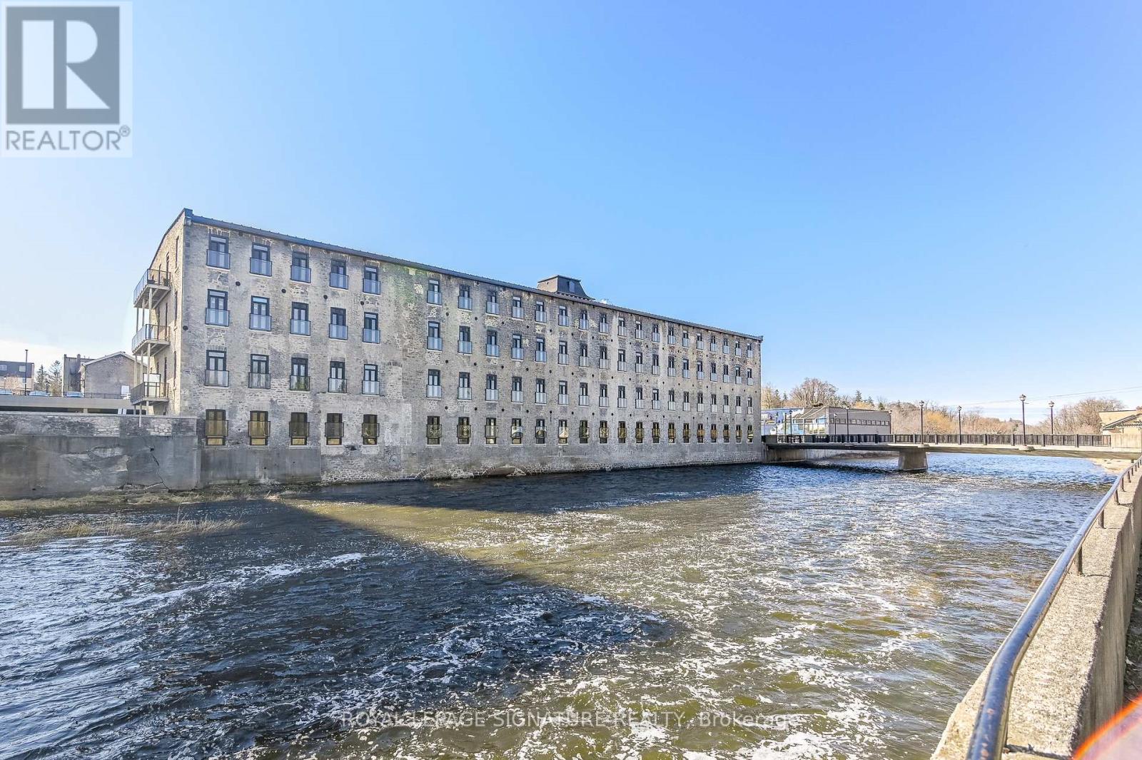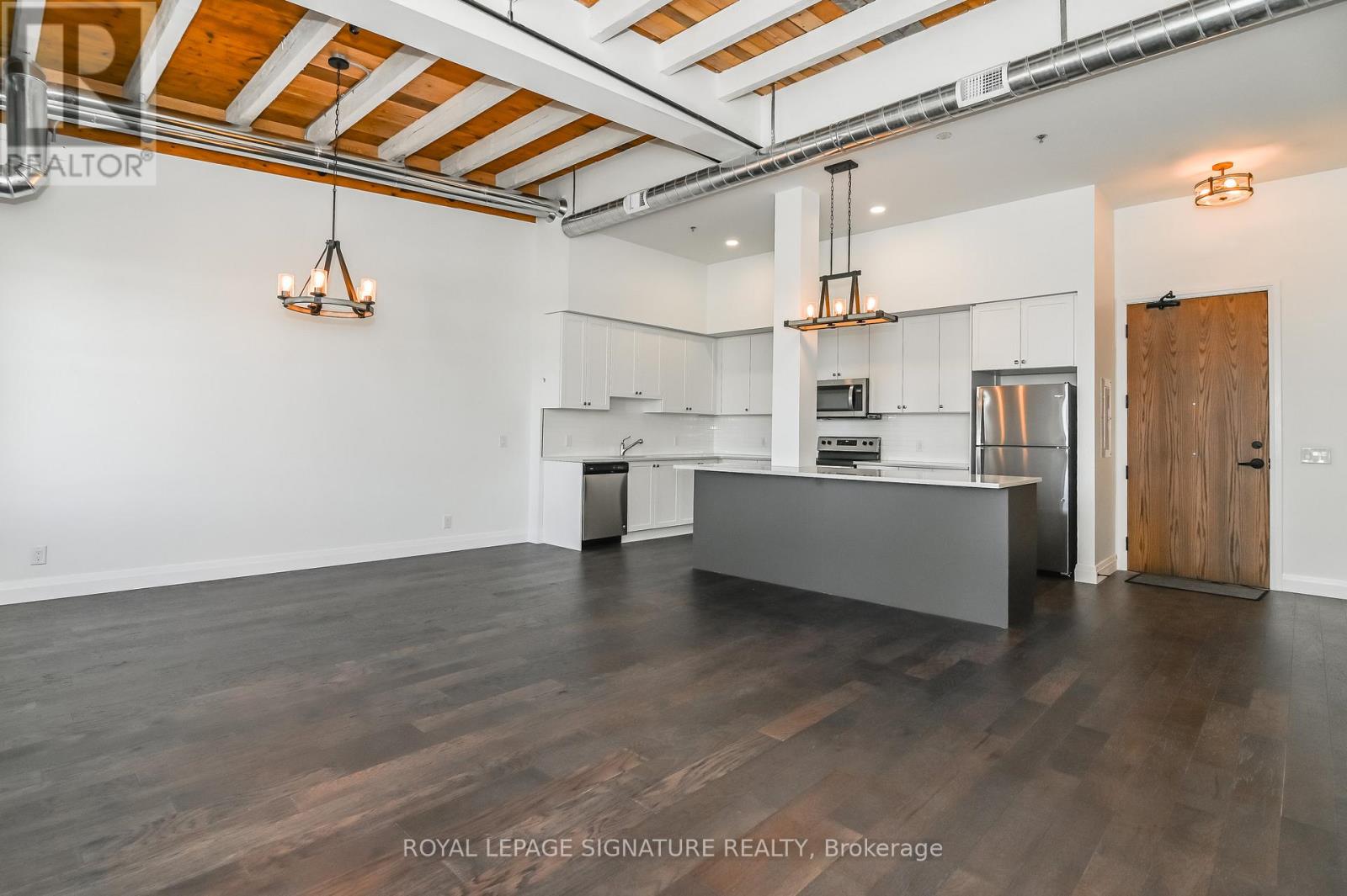 Rarely offered opportunity to lease a unit on the top floor in this luxury historic converted building in the heart of Hespeler Village. This 2 bed, 2 bath suite showcases original post and beam construction, soaring 15' ceilings, and plenty of windows with Juliette balconies which frame unobstructed views of the Speed River. Thoughtfully designed with a spacious, functional open concept layout and hardwood floors throughout. The modern kitchen featuring stainless steel appliances, quartz countertops and an oversized island with breakfast bar completes the center of this home. Accessibility-friendly with wider doorways, hallways and bathroom. The building was carefully crafted to appreciate the historic craftsmanship while infusing modern day finishes and amenities. This suite includes a very rare 2 car enclosed private garage. Enjoy the charm of this historic community- you're just steps away from downtown Hespeler and it's restaurants, boutique shops, cafes, library, long scenic trails and parks. Convenient access to HWY 401 and nearby amenities makes commuting effortless while still offering an elevated lifestyle yet peaceful setting to come home to. (id:64974)