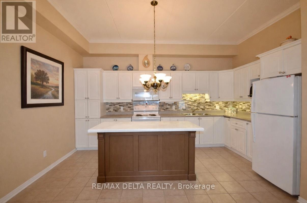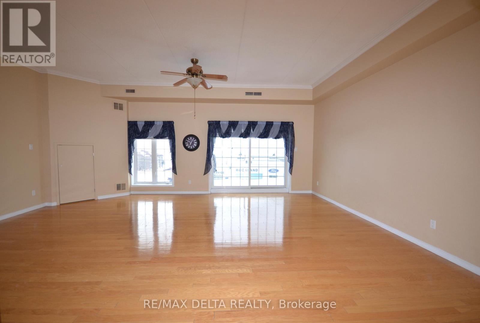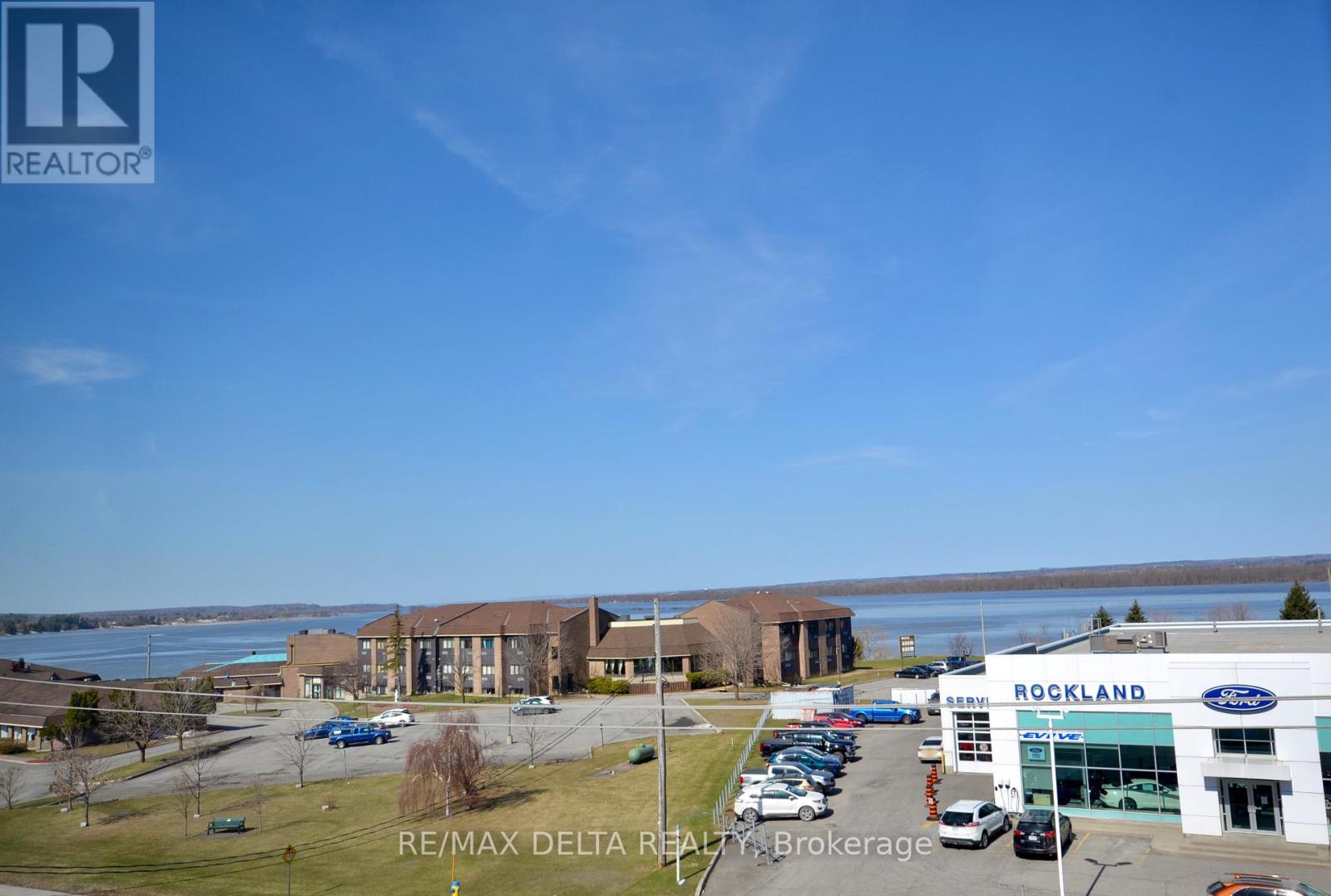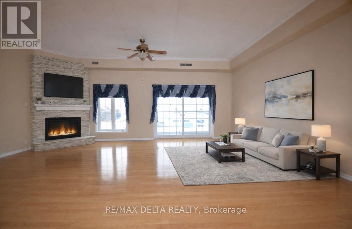 Welcome to this lovely 2 Bedroom condominium located on the 4th floor of this secured well maintained building in the heart of Rockland with breathtaking views of the Ottawa River. This unit boast a bright spacious kitchen with plenty of white cabinetry and space for island, ceramic flooring, open concept to dining and living room, balcony enjoy amazing views of the stunning sunsets, 9 foot ceiling, hardwood floors throughout, primary bedroom with double closets, separate balcony, second good size bedroom, 4 pcs bath with corner shower, and tub, in unit laundry, storage room, 2pcs bath conveniently located at entrance. This unit also offer a secure underground parking space and an additional exterior parking space, elevator, the use of a party room, wheelchair accessibility, close to all amenities with walking distance to most. Book your private viewing today and make this your new place to call home. Some photos are virtually staged. (id:64974)