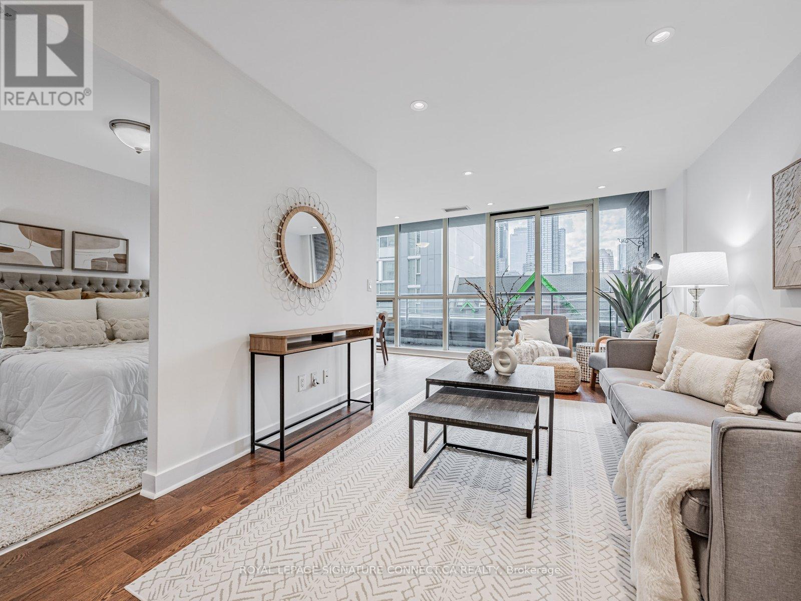 Condo living the way it should be experienced! In a city full of micro-condos, Unit 407 rises above the rest-and at an INCREDIBLE price. This spacious 1+Den (easily used as a second bedroom) offers over 900 sq.ft. of bright, open living space with a layout that actually lives like a home. Storage is never an issue here: large closets throughout-including a walk-in in the primary bedroom and large unit in the kitchen give you room for everything you need all year round. The bedroom features newly installed carpet, and the expansive floor plan offers endless ways to customize your space. Floor-to-ceiling windows span the full width of the unit, filling it with natural light, while new pot lights ensure it stays beautifully illuminated at any time of day. Location is unbeatable: the King St. streetcar is just two blocks away, Line 1 is a short walk to Yonge St., and grocery runs are effortless with No Frills, Metro, and the iconic St. Lawrence Market all within 300m. Enjoy impressive building amenities including a gym, guest suites, party room, rooftop deck, and 24-hour security. Unit 407 also comes with parking and a locker-a rare bonus in this area. Don't miss your chance to call this standout suite home! (id:64974)