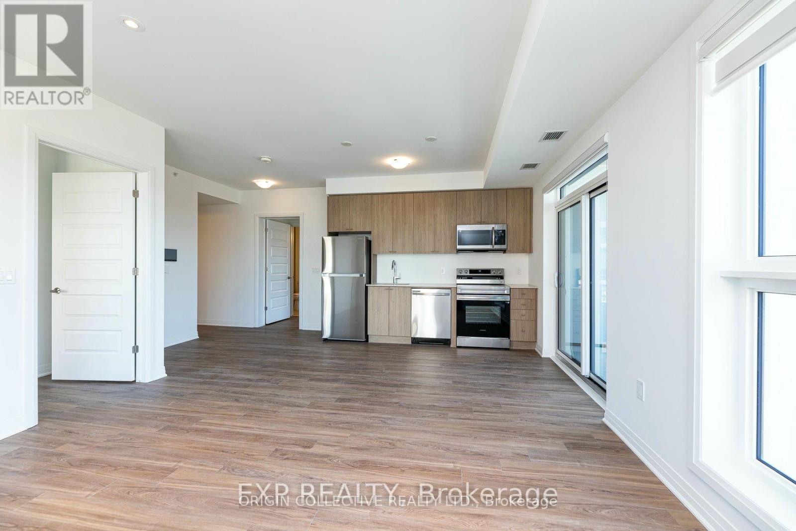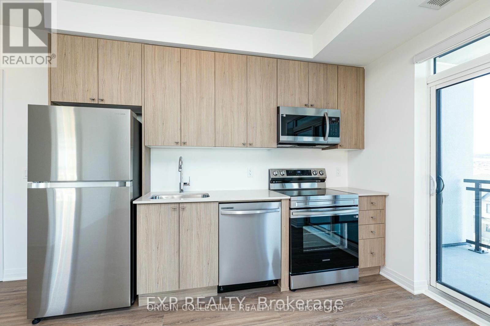 Welcome to this bright and spacious 2-bedroom + den, 2 full bathroom northwest-facing suite with stunning escarpment views. Offering 875 sq. ft. of open-concept living plus a private balcony, this sun-filled corner unit delivers both style and functionality. The desirable split-bedroom layout provides added privacy, while the modern kitchen features quartz countertops, stainless steel appliances, and a sleek backsplash. A dedicated den is perfect for a home office or study space. Enjoy laminate flooring throughout, in-suite laundry, 1 underground parking space, and a large locker conveniently located on the same floor near the unit. Premium building amenities include 24-hour concierge, visitor parking, party room, fully equipped gym, and rooftop terrace with BBQ lounge. Ideally located near the future Wilfrid Laurier University and Conestoga College campuses, Kelso Conservation Area, and downtown Milton - offering the perfect balance of nature and convenience (id:64974)