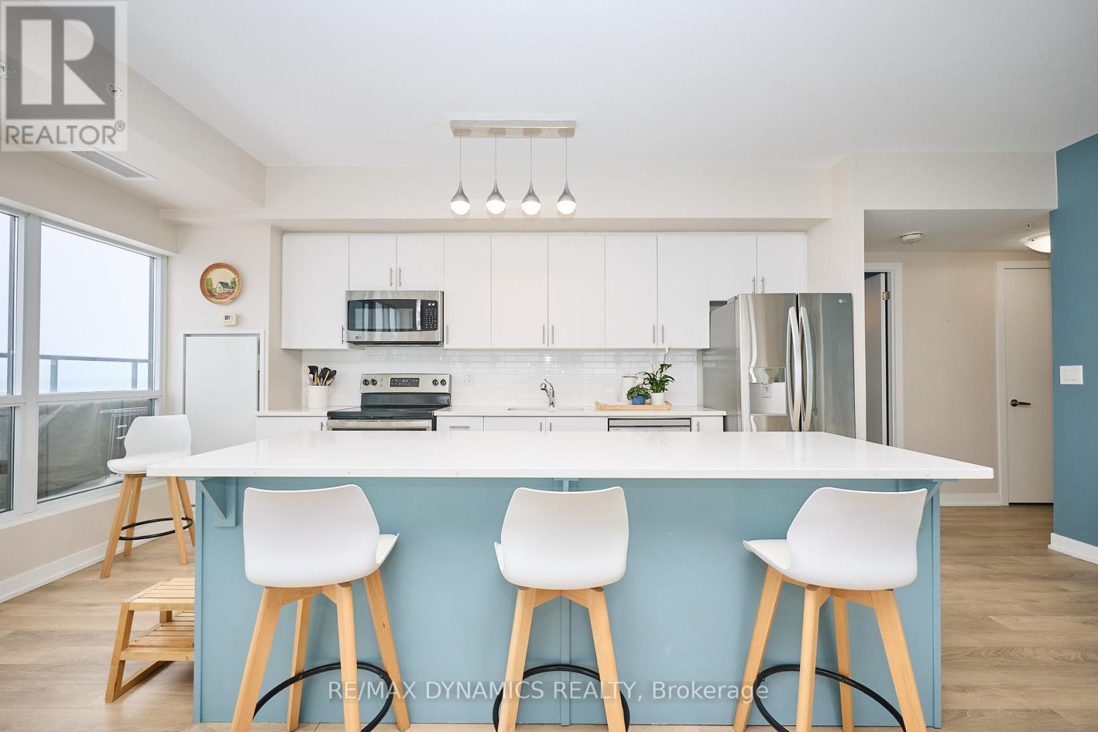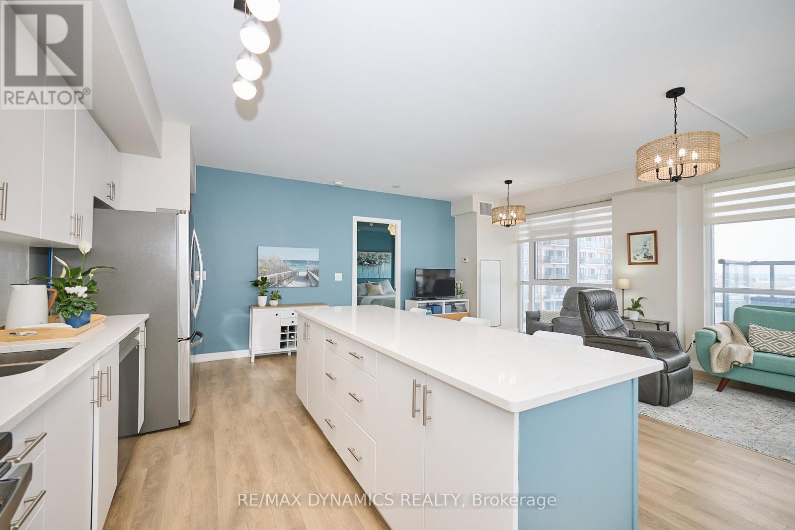 Wake up every day to breathtaking lake and city skyline views-including Toronto-in this stunning modern corner suite designed to impress and inspire. An expansive private terrace sets the stage for unforgettable summer gatherings, morning coffees, and sunset evenings overlooking the water. Inside, the bright open-concept layout is wrapped in floor-to-ceiling windows, filling the space with natural light and a constant connection to the outdoors.The two spacious bedrooms offer comfort and retreat, complete with walk-in closets, contemporary flooring, and beautifully finished bathrooms. The kitchen is the heart of the home-sleek, stylish, and made for entertaining-with stone countertops, an oversized island, and panoramic views that never get old. The primary suite delivers peaceful mornings with unobstructed lake views, while the second bedroom opens to its own private balcony for quiet moments outside. Enjoy effortless, low-maintenance luxury in a full-service building with exceptional amenities, concierge, and security. Set in Grimsby by the Lake, a vibrant waterfront community moments from highways, Niagara wine country, shopping, dining, and everyday conveniences. A rare opportunity to live where every day feels like a getaway. (id:64974)