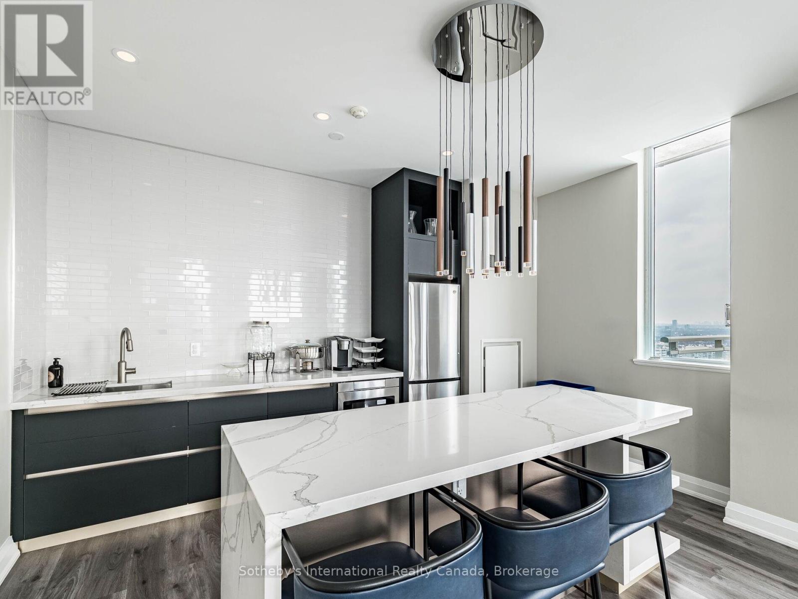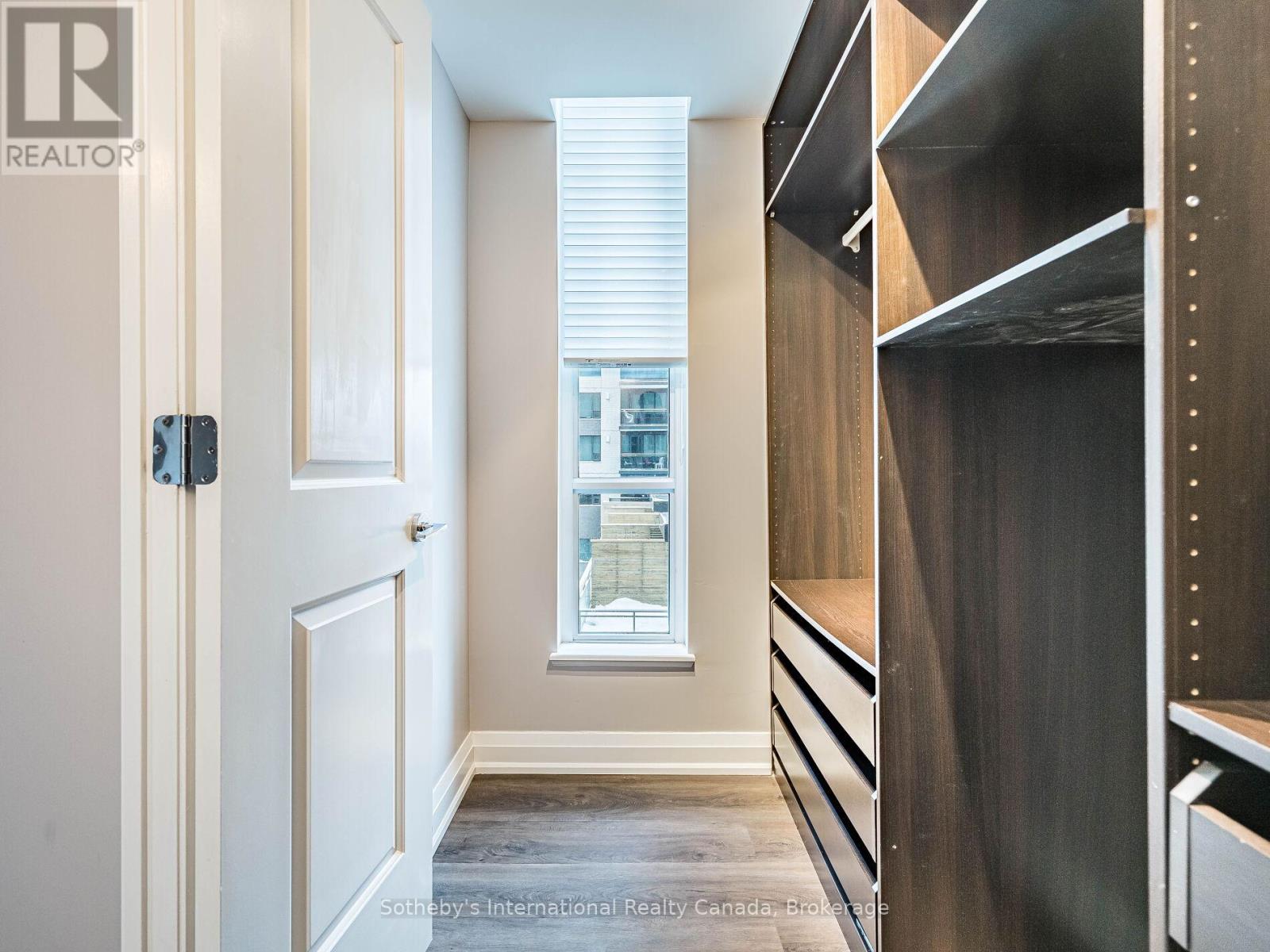 Welcome to this sun-drenched southwest corner suite in the heart of Toronto. Offering a thoughtfully designed 2-bedroom + den layout with 2 full bathrooms, this beautifully maintained residence combines comfort, style, and functionality. Featuring soaring 9-foot ceilings and expansive windows, the space is filled with natural light throughout the day, creating a warm and inviting atmosphere. The open-concept living and dining area is ideal for both everyday living and entertaining, with a seamless flow that maximizes space and flexibility. The recently renovated modern kitchen is equipped with stainless steel appliances and ample cabinetry, making meal preparation both efficient and enjoyable. The versatile den features a sophisticated office desk, providing an ideal work-from-home setup. A thoughtfully designed hallway organizer includes a convenient additional Murphy bed, offering smart storage solutions and flexible guest accommodation. The spacious primary bedroom includes a large closet and a private ensuite bathroom. A well-proportioned second bedroom and additional full bathroom offer comfort and privacy for family members or guests. This meticulously maintained suite reflects pride of ownership throughout. Enjoy the convenience of being just steps to the Yonge Subway Line and Crosstown LRT, as well as shopping, dining, cafés, parks, top-rated schools, and universities. With a Walk Score of 96, daily errands can be accomplished with ease. Residents enjoy access to premium building amenities including a basketball court, fitness pavilion, yoga studio, party room, rooftop terrace with hot tub, theatre room, meeting room, guest suites, and visitor parking. This exceptional property offers the perfect blend of urban convenience and modern living in one of Toronto's most desirable neighbourhoods. (id:64974)
