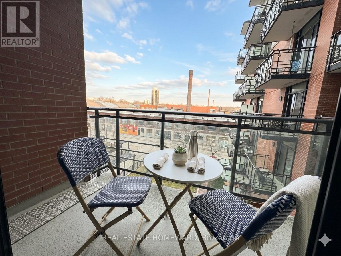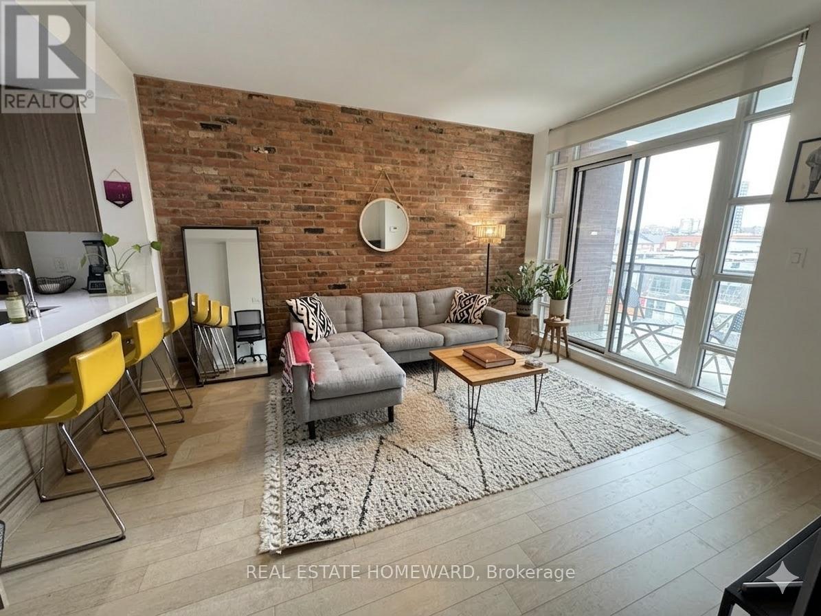 Not your typical 1-bedroom. Prime Leslieville location. This standout unit at Showcase Lofts delivers a rare combination of features, starting with a wider-than-average layout that offers a more functional, comfortable living space-ideal for entertaining, dining, or working from home. Modern finishes blend seamlessly with authentic loft character, including 9-ft smooth ceilings, engineered hardwood flooring, and a reclaimed brick feature wall that adds warmth and texture. The kitchen is both stylish and practical, featuring quartz countertops, stainless steel appliances, under-cabinet lighting, built-in wine rack, oversized under-mount sink, breakfast bar, and a gas stove-a true rarity.The bedroom is equally impressive with a walk-in closet, floor-to-ceiling windows, custom blinds, and a double walk-out to a large northwest-facing balcony overlooking the landscaped courtyard-quiet, private, and highly usable.Includes parking and locker.Well-managed building with full amenities: concierge, gym, party room, theatre/media room, guest suites, BBQ area, and visitor parking.Steps to Queen East's cafés, restaurants, and boutiques, with easy access to transit and the DVP. A rare opportunity for buyers seeking more than the standard layout. (id:64974)