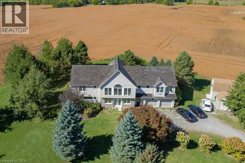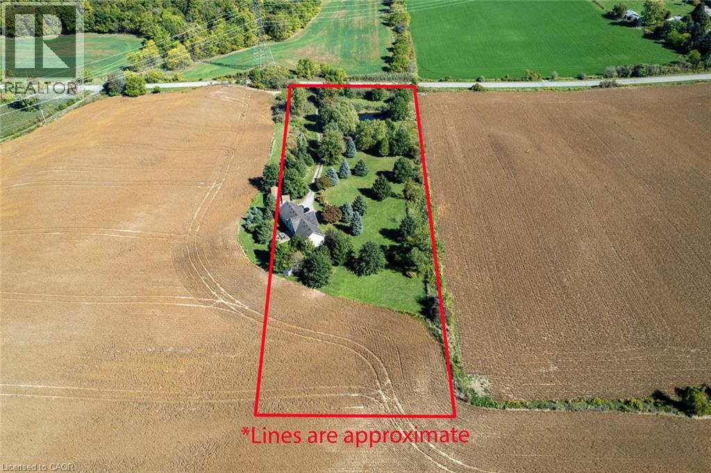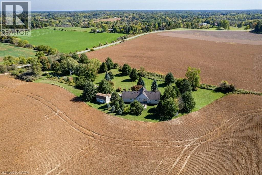 Welcome to 407 Harrisburg Road in the charming village of Troy! This beautiful country property offers the perfect blend of peaceful rural living with modern comforts. Nestled on almost 3.5 acres, the home boasts a classic design with inviting curb appeal, mature landscaping, and plenty of outdoor space for entertaining or relaxing. With a pond, shop with 220amp, and inground sprinkler system this property has everything you need! Step inside to find a bright, open layout featuring a welcoming living room with large windows, an open kitchen space and a dining area ideal for family gatherings. The home offers a finished lower level with flexible space for a rec room, home office, or in-law suite. Enjoy the serenity of your private backyard, complete with mature trees, lush greenery, and room for gardens, play areas, or future projects. A long driveway and detached shop provide plenty of parking and storage. Located just minutes to Brantford, Paris, and Cambridge, you’ll love the balance of small-town charm with quick access to amenities, schools, and commuter routes. (id:64974)