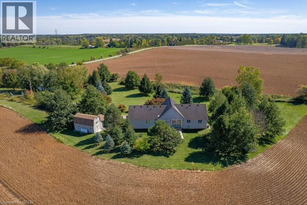 Welcome to 407 Harrisburg Road in the charming village of Troy! This beautiful country property offers the perfect blend of peaceful rural living with modern comforts. Nestled on almost 3.5 acres, the home boasts a classic design with inviting curb appeal, mature landscaping, and plenty of outdoor space for entertaining or relaxing. With a pond, shop with 220amp, and inground sprinkler system this property has everything you need! Step inside to find a bright, open layout featuring a welcoming living room with large windows, an open kitchen space and a dining area ideal for family gatherings. The home offers a finished lower level with flexible space for a rec room, home office, or in-law suite. Enjoy the serenity of your private backyard, complete with mature trees, lush greenery, and room for gardens, play areas, or future projects. A long driveway and detached shop provide plenty of parking and storage. Located just minutes to Brantford, Paris, and Cambridge, youll love the balance of small-town charm with quick access to amenities, schools, and commuter routes. (id:64974)