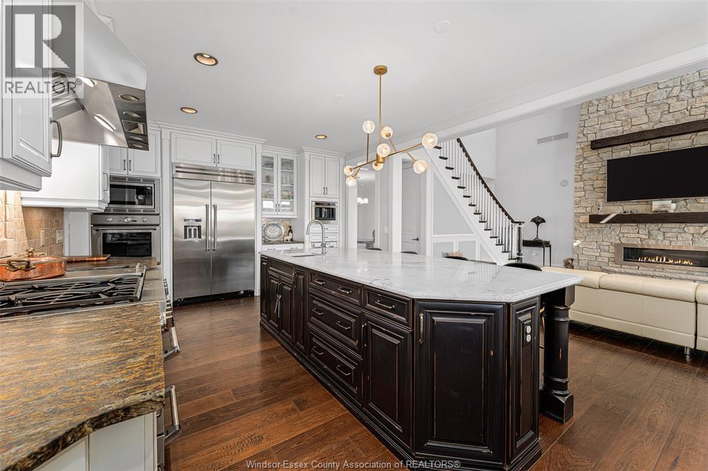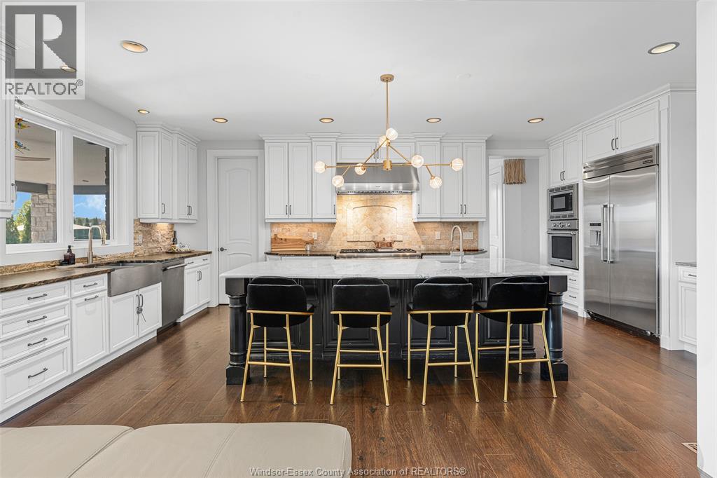 Discover your dream home at 4076 St. Francis, ideally situated backing onto the renowned 7 Lakes Golf Course in a prestigious neighborhood surrounded by luxury estates. This exquisite 1¾ storey residence exudes curb appeal with high-end finishes throughout. Featuring an attached 2½ car garage, the spacious interior offers 4 bedrooms and 2½ baths, including a luxurious main floor Primary Suite with a 5-piece ensuite, walk-in closet, and private covered patio — perfect for relaxation. The professional chef’s kitchen is a culinary masterpiece, equipped with a 48"" 6-burner + griddle (dual) fuel Thermador gas range with double oven (electric and steam) and side refrigerator and freezer, built-in wall oven and microwave, built-in gourmet coffee maker, dishwasher, and beverage center. An oversized island and walk-in pantry provide ample space for entertaining and family gatherings. The bright living room showcases soaring ceilings and a stunning stone fireplace, seamlessly opening to an expansive dining area filled with natural light and views of the yard and golf course. Step outside to the custom outdoor kitchen featuring a beverage center, built-in Lynx gas barbecue & pizza oven, and entertainment area — ideal for summer gatherings. Additional features include a versatile office/den and convenient main floor laundry. The lower level offers an excellent opportunity to create additional living space tailored to your needs. The beautifully landscaped, fenced yard with two covered patios and a fire pit offers a tranquil setting to enjoy warm summer evenings and serene surroundings. This home is a true gem — a must-see and a pleasure to show. Schedule your private tour today and experience luxury living at its finest! (id:64974)