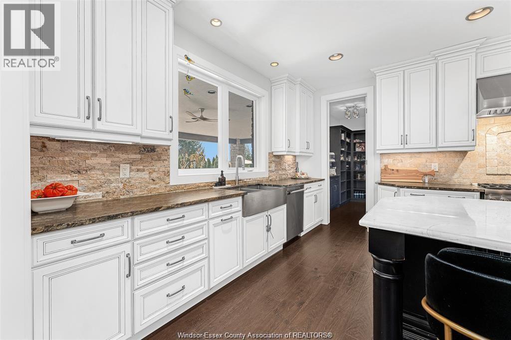 Discover your dream home at 4076 St. Francis, ideally situated backing onto the renowned 7 Lakes Golf Course in a prestigious neighborhood surrounded by luxury estates. This exquisite 1¾ storey residence exudes curb appeal with high-end finishes throughout. Featuring an attached 2½ car garage, the spacious interior offers 4 bedrooms and 2½ baths, including a luxurious main floor Primary Suite with a 5-piece ensuite, walk-in closet, and private covered patio — perfect for relaxation. The professional chef’s kitchen is a culinary masterpiece, equipped with a 48"" 6-burner + griddle (dual) fuel Thermador gas range with double oven (electric and steam) and side refrigerator and freezer, built-in wall oven and microwave, built-in gourmet coffee maker, dishwasher, and beverage center. An oversized island and walk-in pantry provide ample space for entertaining and family gatherings. The bright living room showcases soaring ceilings and a stunning stone fireplace, seamlessly opening to an expansive dining area filled with natural light and views of the yard and golf course. Step outside to the custom outdoor kitchen featuring a beverage center, built-in Lynx gas barbecue & pizza oven, and entertainment area — ideal for summer gatherings. Additional features include a versatile office/den and convenient main floor laundry. The lower level offers an excellent opportunity to create additional living space tailored to your needs. The beautifully landscaped, fenced yard with two covered patios and a fire pit offers a tranquil setting to enjoy warm summer evenings and serene surroundings. This home is a true gem — a must-see and a pleasure to show. Schedule your private tour today and experience luxury living at its finest! (id:64974)