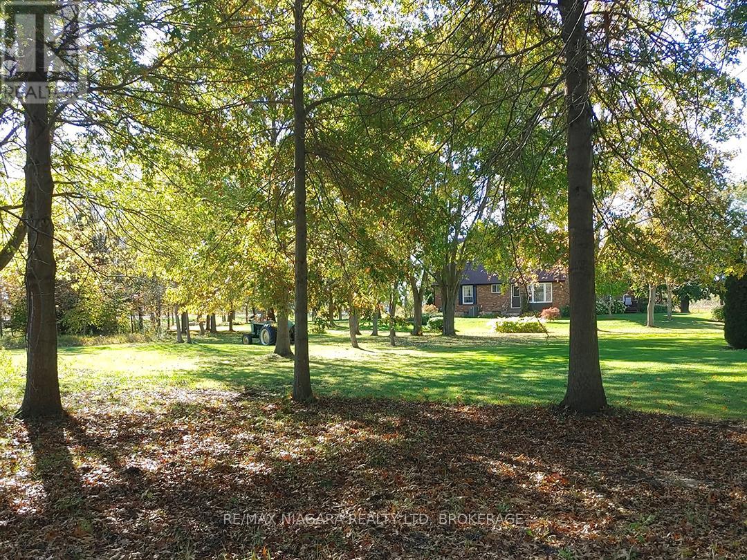 Set back from the road on a curved, tree-lined driveway, this custom built, one-owner brick home offers privacy, space, and a true country setting on 11.9 beautifully treed and landscaped acres. Offering 2,200 sq. ft., this 4 bedroom, 2 bath home is surrounded mature trees, lawn, manicured perennial gardens and a large pond. An interlock walkway leads to the covered front porch and the main entrance to this well maintained home. A large foyer welcomes you to the main floor living room and family room. The family room is anchored by a full brick, floor-to-ceiling fireplace with a wood-burning stove insert and wide hearth, creating a warm and inviting focal point. The kitchen features wood cabinetry, classic subway tile backsplash, ample counter and storage space, and a large bay window with views across the property, along with room for a breakfast table. A main floor laundry room provides convenient access to the backyard deck. A generous bedroom with double closet and a four-piece bathroom completes the main floor. A grand staircase leads to the second level and 3 additional bedrooms, including one with a walk-in closet and ensuite privilege with the full bathroom featuring a skylight over the tub. Dormer windows add character and natural light throughout. The full basement is bright and offers excellent potential for future finishing. Many recent updates including flooring, siding, fascia & soffits. Out back, the 50' x 50' workshop is a standout feature, complete with hydro and water supply-ideal for hobbyists, trades, or serious storage needs. The rural setting is balanced by a central location, making commuting to both south and north Niagara, as well as Haldimand & Hamilton, straightforward and convenient. A rare combination of land, privacy, and a well-cared-for home, all in one exceptional package. (id:64974)