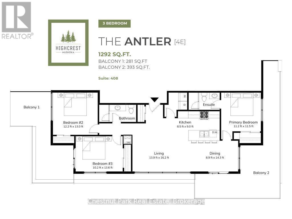 Discover The Ridge at Highcrest by Edgewood Homes - a community where modern design meets the simplicity of hassle-free living. Among its standout offerings is Suite 408, The Antler, a rare and sunlit gem with windows spanning East, South, and West, ensuring natural light fills your space throughout the day. This 3-bedroom, 2 bathroom suite features a spacious 1,292 SQFT of interior living space paired with 674 SQFT of outdoor bliss across two balconies. Start your mornings with coffee on the East-facing balcony and unwind in the evenings with breathtaking sunsets from the West-facing one. Thoughtful design shines through with an open concept kitchen, living, and dining area, an in-suite laundry room, and a primary bedroom complete with an ensuite. Highcrest residents also gain access to exclusive amenities, including a state-of-the-art fitness centre, indoor and outdoor kitchens, an expansive terrace, and a stylish residents' lounge. Residents will also enjoy the amenities, including a fitness centre, indoor and outdoor kitchen and dining areas, an outdoor terrace, and a residents' lounge. For a limited time, Edgewood Homes is offering early bird incentives to all buyers, which include a full suite of stainless steel appliances, washer and dryer, storage locker, one parking space, $0 assignment fees, and included development charges. The Ridge at Highcrest offers the ultimate blend of luxury, convenience, and the serenity of Muskoka living. Photos are artist's concepts. (id:64974)