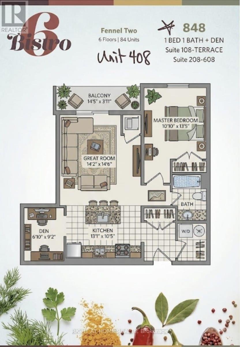 Welcome to Bistro 6 Condos! This inviting 1 bedroom plus den 1 washroom condo totalling 848 sq ft is waiting for you! Featuring a spacious functional layout will truly not disappoint! Chefs dream kitchen with stainless steel appliances, a cozy great room perfect for relaxing after a hard days work with access to a balcony to enjoy the breathtaking sunsets! Bistro 6 condos have an abundance of amenities that will not disappoint such as a gym, community kitchen, outdoor kitchen with pizza ovens/smokers and cooking classes. Located near the waterfront, minutes away from Barrie Go and highway access. Nearby shopping plazas, restaurants, banks, grocery stores. (id:64974)