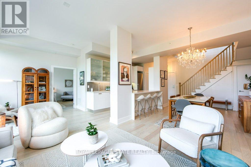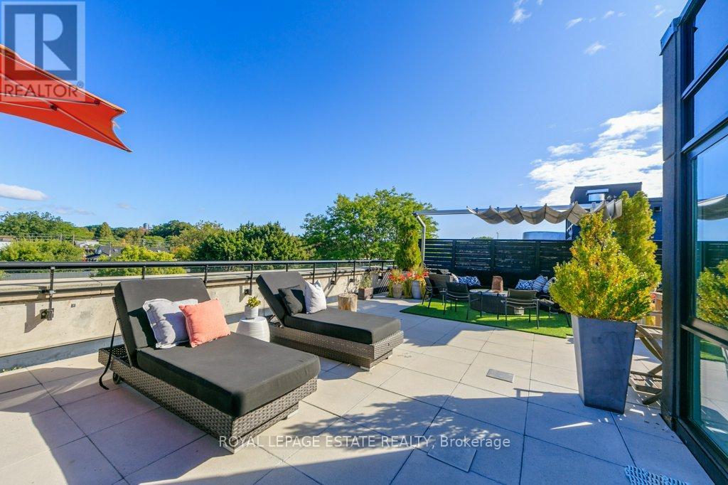 Stunning penthouse in The Kew located on a quiet street south of Queen just steps to the beach, boardwalk and Woodbine Beach. A rare opportunity to purchase one of the few oversized units in this boutique building. Bright and spacious with 10 foot ceilings and floor to ceiling windows. Multi level with approx. 1600 sq ft of living space with a 1357 sq ft rooftop terrace. Perfectly curated and designed. A fantastic blend of form and function. This 2 plus 2 bedroom fantastic condo with 3 full baths could easily serve as a 3 bed. Walk up the stairs to the sun room that is large enough for a queen size pull out for guests. Through the sliding doors on the second floor you will find an amazing outdoor space. A private, serene oasis and entertainers dream space. Parking for two cars underground and storage locker are conveniently located directly off the elevator. Incredible Visitor parking is the buildings best kept secret! Located steps away from transit, it is an easy commute to downtown, You will live your best life in this much sought after Boutique building. Walk to the beach, restaurants, shopping, yoga, tennis or the pool. Or just enjoy the sunset from the privacy of your own terrace. This stunning property is a must see. (id:64974)
