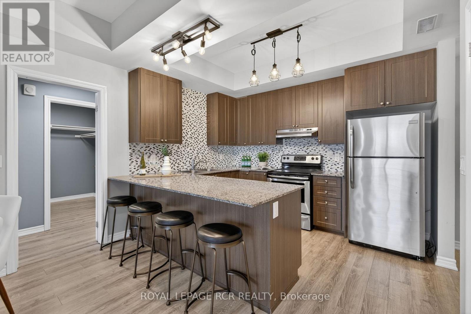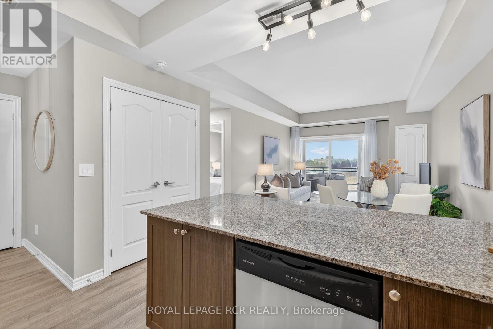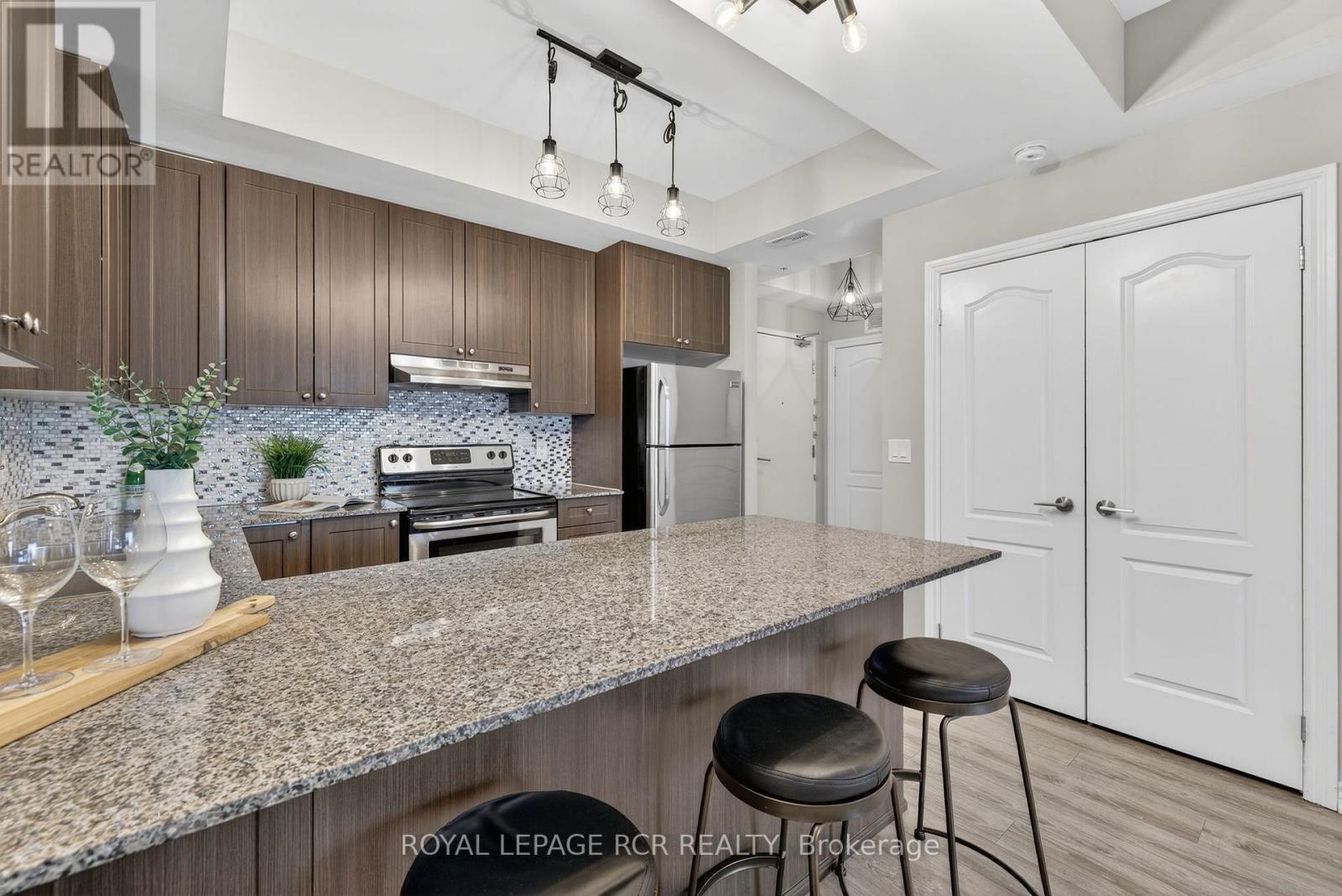 Welcome to Harbourside Square in Whitby Shores-where lakeside living meets everyday convenience. This bright, top-floor 2-bedroom, 2-bath condo offers a thoughtfully designed split-bedroom layout, ideal for privacy and functionality. The updated open-concept kitchen features granite countertops, stainless steel appliances, and a breakfast bar, flowing seamlessly into the living and dining areas with sleek laminate flooring throughout. Step outside to an oversized private balcony large enough for dining and lounging-perfect for morning coffee or evening entertaining. The spacious primary suite includes a walk-in closet and 3-piece ensuite, while the second bedroom enjoys easy access to a full 4-piece bath. Additional highlights include in-suite laundry with full-size machines, underground parking near the elevator, and a private locker conveniently located near the parking spot. Enjoy exclusive access to the Pavilion Clubhouse with event spaces, full kitchens, rooftop patio with lake views, and outdoor BBQ areas. Steps to waterfront trails, the Yacht Club, transit, shopping, Whitby GO, and easy access to Hwy 401-this is Whitby Shores living at its best. (id:64974)