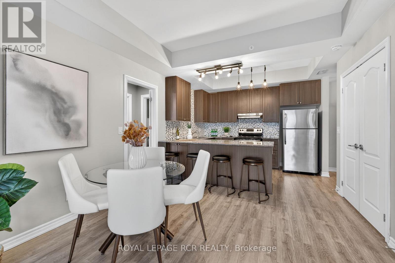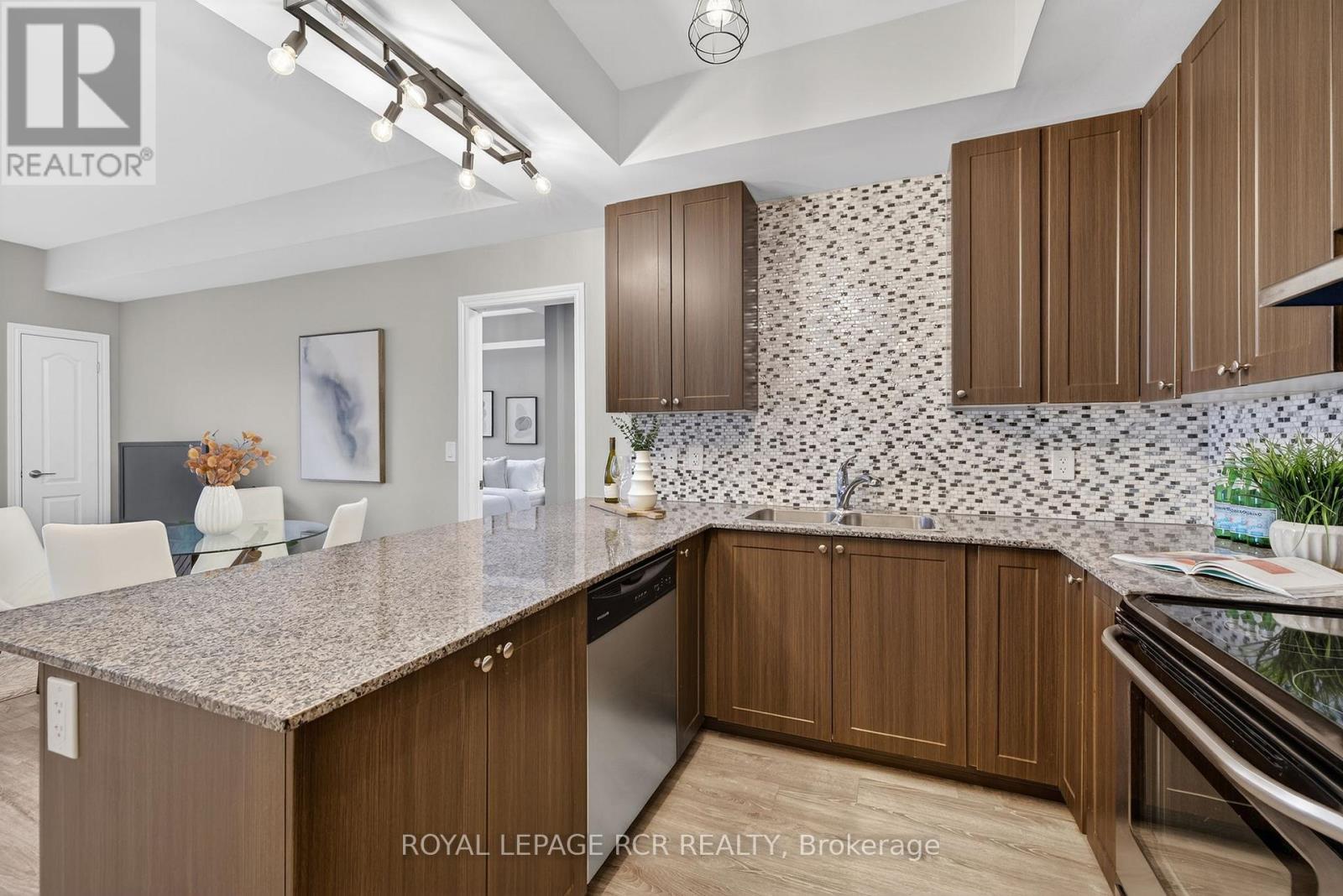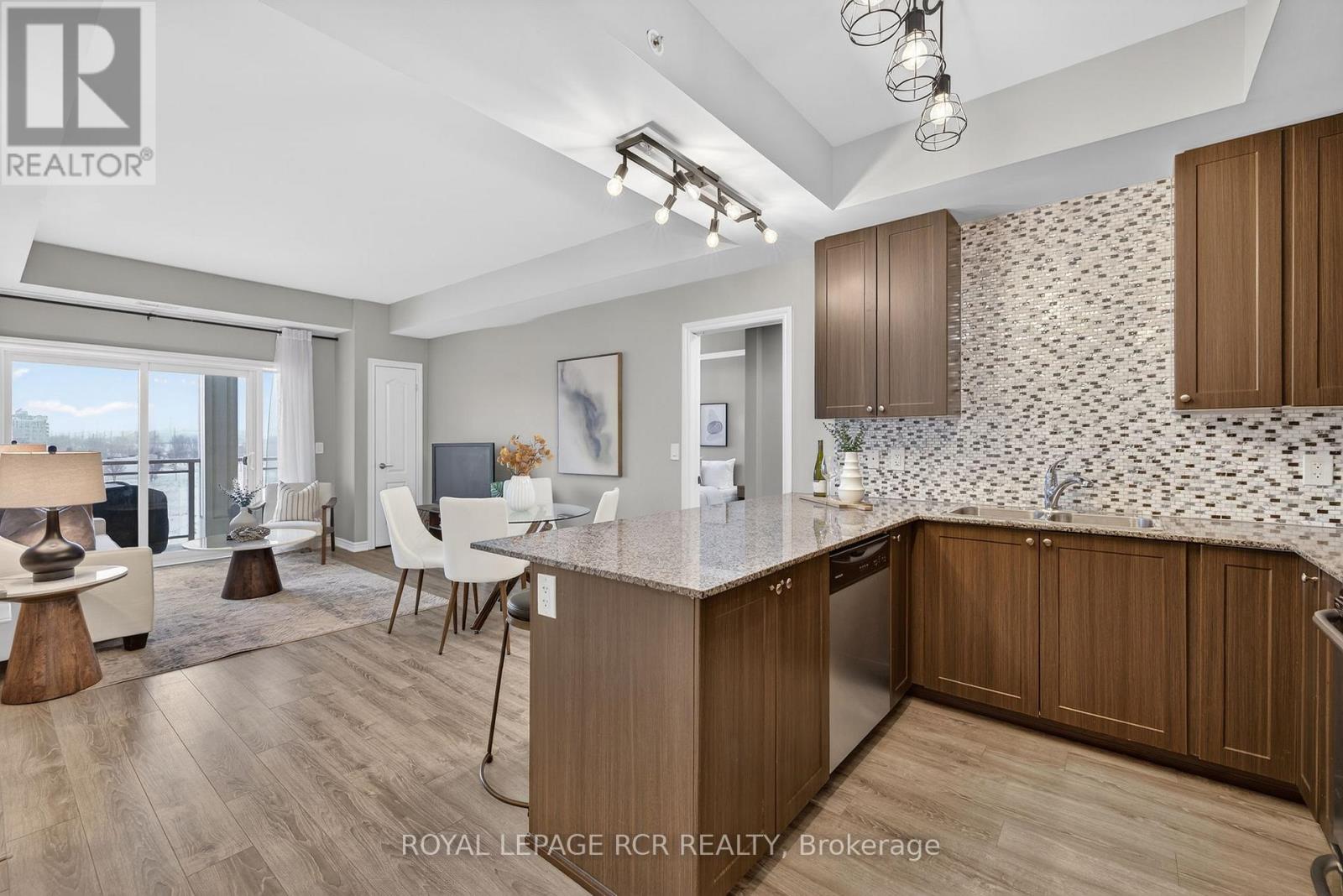 Welcome to Harbourside Square in Whitby Shores-where lakeside living meets everyday convenience. This bright, top-floor 2-bedroom, 2-bath condo offers a thoughtfully designed split-bedroom layout, ideal for privacy and functionality. The updated open-concept kitchen features granite countertops, stainless steel appliances, and a breakfast bar, flowing seamlessly into the living and dining areas with sleek laminate flooring throughout. Step outside to an oversized private balcony large enough for dining and lounging-perfect for morning coffee or evening entertaining. The spacious primary suite includes a walk-in closet and 3-piece ensuite, while the second bedroom enjoys easy access to a full 4-piece bath. Additional highlights include in-suite laundry with full-size machines, underground parking near the elevator, and a private locker conveniently located near the parking spot. Enjoy exclusive access to the Pavilion Clubhouse with event spaces, full kitchens, rooftop patio with lake views, and outdoor BBQ areas. Steps to waterfront trails, the Yacht Club, transit, shopping, Whitby GO, and easy access to Hwy 401-this is Whitby Shores living at its best. (id:64974)