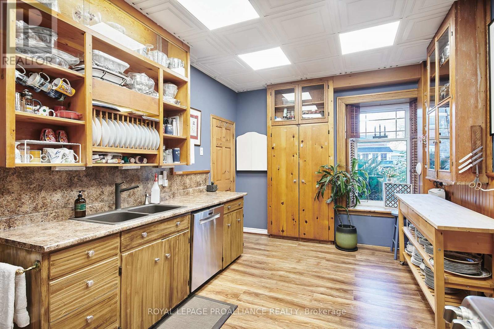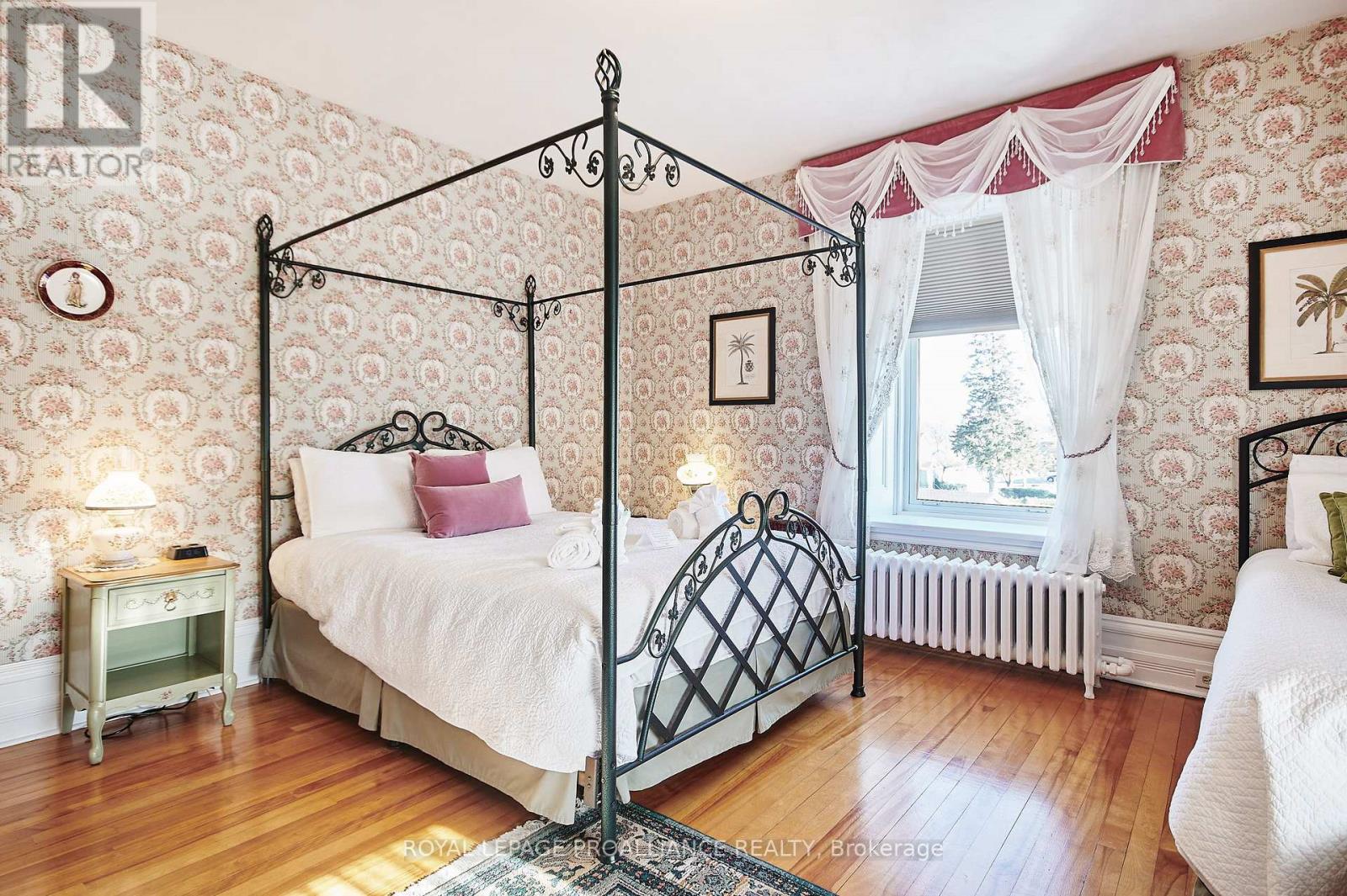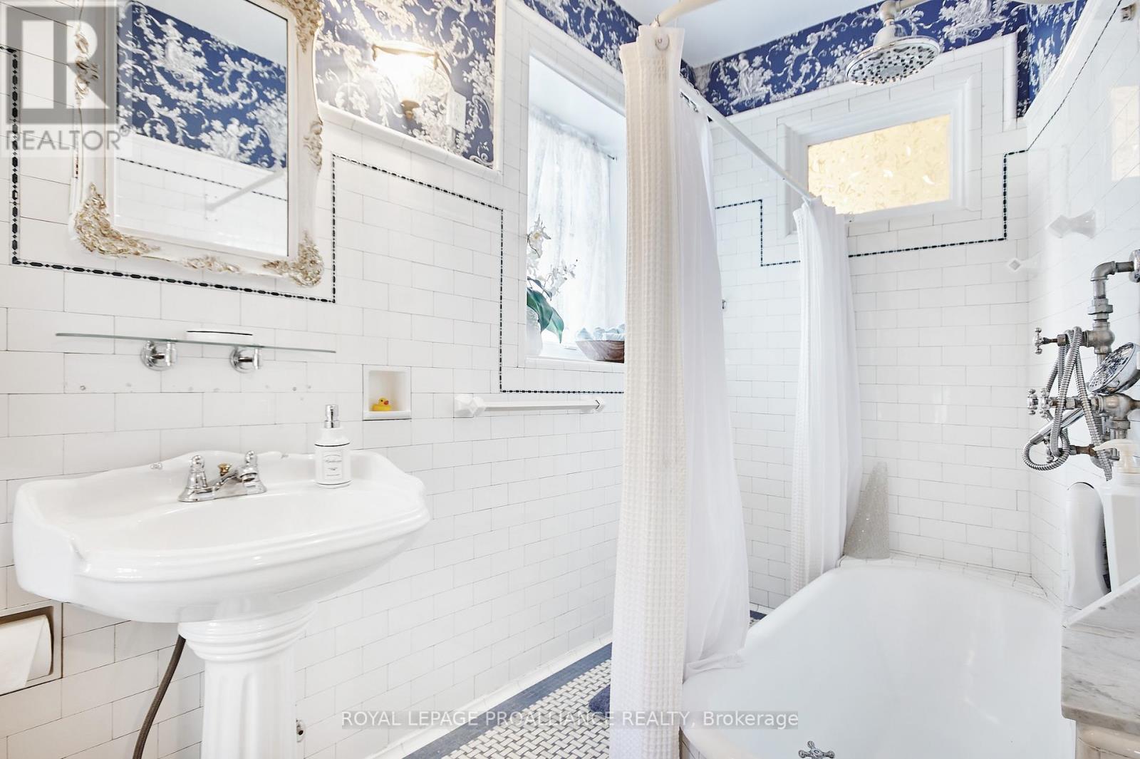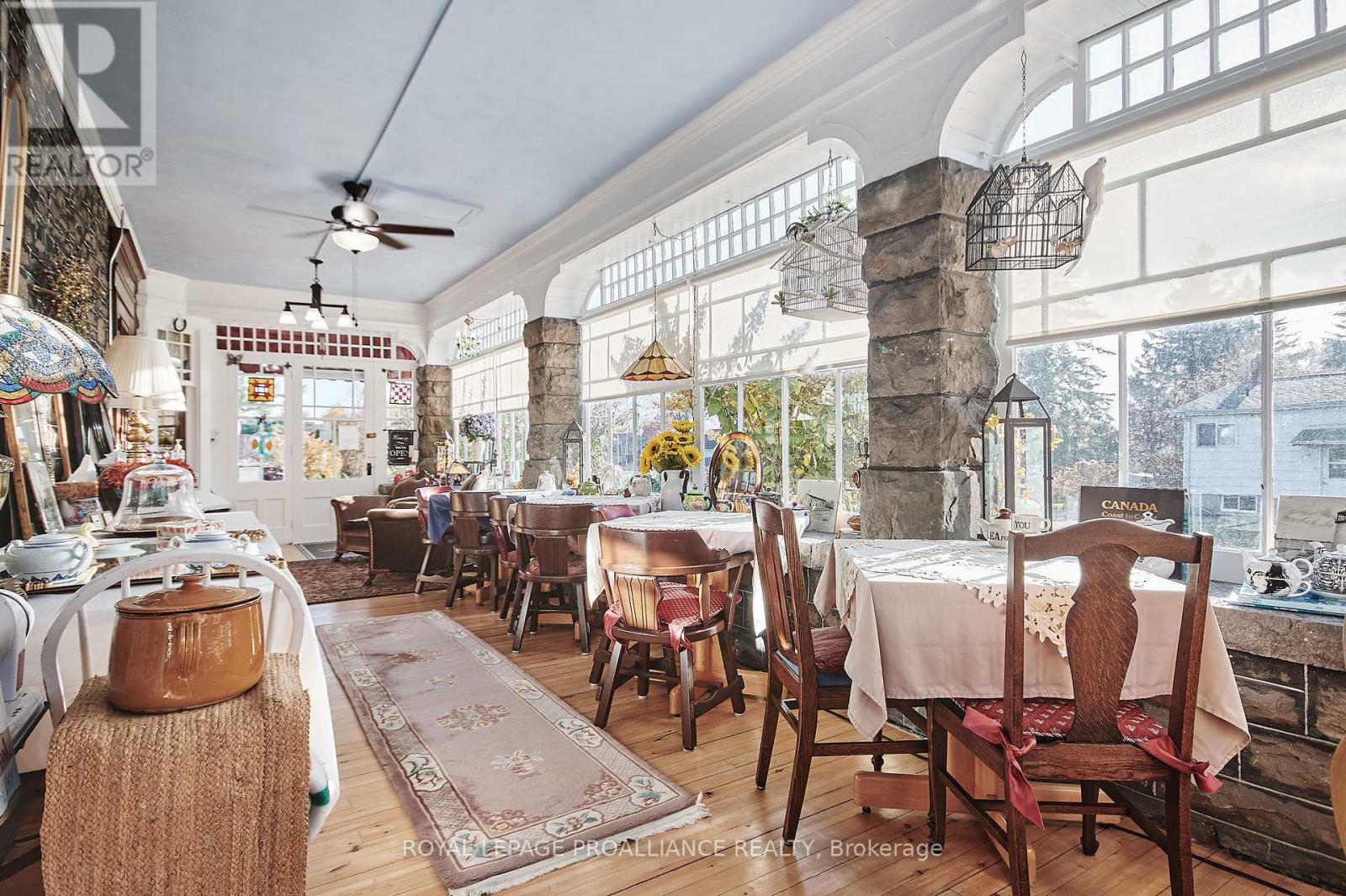 A cherished piece of history has arrived to market. This spectacular 3 storey (circa 1830, as per MPAC) straight coursed stone home was originally built by members of Colonel McDonell's family (Colonel of Fort Wellington). This home is proudly positioned on a 1/2 acre of property within the Fort Town. An extensive addition by Denis Higgins in 1909 transformed this home to a level of opulence with the addition of a spectacular dining room and butler's pantry, a large kitchen, porches (later to be all enclosed) and the carriage house. Further upgrades have been completed over the years. The moment you enter home you instantly feel connected to the Loyalist roots. Solid oak panelled walls, woodwork, banisters & finishings have been meticulously crafted. The dining room has a hand-painted silk ceiling, while the living room has bevelled glass pocket doors, a parlour coal stove(now gas) with the original marble hearth and vintage tin ceiling on the second floor. Boasting 11 beds, 9 baths, 5 fireplaces, a detached "carriage house", lovely stone patio, inground pool, and enclosed wrap around verandah (tea room). There isn't another home quite like this in the area. Currently operating as the Colonel's Inn Inc., this turn-key opportunity with an established business is yours to carry on or occupy as a family home, or perhaps a multi-generational home. In previous years, the enclosed front porch operated as an Antique Store ... a home based business. There is a full basement which offers the laundry area, storage for the Inn supplies ( which includes linens), a mechanical room, workshop, storage, office and a 4 pc. washroom. Located two blocks from the Majestic St. Lawrence River, the Sandra Lawn Harbour, Amphitheatre , and downtown core. Centrally located to Highways 401, 416 and the USA International Bridge. (id:64974)
