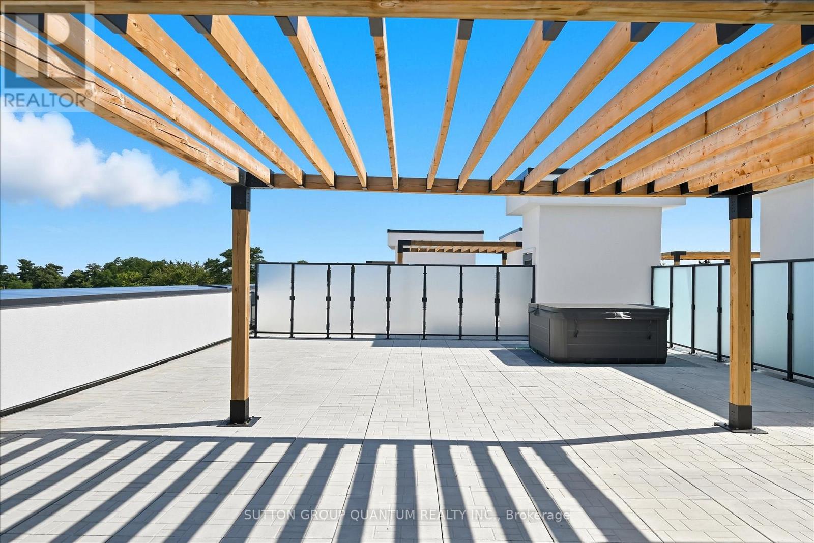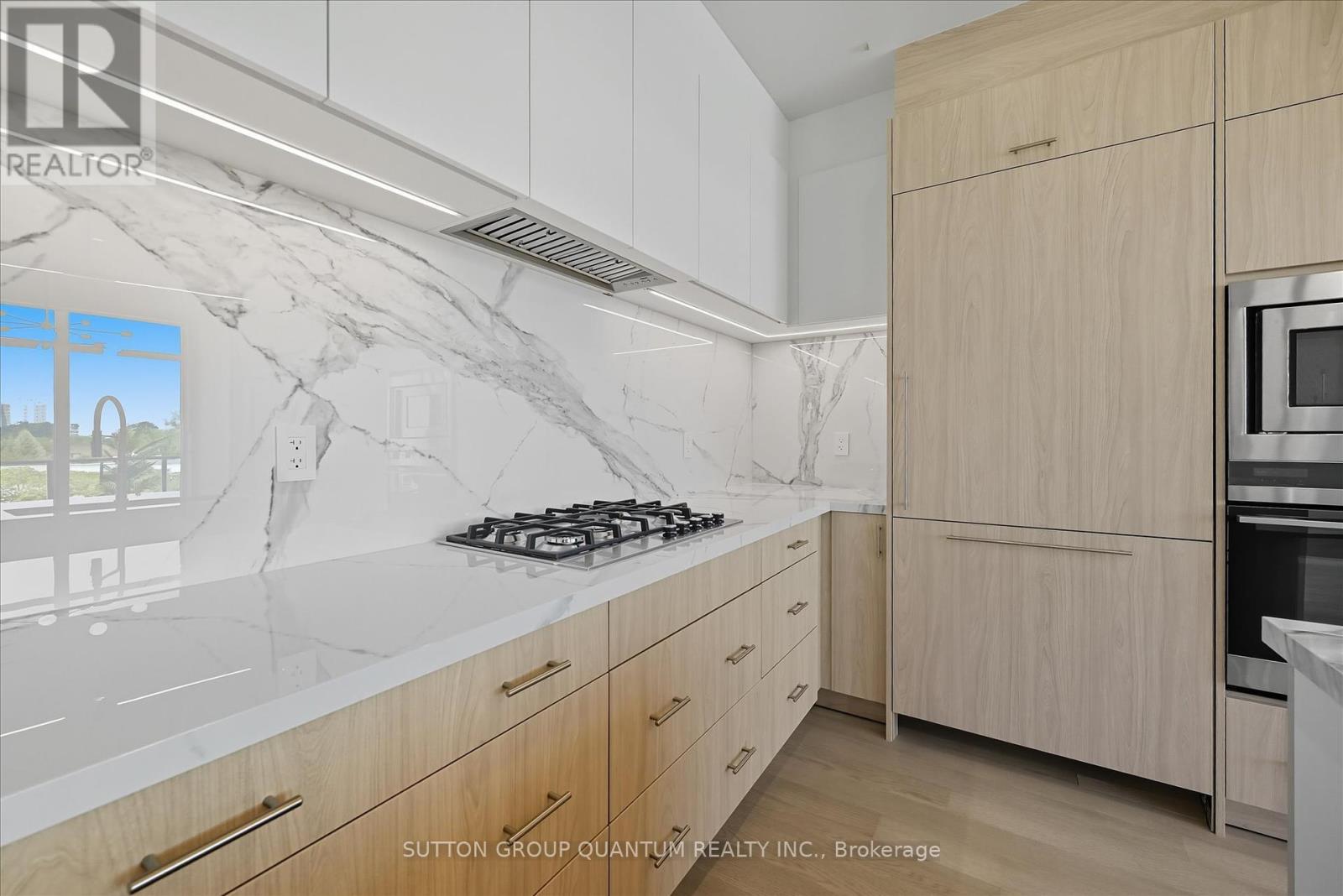 Finally! A huge penthouse with a private-terrace in Oakvilles Newest Luxury Building, The Berkshire. Which brings me to the Top 7 Reasons to Lease PH09: 1. The 1413 sqft private terrace is literally the largest terrace of any suite for sale in Oakville! Comes with a hot tub and built-in pergola, but the possibilities are endless; Personal putting green, outdoor pizza oven, outdoor theatre, swim spa let your imagination run wild. Plus 200 sqft balcony! 2. Location! With only a 7 min walk in you have the convenience of downtown Oakville without the noise/busyness, the perfect balance, and still steps to the lake (walk down Brookfield rd). Also right at your doorstep is the Fortinos, and plaza at Lakeshore and Brock. Unbeatable! 3. The perfect size: at 1509 sqft you get 2 bed, a den, a powder room, and 2 full bathrooms, more than enough space without going too large and racking up the condo fees. 4. Peace of mind - modern construction means never worrying about an enormous special assessment like you get with the older buildings, but instead state-of-the-art amenities including a gym, party room and concierge. 5. Brand-new, never lived in! There is no substitute for being the first resident, never wonder what someone else did with your home. 6. The essential two underground parking spots and locker are so important for resale value and practicality. 7. Luxury finishes and features throughout: wide plank hardwood flooring, soaring 10 ft coffered ceilings, tasteful porcelain countertops and backsplash, Fisher & Paykel appliances including hidden/panelled fridge and double-drawer dishwasher, and stainless steel oven, microwave and stove top. Extended height kitchen cabinets, pot lights, modern LED light fixtures, and smart home system. Two full bathrooms both include glass shower enclosures, modern tile designs, heated floors, quartz top vanities and LED lighting. Full features list attached. Book your showing today and secure your own slice of terrace-heaven! (id:64974)