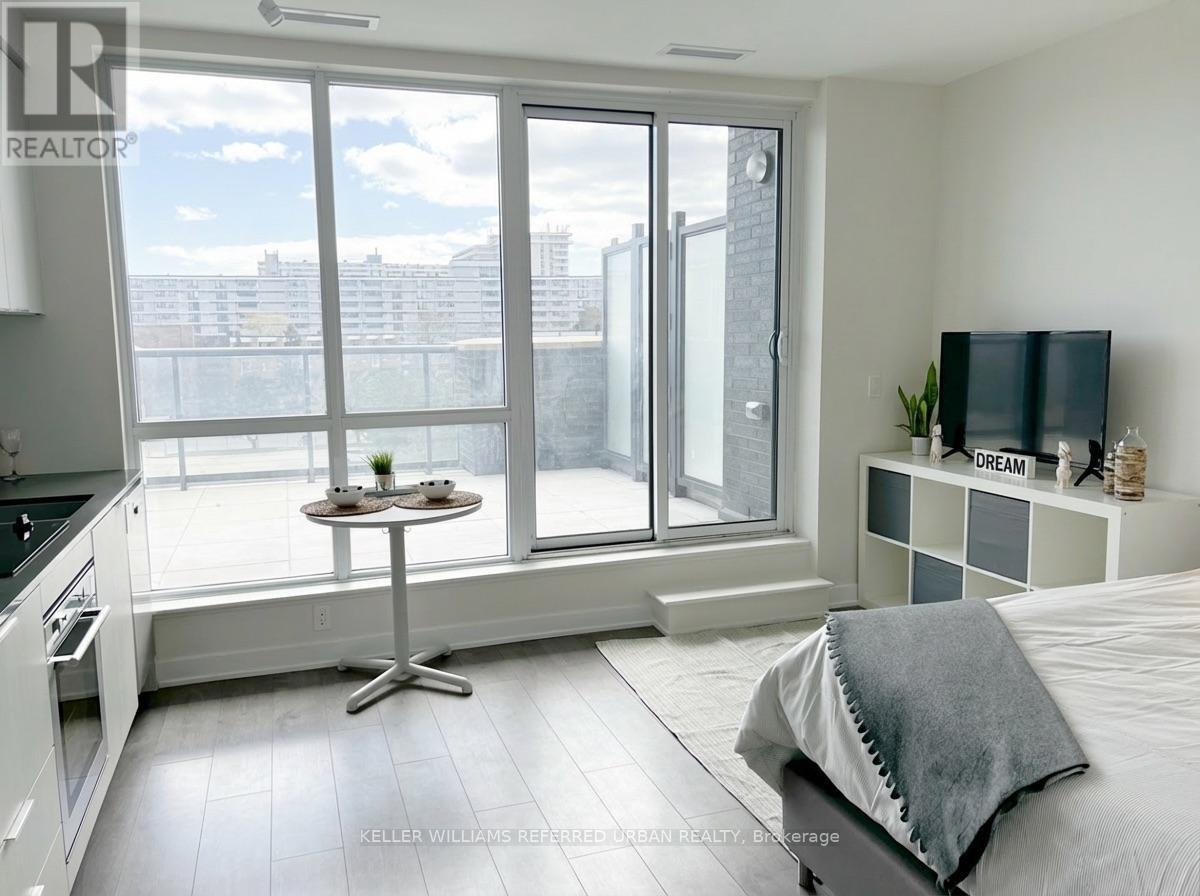 Opportunity awaits with this stylish, move in ready studio offering a five star lifestyle. Fully furnished and set in a convenient and desirable Toronto neighbourhood, this bright open concept suite features floor to ceiling windows and a modern kitchen with stainless steel appliances. The living area walks out to a private terrace, perfect for relaxing or entertaining. Located close to the Eglinton Crosstown, Aga Khan Museum, shops, restaurants, and everyday amenities. This unit is furnished and includes an owned locker, south exposure, and June 1 possession. The building is 4 years old and offers amenities such as a gym, concierge, party room, visitor parking, recreation room, security system, and games room. Rent includes common elements, building insurance, and water. (id:64974)