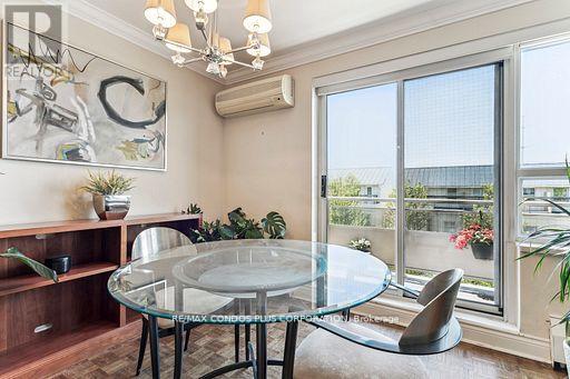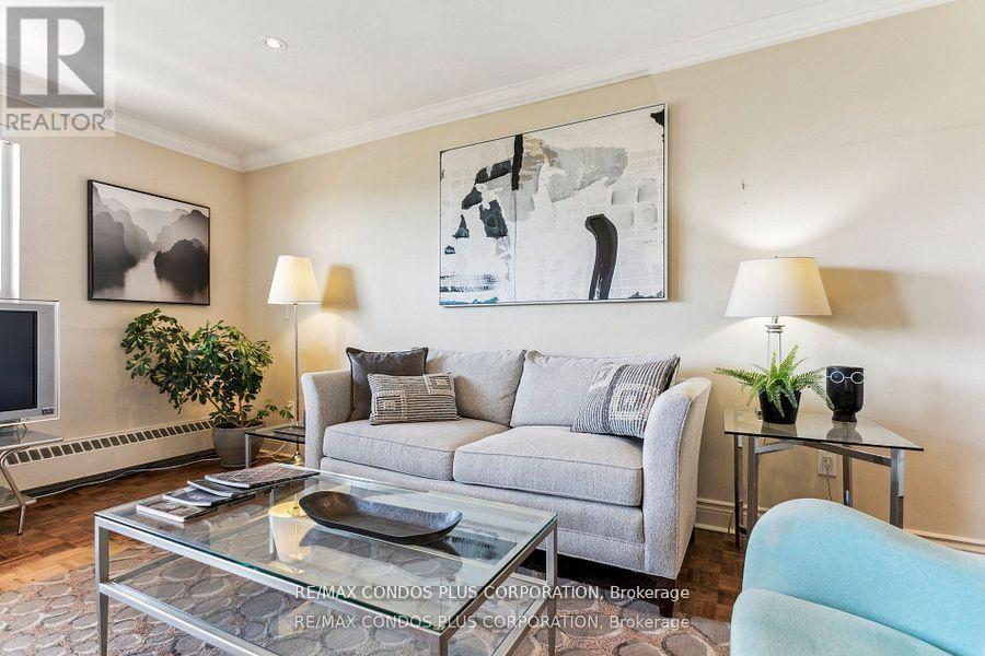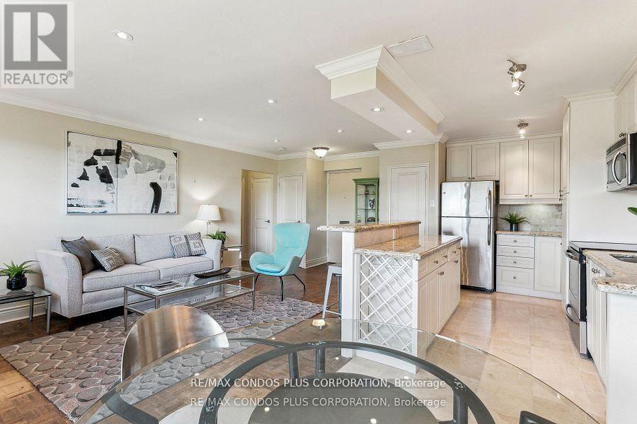 Value-Space-Location! Top Floor, 735 Sq. Ft. 1 Bdrm. SAVE W/$628.69 All inclusive monthly maint. & Taxes ,Not a Co-op -TD Financing Possible. Dining Room W/Sliding door W/O to Private 138 Sq Ft Balcony-only 3 one BR units have this size Balcony. Superb bright S/W Panoramic View on Quiet North York residential Street W/Multi million dollar Townhomes. This full Reno Total Custom Upgraded unit W/continuing updates to present HAS Large thermal windows-smooth ceilings-crown moldings-7in. baseboards. 2 Panel doors-Recessed lighting & tracks-Updated Electrical W/Extra Decora wall outlets & Dimmer Switches- High end finishes. 13 Ft Granite Counters. Kit w/4 SS Appliances-12 drawers-abundant storage upper Cabinets - spacious Base cabinets -Chrome Lazy Susan-Slat wood Wine rack. Large Breakfast bar, Travertine stone Backsplash & Flooring. Ready for Gourmet cooking & Sumptuous entertaining--before strolling to the private 31.8 ft Balcony Painted , Furnished & Updated W/Protective netting April 2025 to enjoy a beautiful evening view. Short walk to LRT. Bermondsey & Victoria Park stops, Minutes to all amenities in multiple Plazas & Bus to Downtown. East parking lot entrance has wheelchair accessibility, easy access to lockers, furniture moving and in and out & deliveries. Note low ALL inclusive means Heat ,Hydro, Water, A/C, Parking, Locker & Property Taxes. Do not miss out on this markets amazing opportunity. NOT A CO OP, NO SHARES.NO BOARD APPROVAL Call re TD Financing. (id:64974)
