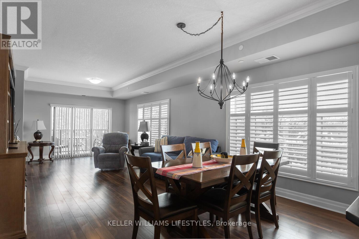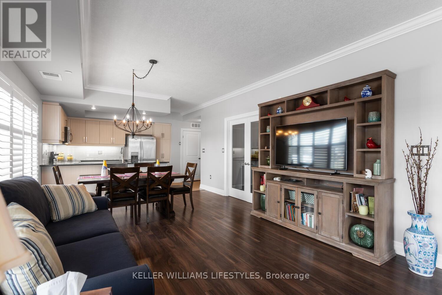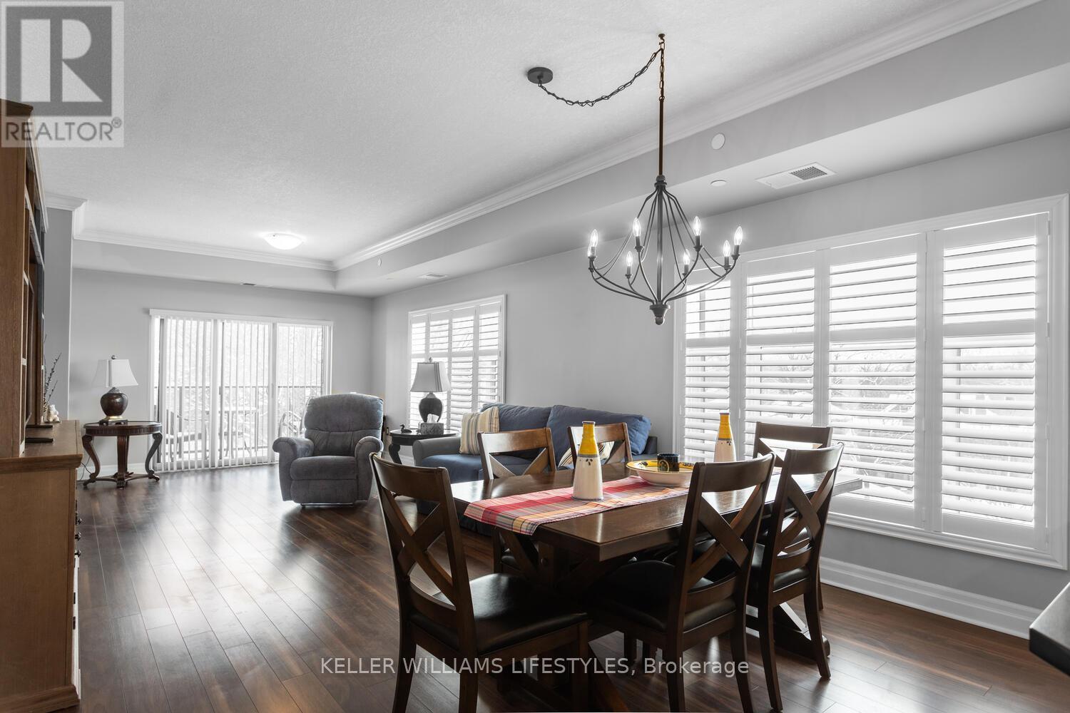 Desirable, well-maintained building ideally located less than 2 km to Victoria Hospital and Parkwood Institute, 3.6 km to St. Joseph's Hospital, and 4.1 km to Western University and within walking distance to Downtown, Thames Park, Canada Life Place, Covent Garden Market, and Thames Valley Parkway walking and bike paths. A bus stop is directly in front of the building, makes commuting easy for health care professionals, downsizing seniors or young professionals. This 2-bedroom plus den, 2-bathroom corner unit offers 1,425 sq. ft. of functional living space with a bright, open-concept layout and large windows throughout. The kitchen includes plenty of cabinetry with pull-out drawers, stainless steel appliances, and a large island with breakfast bar. The dining and living areas feature California shutters and access to a private balcony with a glass railing. The primary bedroom offers a walk-in closet and a 4-piece ensuite with tiled shower, glass enclosure, and dual sinks. The second bedroom is ideal for guests, while the den provides an excellent home office, study area, or optional third bedroom. Additional highlights include a spacious foyer with ample closet space, in-suite laundry, controlled building entry, fitness room, and an assigned parking space. (id:64974)