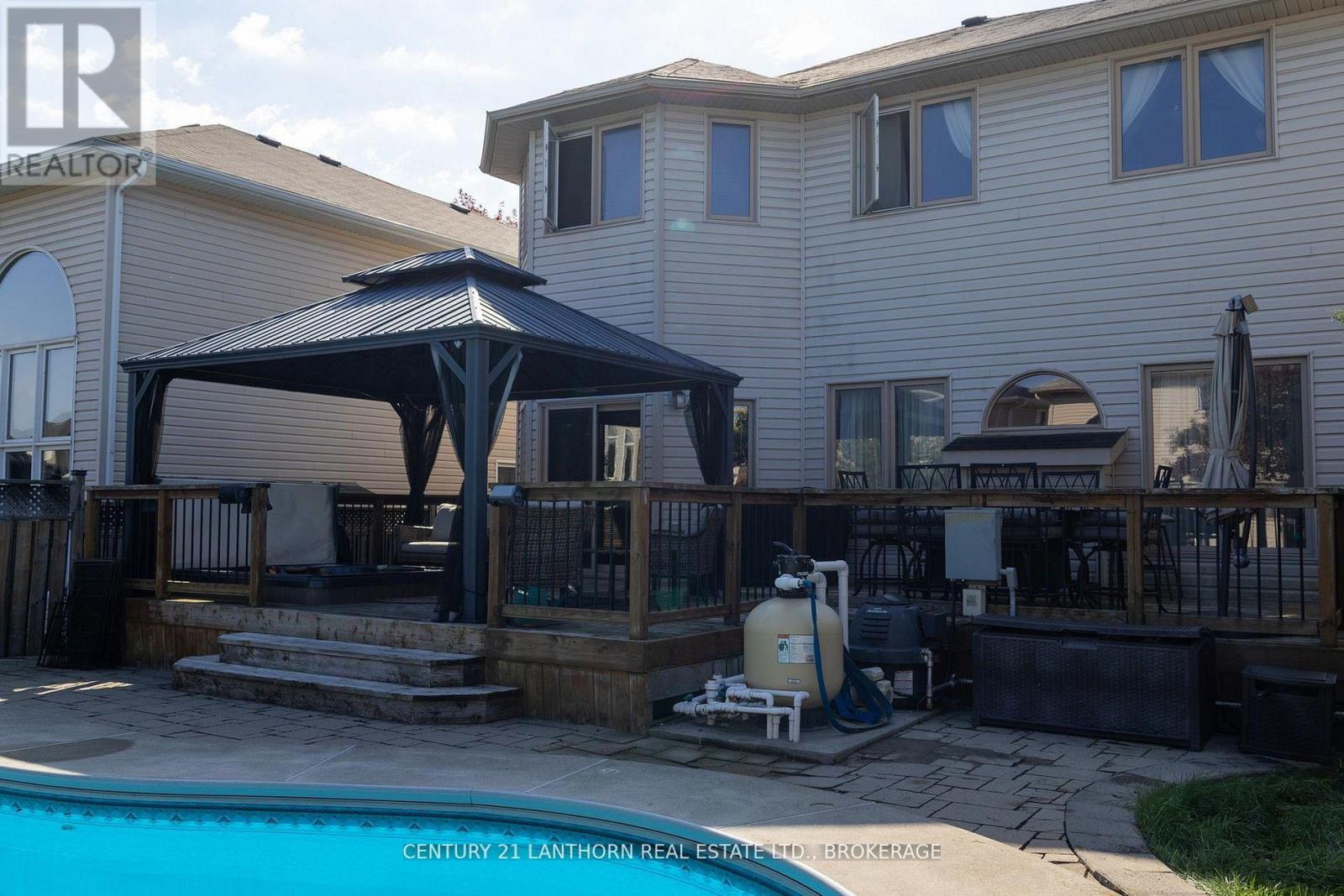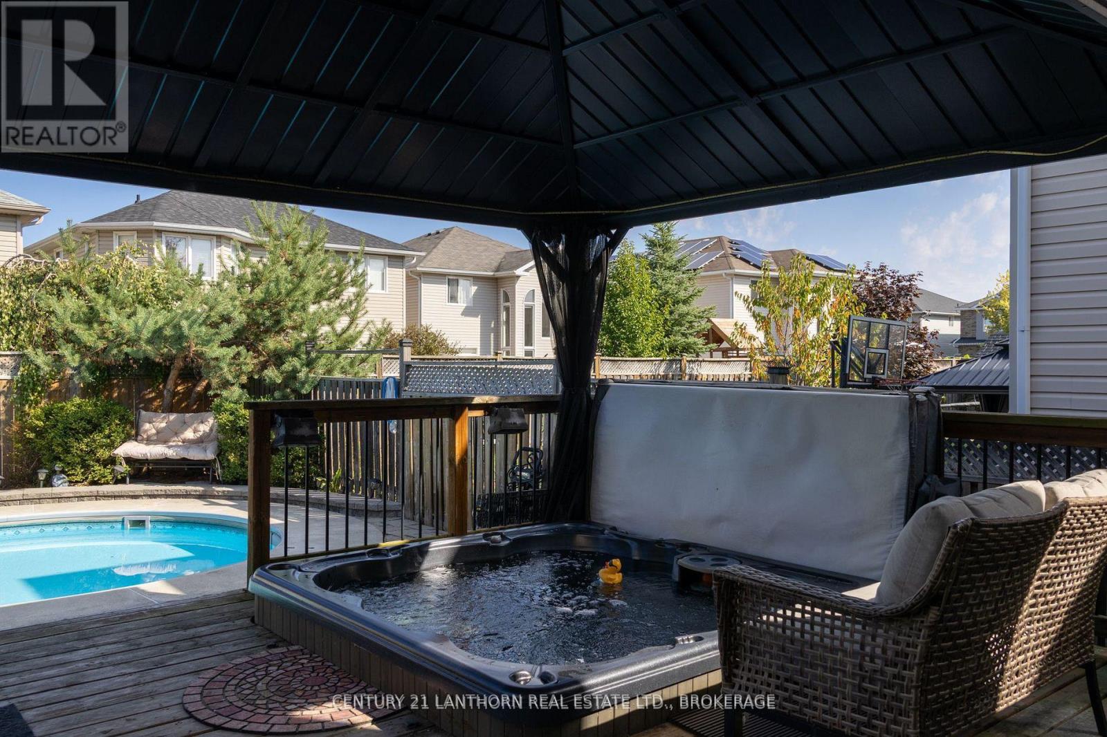 We are proud to present 409 Cavendish Crescent. This 2350sqft beautifully maintained and updated two storey gem is nestled in one of Kingston's highly sought after Northwest City neighbourhoods (King's Landing). The front curb appeal stuns, and continues throughout to the luxury backyard where you'll relax with family & friends in your gorgeous heated inground pool and covered hot tub. The grand two storey entrance welcomes you into the foyer with a curved staircase. Enjoy the open concept chef's kitchen with granite countertops & stainless steel appliances. The main floor features formal dining, a powder room, a main floor laundry & living spaces. The upstairs welcomes with a gorgeous sun soaked office/playroom, master bedroom with ensuite & two generous bedrooms with one full bath. The fully finished basement has a fourth bathroom rough-in and is ready for your customization. This quiet family friendly neighbourhood has parks & amenities galore and is ready for you to call home. (id:64974)