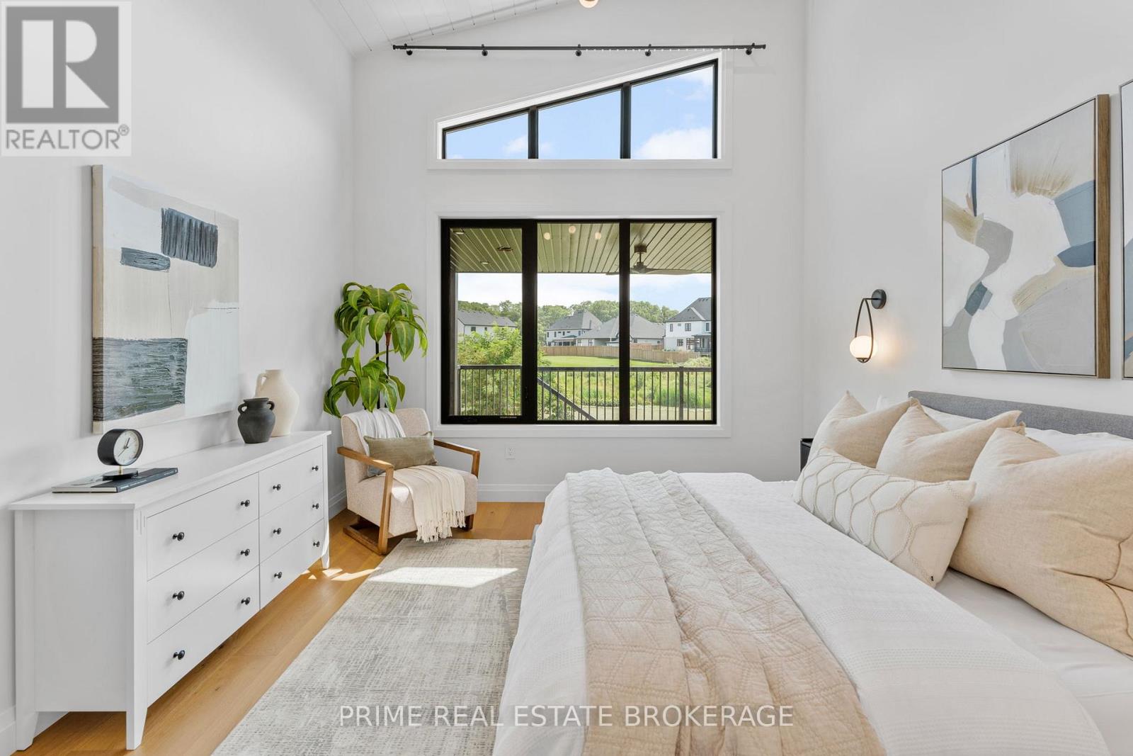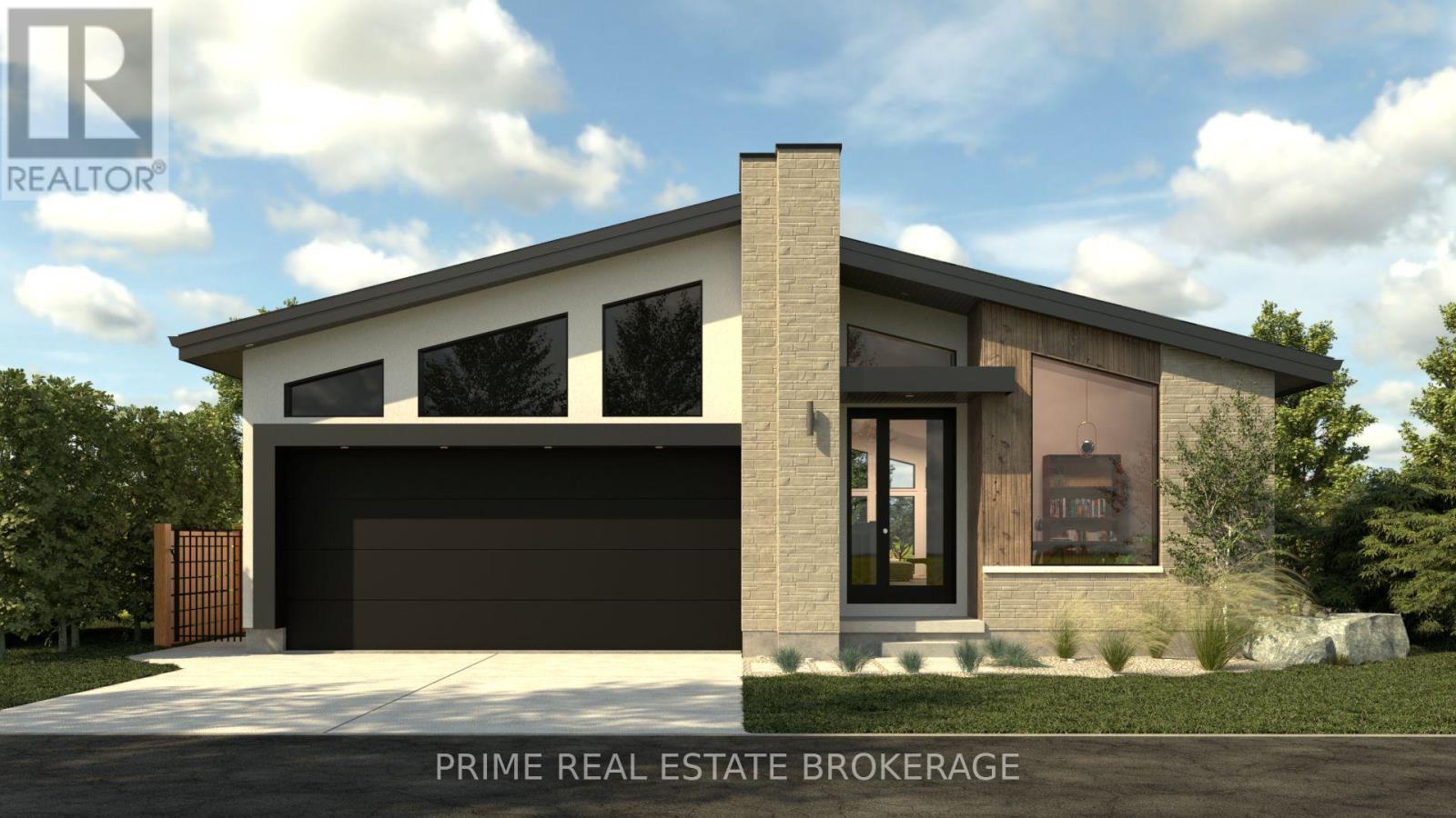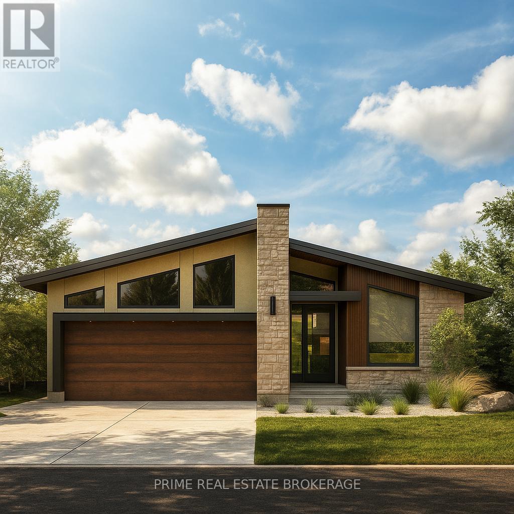 Experience the prestige of the LHBA Home of the Year. The Myra by Halcyon Homes is a masterclass in modern execution and a benchmark for luxury living in Lambeth's coveted Heathwoods community.Situated on a premium 55-foot lot (52.91'x127.38') backing onto a tranquil water feature, this exceptional bungalow offers 2,069sq ft of refined main-floor living with an additional 1,600sq ft of fully finished walkout lower level, creating an expansive lifestyle environment ideal for everyday living & entertaining.A striking mid-century inspired façade blends antique wood fluted siding with a custom mix of Arriscraft Shadow Stone and Urban Ledgestone, creating a bold architectural presence.Inside, wide-plank 7.5-inch white oak flooring, soaring ceilings, & expansive black-framed windows define the open-concept main level.The great room is anchored by a dramatic microcement fireplace with vertically stacked Arabescato ribbed marble.The designer kitchen features HanStone Matterhorn quartz counters with full-height backsplash, custom rift oak cabinetry, and a dedicated coffee bar. A private office sits behind pivot-hinged reeded glass doors, while the primary suite offers a spa-inspired ensuite with polished jade tile & wall-mounted Vogt fixtures.The fully finished walkout lower level adds approx 1,600sq ft of additional living space with 2 bedrooms, including one with a private ensuite. A dedicated gym can easily be converted into a fifth bedroom, providing flexible space for guests or extended family.The level is completed by a large recreation area with a 72-inch fireplace & smoked-glass bar designed for entertaining.Additional features include two fireplaces, central air,forced-air heating, an attached two-car garage plus double private driveway(4 total parking spaces)& dual covered decks overlooking the water feature and surrounding green space.This award-winning residence offers a rare opportunity to own a design-forward home in one of Lambeth's most desirable communities. (id:64974)