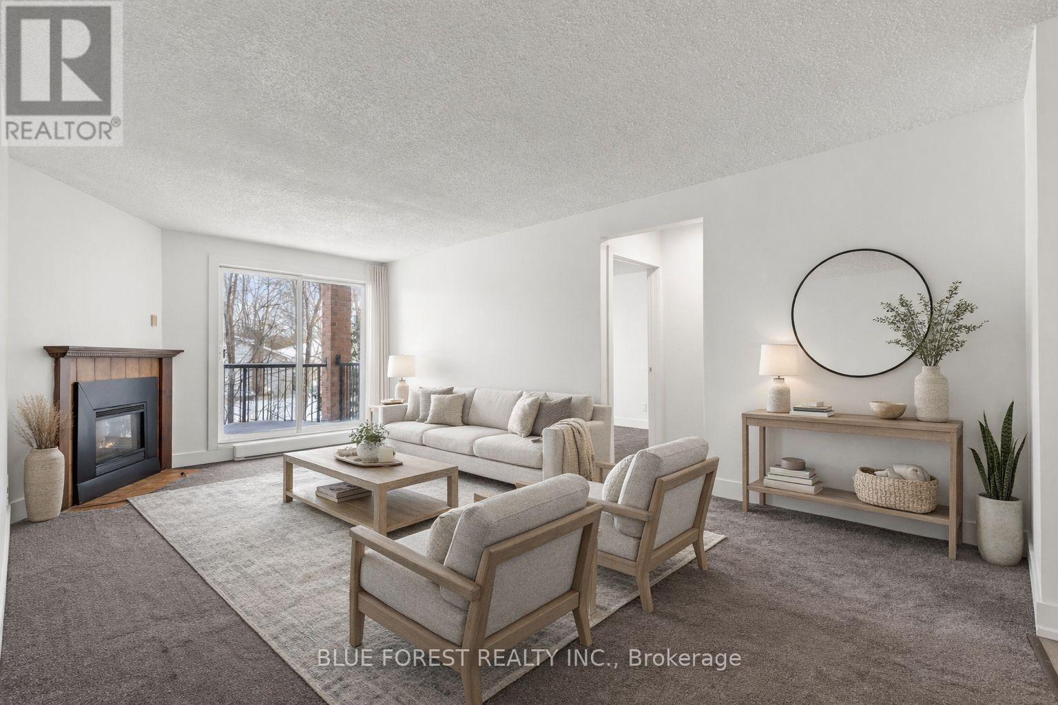 Water Included! Better than new. Welcome to Unit 41, a fully renovated end unit that stands in a class of its own. Unlike interior units, this premium residence offers enhanced privacy, quieter living, and exceptional natural light throughout. Completely renovated in 2026, the home features brand new luxury flooring, a modern kitchen with quartz countertops, and beautifully updated bathrooms with a spa inspired feel. Every detail has been thoughtfully finished, creating a true turnkey opportunity that feels fresh and untouched. The layout offers a dedicated dining area, a spacious living room with a gas fireplace, and a rare feature in condo living: a separate laundry room with its own window, providing natural light and functional space beyond the typical hallway closet setup. Enjoy morning coffee on your private balcony or take advantage of the community outdoor pool. Ideally located just steps from White Oaks Mall, restaurants, parks, and with quick access to Highway 401, this home offers an exceptional blend of style, comfort, and convenience. Move in and enjoy a pristine, top tier renovation in one of the area's most accessible locations. (id:64974)
