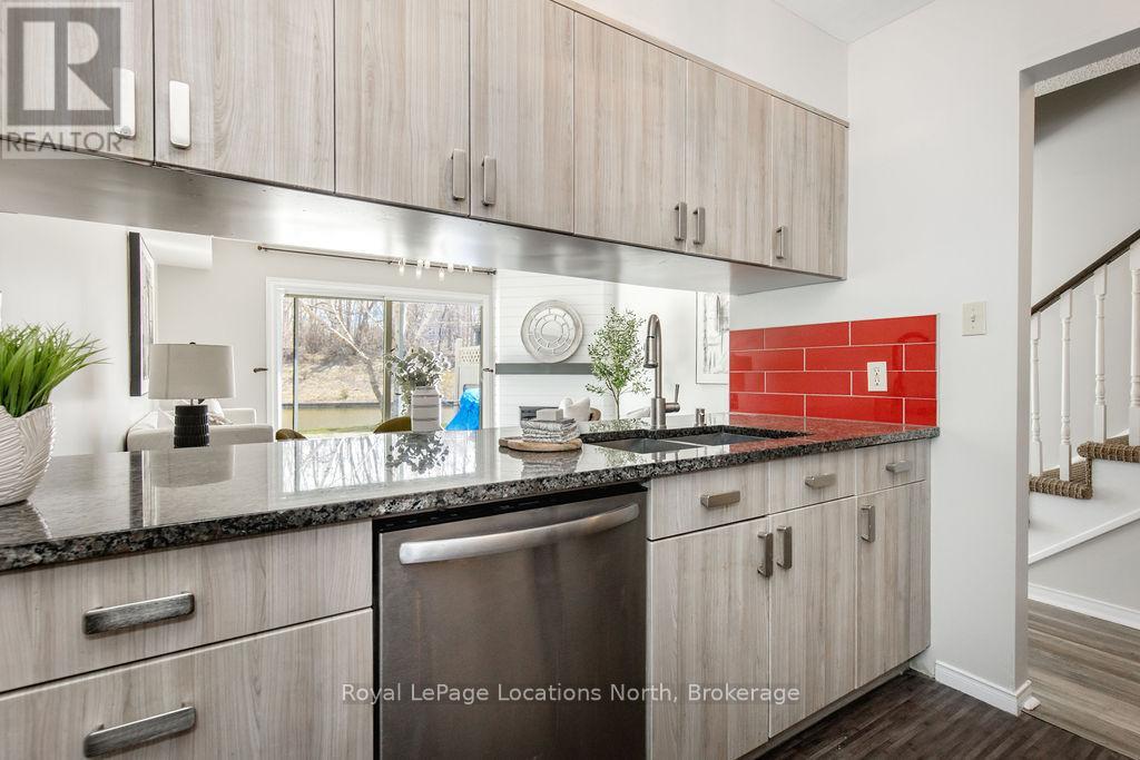 Waterfront Townhome Living at Its Finest! Don't miss your chance to own this beautifully updated 3-bedroom, 2-bathroom waterfront townhome in one of the areas most sought-after complexes - complete with an outdoor swimming pool! Step inside to find newer flooring, a stylish shiplapped fireplace, fresh paint throughout, and an open-concept kitchen featuring stainless steel appliances, granite countertops, and modern finishes. The bright main living area walks out to a large deck overlooking the water - perfect for entertaining or soaking up peaceful views. Enjoy your morning coffee or evening wine while watching the boats go by, with your own private boat dock just steps away.The flexible layout offers a rare main floor primary bedroom (or ideal home office), plus an upper-level primary bedroom with serene river views and a 4-piece semi-ensuite. A third spacious bedroom also has amazing wardrobe storage, and a convenient second-floor laundry room completes the upper level.This is true four-season living- swimming, boating, fishing, ice fishing, hiking, and trail riding are all at your fingertips. Local resort amenities and green space right out your back door make it easy to relax and enjoy the lifestyle.Set sail from your canal-side dock and take the scenic route to Lake Simcoe, visiting friends and exploring the beauty of the waterways along the way.Whether you're looking for a weekend getaway or a year-round home, this waterfront gem checks all the boxes. Partial VTB available. (id:64974)