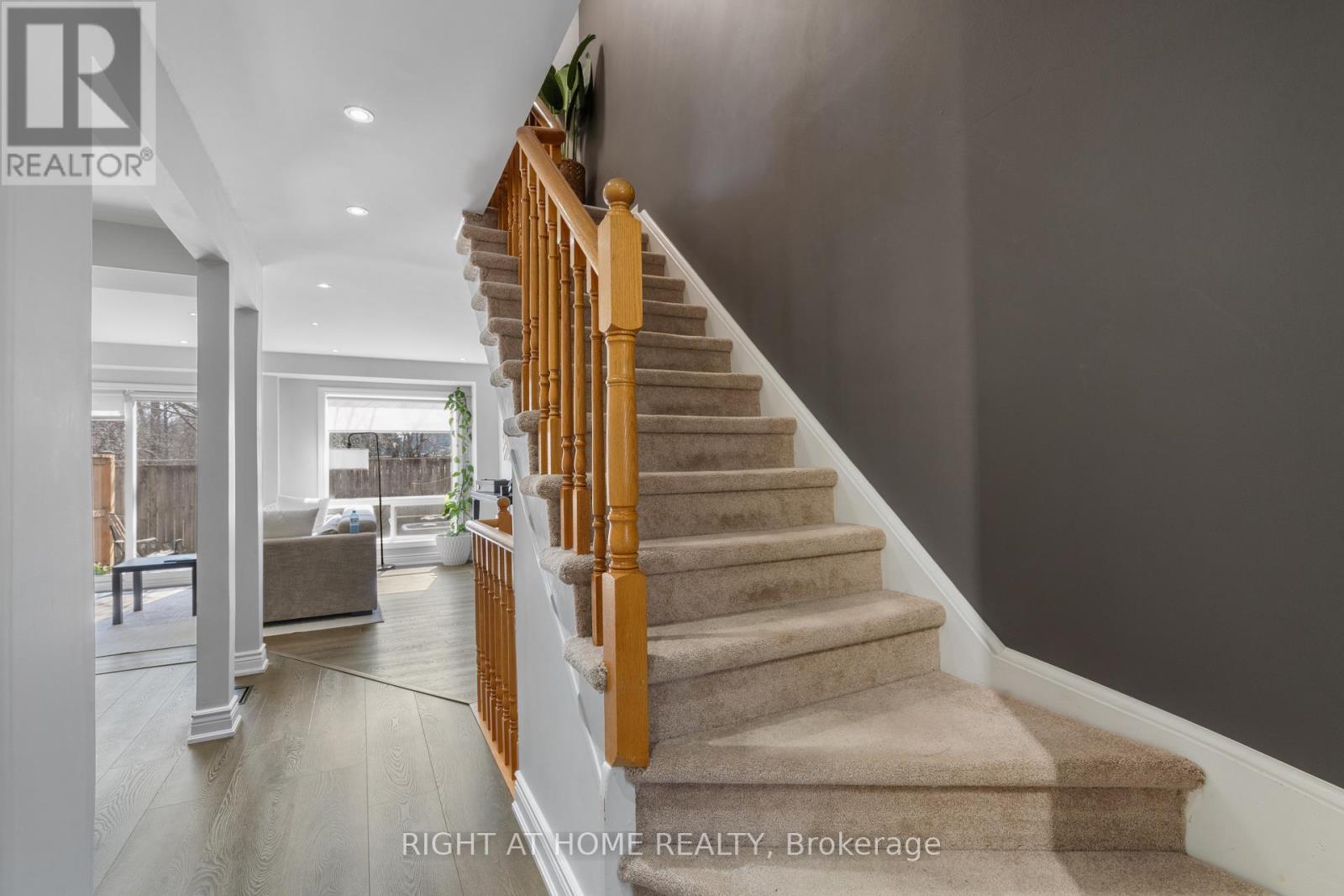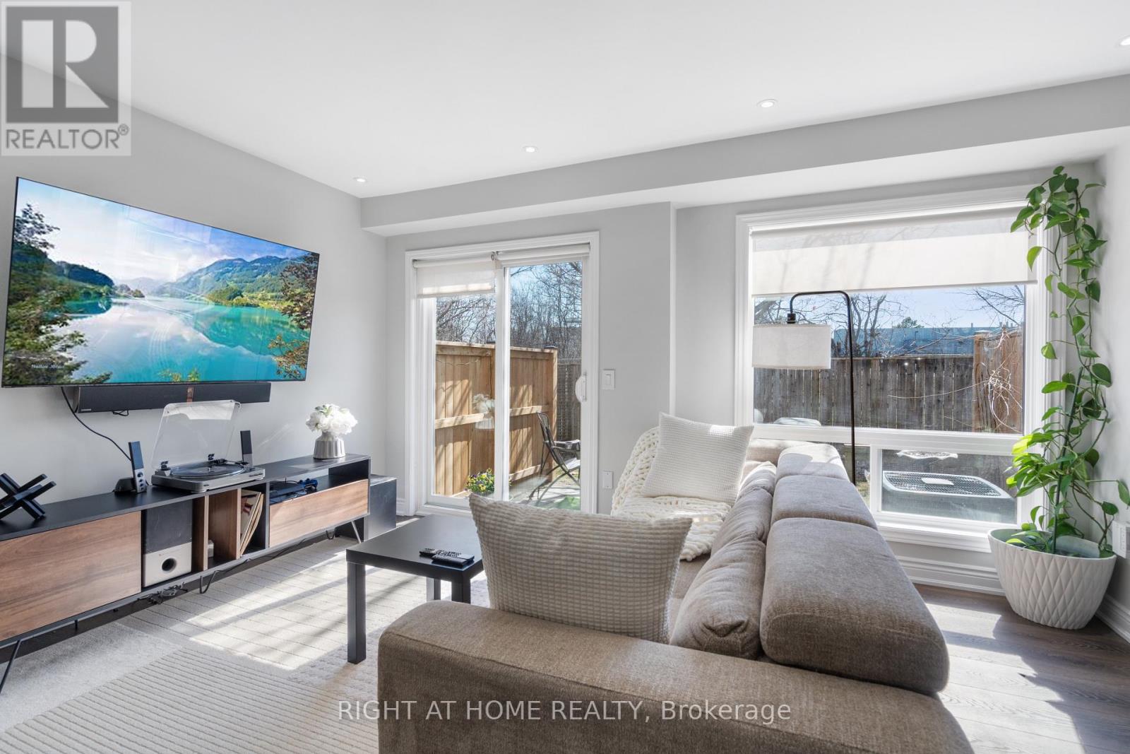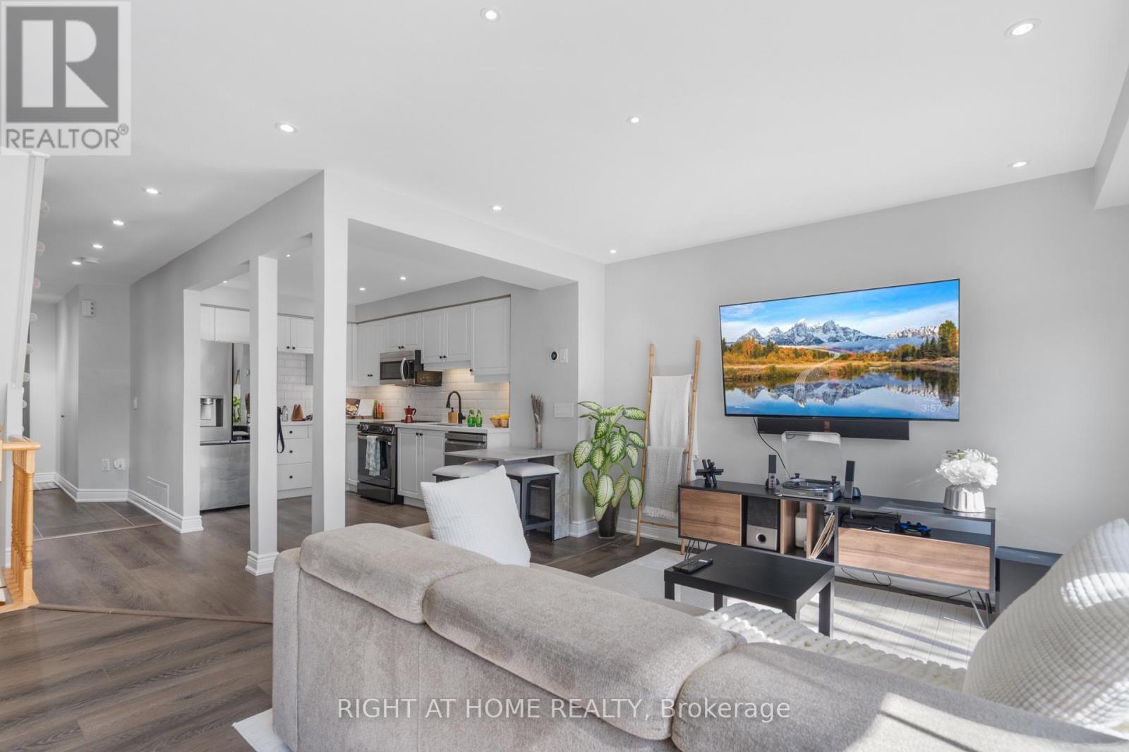 Renovated 1,624 sq. ft. townhome with custom layout-larger than others in the complex. Features an open-concept design, upgraded kitchen with quartz countertops, backsplash, under-cabinet lighting, and premium LG stainless steel appliances including a smart fridge. Smart light switches, LED pot lights, smooth ceilings, and fresh paint throughout.Finished basement offers flexible living space. Low-maintenance backyard with artificial turf, plus gas lines for BBQ/fire pit and added garage storage. Prime location minutes to highways, shopping, restaurants, medical clinics, and places of worship. Family-friendly community with playground, low fees, and roof maintenance included. (id:64974)