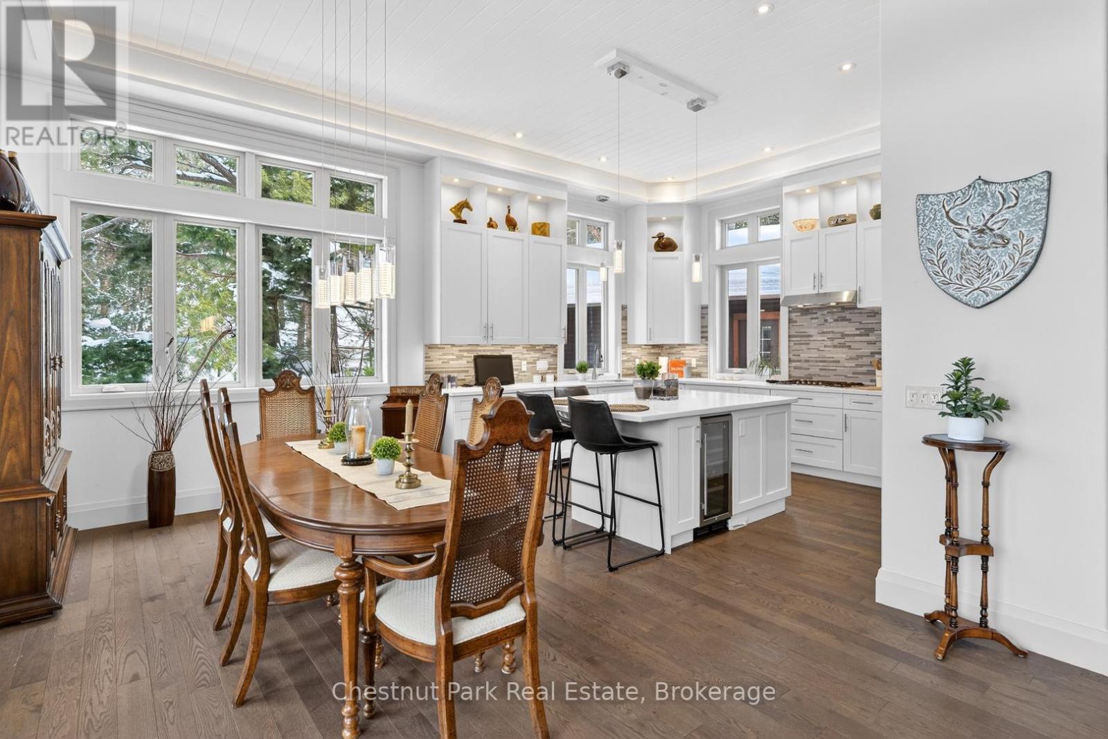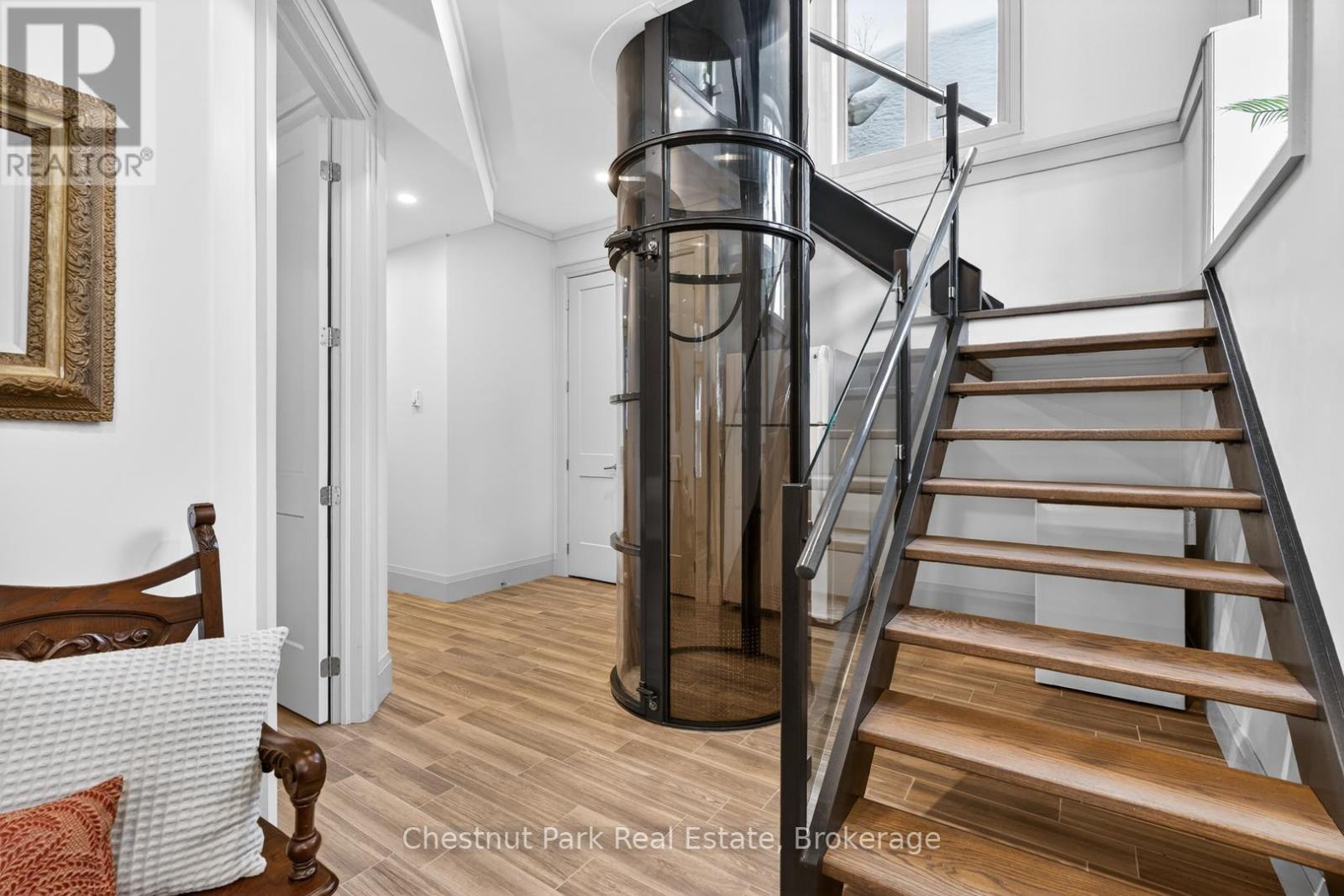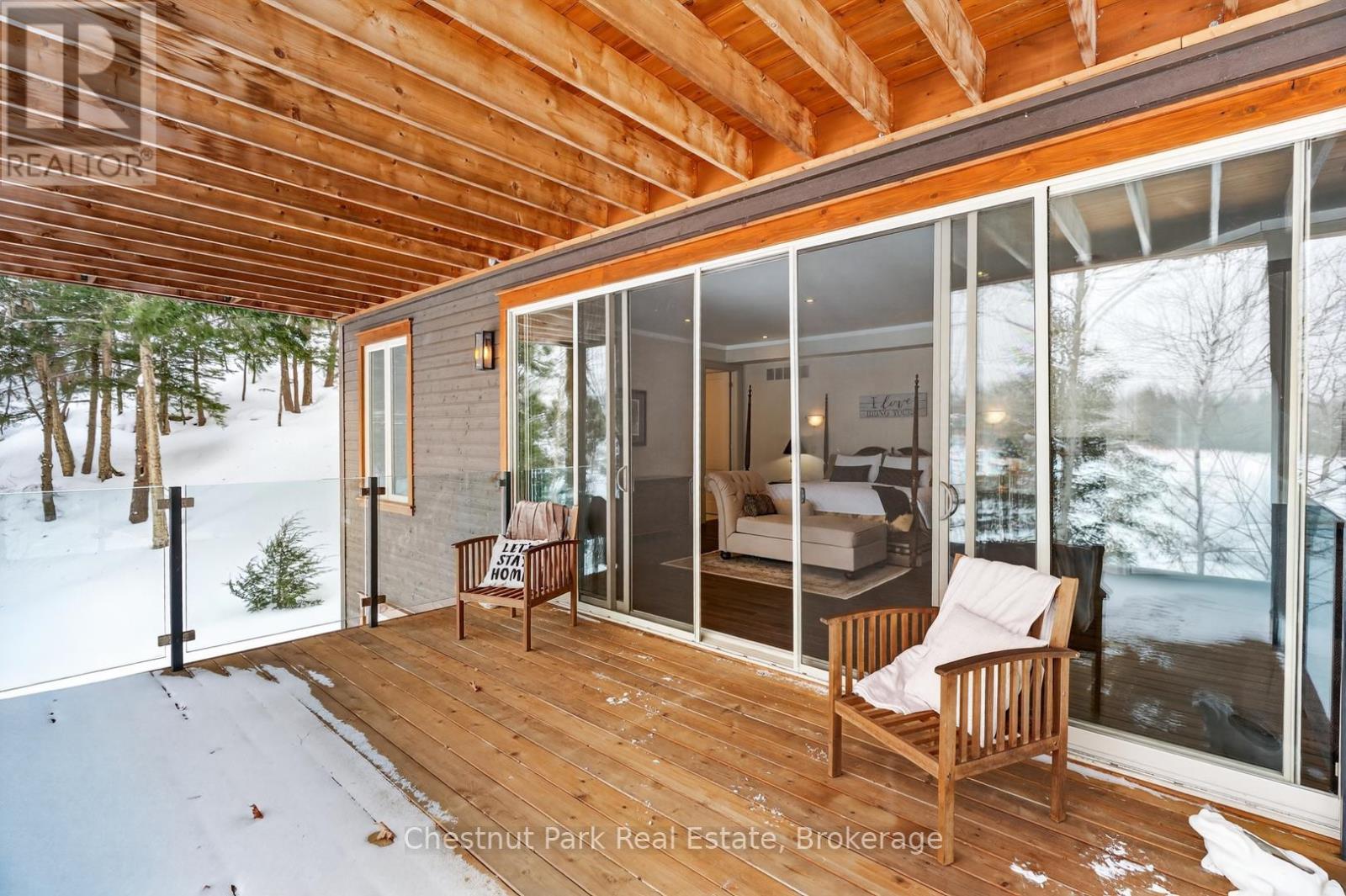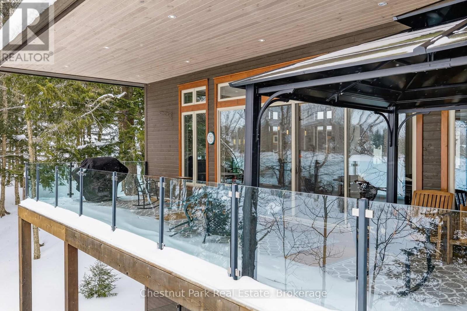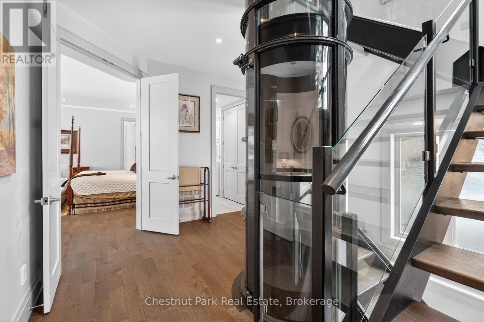Welcome to 41 Clubhouse Drive in the prestigious Highland Estates - where a beautifully custom-crafted fairway residence overlooks the Deerhurst Highlands Golf Course. Built in 2017 and enjoying full municipal services, this thoughtfully designed 3-bedroom, 3-bathroom home offers exceptional quality and functionality - complete with an elevator that is perfectly ensconced in the stairwell - conveniently providing accessibility for those with current or future mobility needs. Step inside from the level, covered timber frame entrance and you will be greeted by soaring ceilings, expansive windows, and an open-concept living, dining, and kitchen area complete with built-in appliances. Premium finishes are evident throughout. Cozy up by the gas fireplace or walk out to the amazing covered terrace which spans the entire width of the home, easily accommodating all of your entertaining needs from al fresco dining to simply relaxing outdoors. A rare feature - one entire floor is dedicated to your own luxurious primary retreat: first there is the spacious bedroom with separate sitting area den/office, then a spa-like 4-piece ensuite bath complete with in-floor heating and large walk-in closet. And another private covered balcony overlooks the golf course and the forested area beside (note: there is no neighbour to the right side). Ground floor level offers two additional bedrooms, both with ensuite access to the 5-piece bathroom. Generous closets, storage space and extra appliances too. Walk right out to the covered patio and beautifully landscaped yard. Additional highlights include a detached double car garage with separate storage area at rear, interlock driveway, whole-home Generac generator, central vac and central air conditioning. Many furnishings, both inside and out, are included - please inquire. Located on a quiet, sought-after street in one of Muskoka's premiere golf communities, and mere minutes from downtown Huntsville amenities. Book your appointment today! (id:64974)