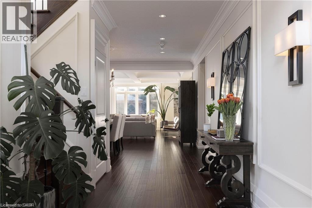 Most homes today are built to sell.This one was built by people who actually planned on living in it. You notice the difference the moment you walk through the door. Craftsmanship shows up immediately: crown moulding, oversized door and window casings, nine-inch baseboards, and engineered hardwood flows seamlessly through the first and second floors. Warm, consistent, and notably no carpet anywhere. The living room anchors the home with a waffle ceiling that catches the light beautifully and a full custom millwork fireplace wall that extends all the way to the ceiling; architectural details that add both warmth and character. Then there’s the kitchen. Designed for both everyday living and entertaining, it features marble countertops, custom cabinetry with soft-close hardware, and a walk-in pantry that actually functions the way a pantry should. Upstairs, the primary suite offers a calm and private retreat with a spa inspired ensuite that might actually make mornings enjoyable. Three additional bedrooms, a beautifully updated bathroom, and laundry room because hauling baskets to the basement is a lifestyle choice no one should make. The finished lower level adds versatility with durable luxury vinyl plank flooring designed for real life. A wet bar, fireplace, gym, fifth bedroom, bathroom, cold cellar and generous storage. It also happens to be an excellent place to hide from your in-laws when they visit. Step outside and the backyard feels like its own private retreat. Fully fenced with mature trees, thoughtful landscaping, and a gazebo perfect for long summer evenings. The work has already been done all that’s left is to enjoy it. The location brings everything together. Steps to the water, two minutes to the highway. Five minutes to wineries, and scenic trails. Right in the heart of Stoney Creek quiet when you want it, close to everything when you don’t. Homes built like this don’t come along often, come see the difference for yourself (id:64974)