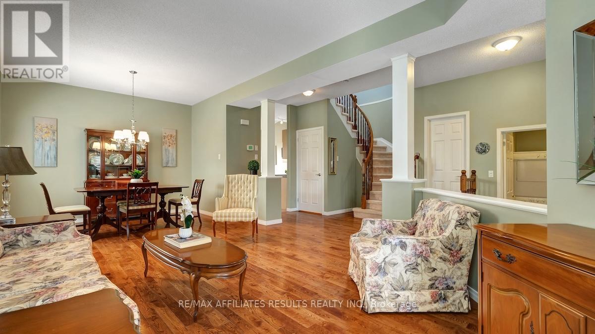 Welcome to 41 Fairlop Way, a beautifully maintained home in the heart of Barrhaven offering approximately 2,000 sq ft of well-designed living space plus a fully finished lower level. Located in a sought-after, family-friendly neighbourhood close to schools, parks, recreation, shopping, and transit, this home combines comfort, functionality, & timeless style. Step inside to a bright main level featuring rich hardwood flooring, elegant California shutters, and a graceful curved staircase that creates an impressive first impression. The layout offers excellent flow for both daily living and entertaining, with a formal dining room for special occasions and a separate breakfast nook for casual meals. The kitchen is equipped with stainless steel appliances and opens to the sunny breakfast area with patio doors leading to the no maintenance composite deck, perfect for summer barbecues and outdoor dining. The inviting sunken family room features a cozy gas fireplace, the ideal gathering space for relaxing evenings. The main level also offers convenient laundry, inside access to the double-car garage, and a practical 2pc powder rm. Upstairs, you'll find the spacious primary suite with cathedral ceiling and walk-in closet. The elegant updated 5-piece ensuite features a glass shower, soaker tub, double sinks, and a granite countertop in a bright, clean design. Two additional bedrooms share a well-appointed 4-piece bath. The finished lower lvl expands the living space with a large rec room. A private home office with dbl pocket doors offers a quiet place to work or study, while a 4th bed with an entire wall of closet space and a stylish 3-piece bathroom makes an ideal guest or teen suite. Outside, the landscaped backyard is fully fenced and designed for low-maintenance living with no lawn to mow. This move-in ready Barrhaven home offers space, style, and just feels like HOME! Book your private showing today and experience everything 41 Fairlop Way has to offer. (id:64974)