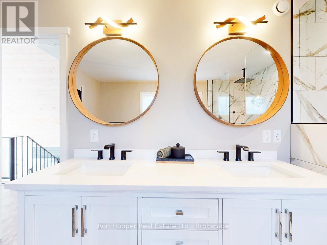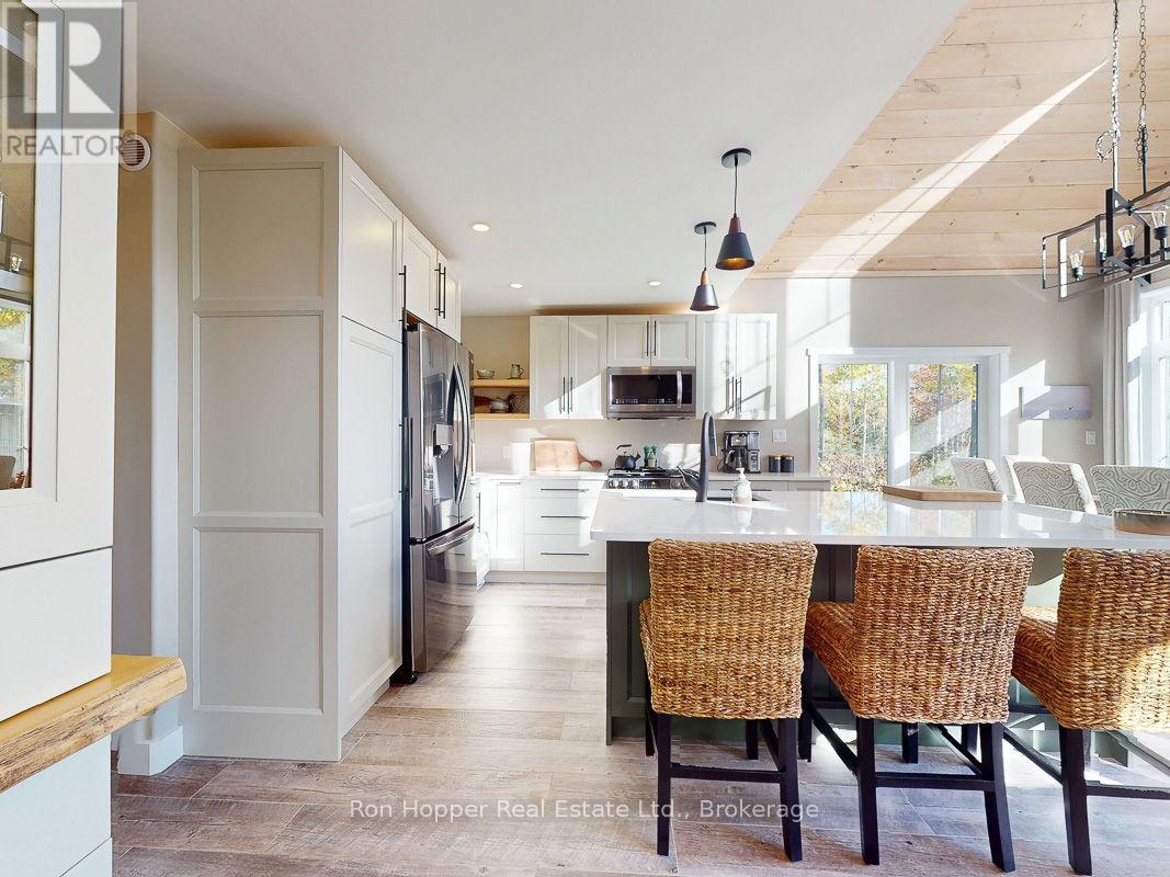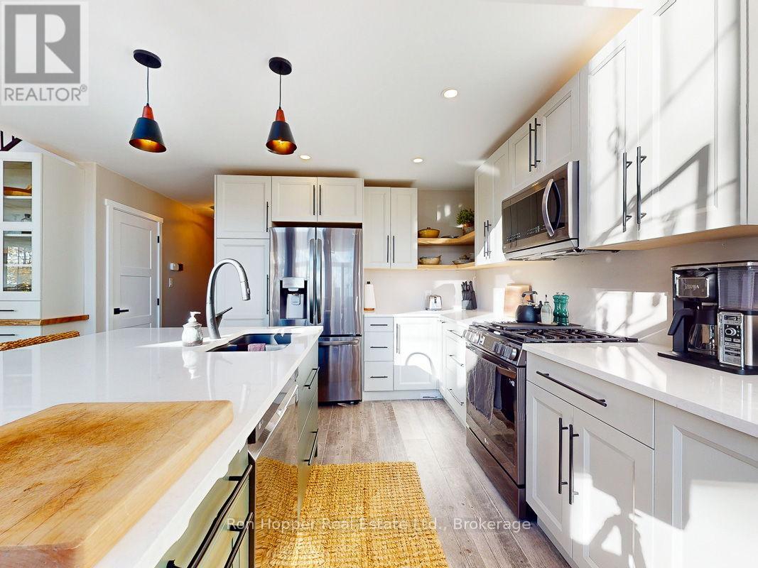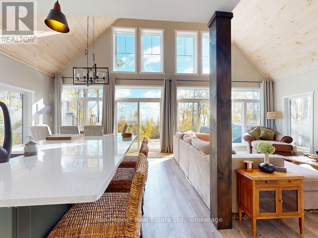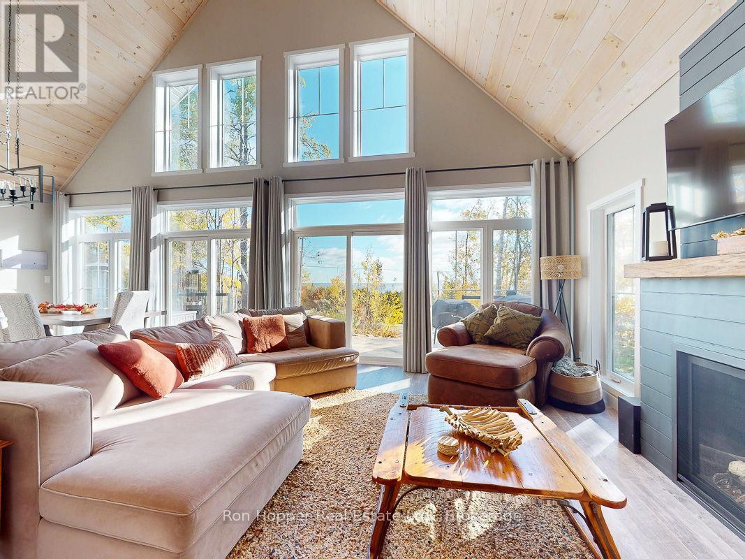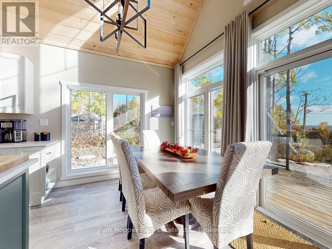 Experience breathtaking elevated waterviews of Georgian Bay from this newly finished home/cottage, perfectly designed for relaxed coastal living. The open-concept design features soaring cathedral ceilings and a stunning custom kitchen with quartz countertops - ideal for entertaining or quiet evenings at home.This 3-bedroom, 2-bath home includes an impressive second-level primary suite with a walk-in closet, a luxurious ensuite featuring a soaker tub and custom shower, and your own private balcony - the perfect place to enjoy the unbelievable sunrises over Georgian Bay. Additional highlights include efficient hot-water in-floor heating, a cozy propane fireplace, and an oversized shed perfect for storing canoes, kayaks, and all your outdoor gear. A full unfinished basement is ready to be developed to suit your needs, while the beautifully designed, low-maintenance landscaping ensures more time to relax and enjoy the view.Set on a quiet dead-end road, this exceptional property is just steps from the public boat launch and dock at the entrance to Dyers Bay. Enjoy easy access to the scenic wonders of Tobermory and Lion's Head - this is Georgian Bay living at its finest! (id:64974)
