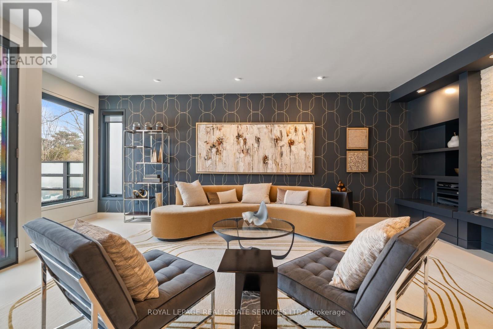Modern. Funky. Completely One-of-a-Kind in The Kingsway! Welcome to a home that truly stands apart. This gorgeously renovated residence in the heart of The Kingsway blends contemporary design with bold architectural character - offering a living experience you simply won't find anywhere else. The main floor is designed for both everyday living and unforgettable entertaining. A spacious dining room is anchored by a stunning double-sided gas fireplace, creating warmth and ambiance that flows seamlessly into the rear living space. The open-concept family room is filled with natural light from oversized windows and connects beautifully to a show-stopping renovated kitchen. Featuring a large centre island, stainless steel appliances, sleek finishes, and incredible functionality, this is the true heart of the home. Walk out to a professionally landscaped backyard oasis complete with a built-in BBQ, multiple seating areas, and even your own private putting green - an entertainer's dream and a peaceful retreat all in one. Upstairs, the primary suite is nothing short of spectacular. This oversized retreat offers a walk-in closet and a gorgeous semi 5pc ensuite bath designed with both luxury and comfort in mind. 2 additional bedrooms complete the upper level, perfect for family, guests, or a home office. The lower level adds even more living space with a recreation room featuring a projector setup and wet bar - ideal for movie nights and game days. You'll also find a 3pc bath, laundry room, and ample storage. Cool feature walls, statement fireplaces, expansive windows, and thoughtful design details throughout make this home as stylish as it is functional. Located within top-rated school districts and just a short walk to Royal York station, along with fantastic restaurants, cafés, boutiques, and everyday amenities, this is an exceptional opportunity to enjoy the very best of Kingsway living! (id:64974)