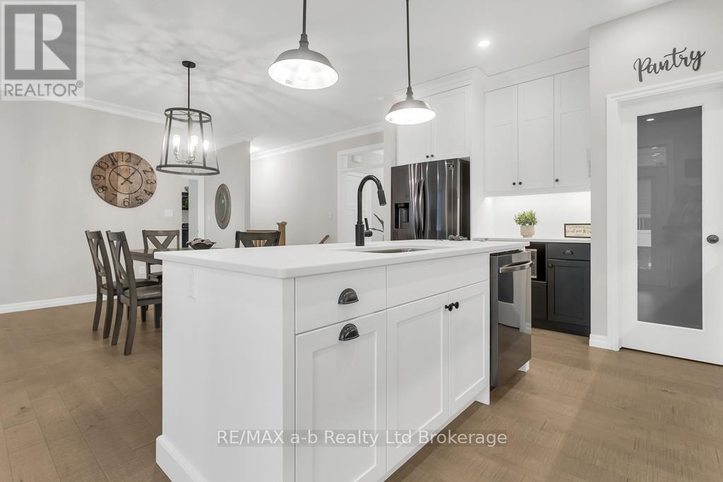 Welcome to 41 Lowrie Crescent, built in 2020 this beautifully maintained bungalow offers 3 bedrooms and 3 bathrooms with 2383 square feet of beautifully finished living space. From the moment you walk in, you'll feel right at home with its bright, open layout, 9-foot ceilings, gleaming maple hardwood floors, elegant crown molding, and cozy gas fireplace. The kitchen is truly the heart of the home, featuring a large island ideal for gathering, gorgeous leathered quartz countertops, a modern tile backsplash, and high-quality stainless steel appliances. The primary bedroom, tucked away at the back for added privacy, includes a walk-in closet and a stylish ensuite with a glass and tile shower. Downstairs, the fully finished basement provides incredible flexibility with a spacious bedroom, full bathroom, large family room, second kitchen setup, and plenty of storage space-all filled with natural light from large windows. Whether you're hosting, relaxing, or accommodating extended family, this home has it all. Don't miss your chance-schedule your showing today! (id:64974)