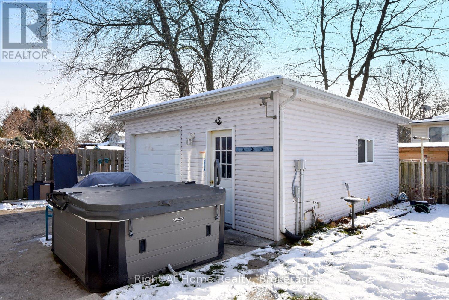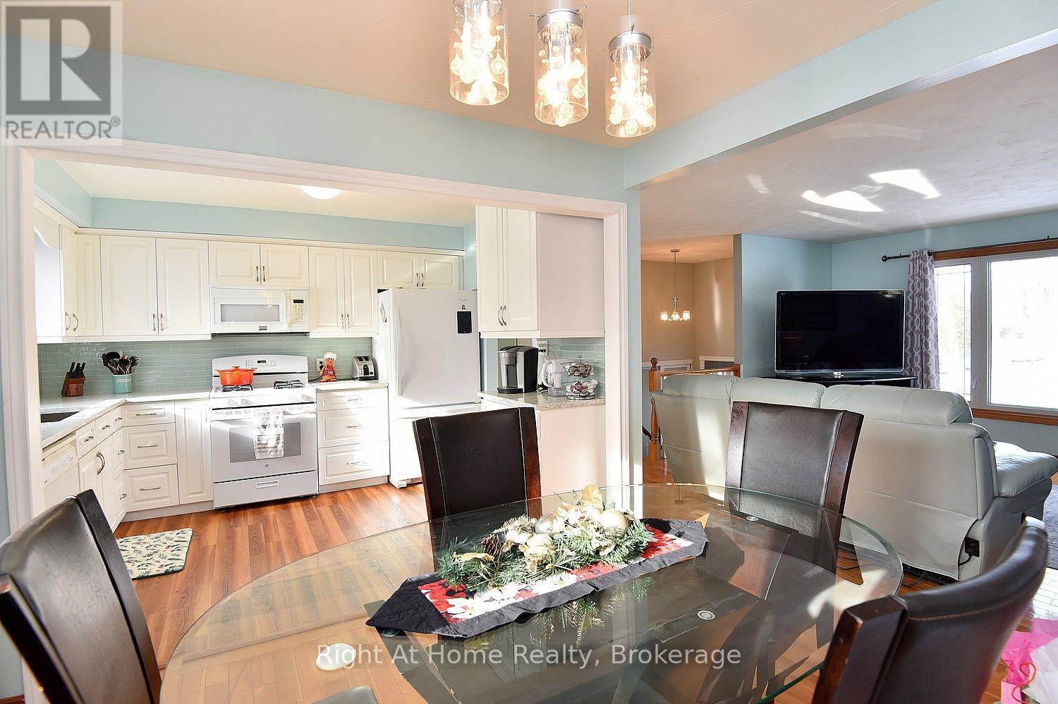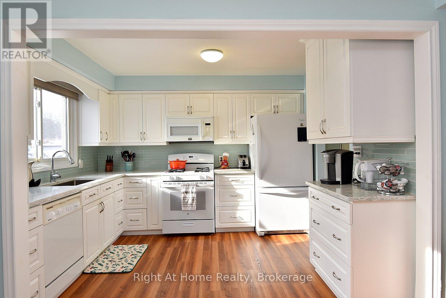Situated in a desirable neighbourhood, this beautifully maintained raised bungalow is perfect for a family or empty nesters! The oversized 27' x 27' detached garage has an approximately 2 year old roof, hydro and is insulated for year round use and offers a perfect spot for hobbies or a workshop. Bright and airy throughout and decorated in neutral colours, this home is in move in condition! The main floor offers a large living room and dining room with hardwood floors, a modern kitchen with an abundance of cupboards, quartz countertops, updated appliances and luxury vinyl flooring, 3 spacious bedrooms and a modern 4 piece bath. The lower level offers a cozy family room featuring a gas fireplace for chilly winter nights. A 4th bedroom, a recently completed 3 piece bathroom with a shower, laundry room and storage room complete the lower level. The fully fenced rear yard offers a patio with a gazebo, gas bbq hookup and pretty gardens. The stamped concrete driveway provides parking for 4 vehicles. Just minutes from shopping, schools, seniors' centre, parks, waterfront and restaurants! (id:64974)