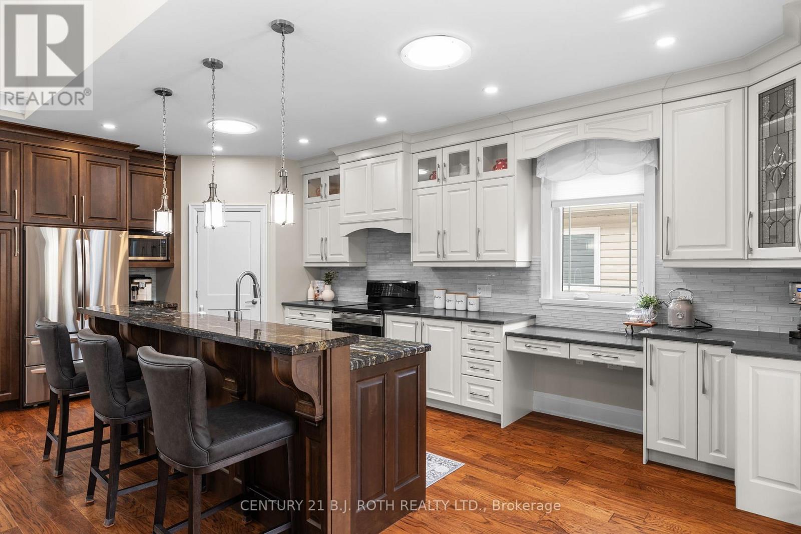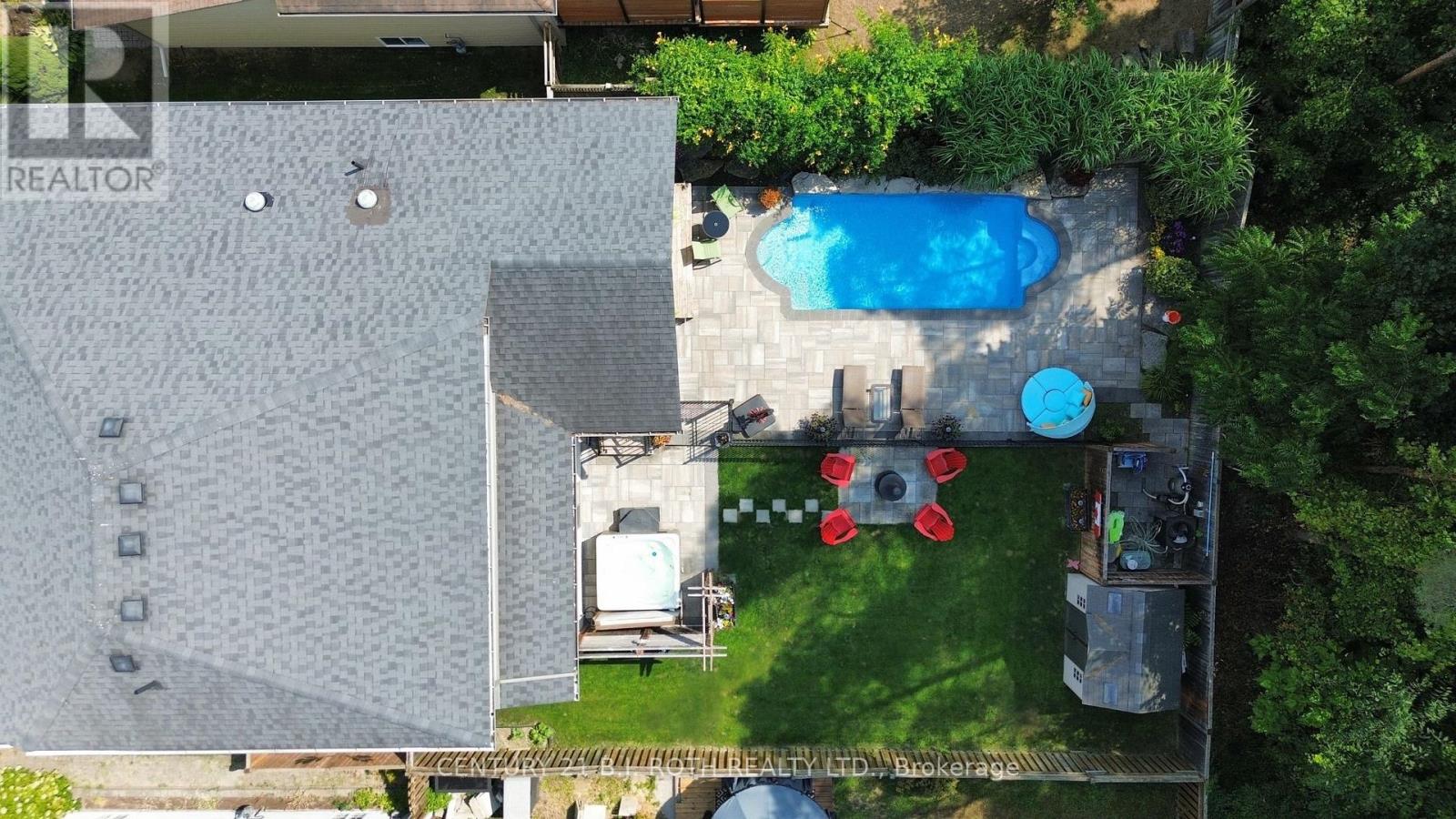 Welcome to a truly one-of-a-kind, custom-built home offering the perfect blend of luxury, functionality, and multi-generational living complete with your own private backyard retreat and stunning in-ground pool. Offering over 4,000 sq.ft of immaculately finished living space, this property is packed with thoughtful details at every turn. From the moment you arrive, you'll appreciate the spacious double car garage with soaring ceilings and an 8-car driveway perfect for families, guests, and entertaining. Inside, you're welcomed by engineered hardwood floors throughout the main and upper levels, elegant wainscoting, crown moulding, bell arch details, and 9 ft ceilings throughout, with even higher ceiling heights in select areas. The open concept kitchen and dining area is a showstopper, featuring stainless steel appliances, floor-to-ceiling custom two-tone cabinetry, granite countertops, a walk-in pantry, wine fridge, and wheelchair accessibility. The primary bedroom is conveniently located on the main floor with a generous walk-in closet and a luxurious en-suite boasting a floating soaker tub and stand-up shower. Upstairs offers two more spacious bedrooms, while the fully finished basement includes a large entertaining space, dedicated craft room, luxury laminate flooring, and coffered ceilings. Step outside to your beautifully landscaped, private backyard oasis overlooking mature trees complete with a large covered deck, in-ground pool, hot tub, and charming shed. This property also includes a full 1-bedroom apartment/in-law suite with a private entrance, terrace, contemporary kitchen, bathroom, furnace, A/C, and outdoor space perfect for multi-generational families, guests, or rental income. Homes like this are rare , don't miss your chance! (id:64974)