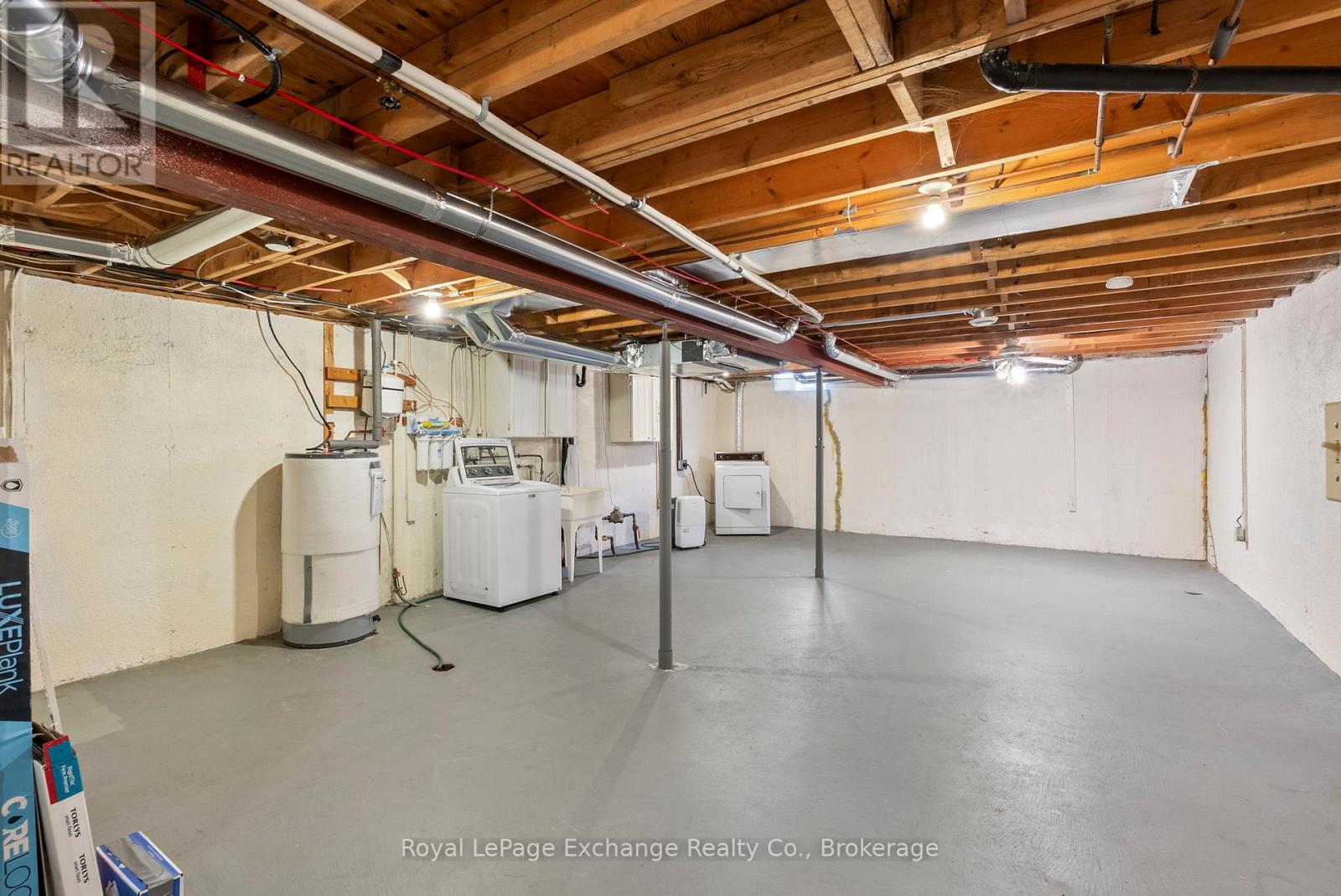 Are you looking to break into the Real Estate market, raise a family or add to your investment portfolio? Well, consider this well kept, end unit, low maintenance home within popular condominium complex of Kincardine. This condo has updated vinyl windows, steel roof, upgraded front door, stamped concrete patio and updated garage doors plus interior you will find a custom Hanover Kitchen and laminate flooring. This unit has an upgraded heating system which includes an energy efficient heat pump which does heating and cooling, the main floor has ducts and the upstairs is ductless (two heads). The electrical panel has been upgraded from fuses to a 200 amp breaker panel. There is nearly 1300 finished sqft above grade of living space plus an unfinished basement which you could in time finish to your liking. There is a nice flow to the main level having kitchen with dinette, dining room, living room and a 2pc bathroom. Upstairs you fill find 4 bedrooms, an updated bath fitters bathroom and laundry hook up in addition to laundry in the basement (two options!) An attached 1 car garage with garage door opener provides excellent additional parking or storage space. One item to consider as a important note is water & sewer IS INCLUDED in your monthly condo fee. Many other condos in Kincardine do not include water/sewer in your monthly condo fee, so this is a plus! This unit is definitely worth a look, you will be impressed! (id:64974)