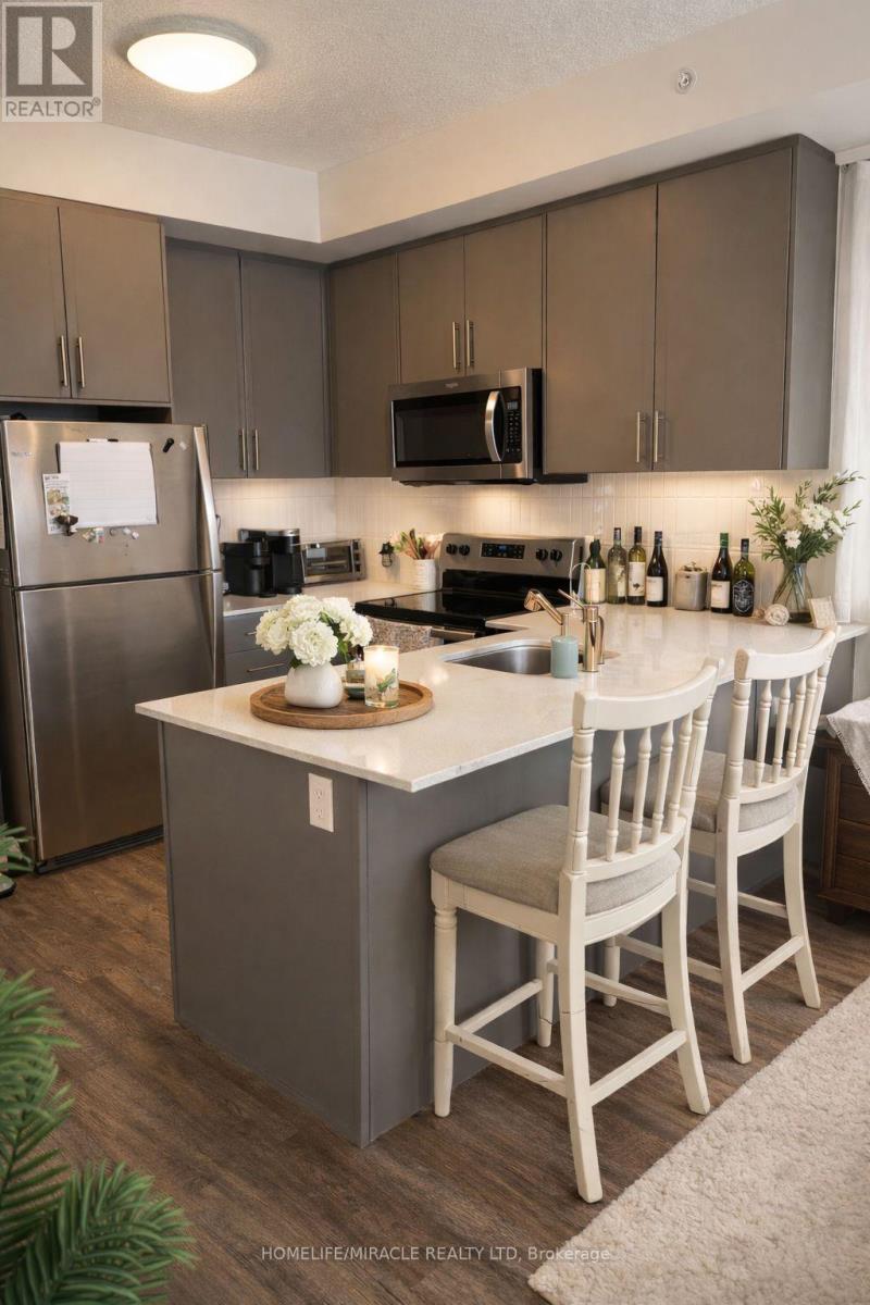 Welcome to Spurline Common Condos, where modern living meets everyday convenience. This beautifully designed one-bedroom, one-bathroom suite offers over 600 square feet of functional and stylish space, perfect for comfortable urban living. Step inside to a bright, open-concept layout that feels spacious and inviting. Expansive floor-to-ceiling windows flood the home with natural light, creating a warm and airy atmosphere. The contemporary kitchen features sleek stainless steel appliances and laminate flooring, blending style with practicality. Enjoy the added convenience of in-suite laundry and the peace of mind that comes with a well- managed, secure building. Residents can take full advantage of premium amenities, including a party and meeting room for entertaining, secure bike storage, and ample visitor parking for guests. Ideally located for both professionals and students, you are just minutes from Grand River Hospital, Google's Waterloo headquarters, major highways, and public transit. Top educational institutions such as Wilfrid Laurier University, the University of Waterloo, and Conestoga College are all within close proximity. Whether you are a first-time buyer, investor, or looking to downsize, this condo offers the perfect blend of comfort, style, and location. An opportunity like this does not come often. (id:64974)
