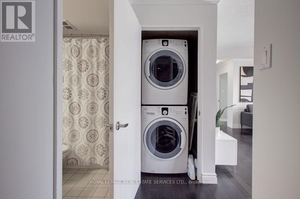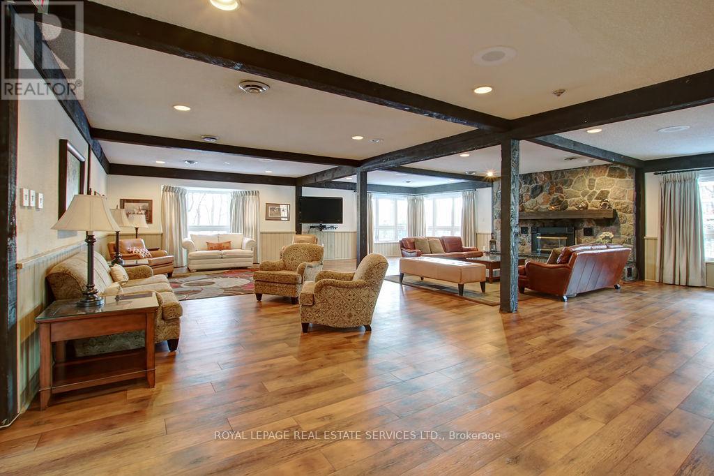 Welcome to this spacious 2 bedroom, 2 bathroom condominium, just shy of 1,000 sq. ft. of refined living space in the highly sought-after Walden Spinney community of Clarkson. This thoughtfully designed suite features an open-concept layout with hardwood floors, granite countertops, and generous principal rooms ideal for both everyday living and entertaining, complemented by scenic South-West facing windows that fill the home with natural light. This is a very quiet, well-maintained building, known for its strong sense of community and pride of ownership. Residents enjoy exceptional amenities including an on-site gym, guest suites and sauna, along with exclusive access to the Walden Club, featuring an outdoor pool, fitness centre, squash and racquet courts, as well as tennis and pickleball courts. The beautifully landscaped grounds are surrounded by mature trees and scenic walking paths, creating a peaceful, park-like setting. The condo comes with 2 parking spots, high speed internet and cable tv package. Ideally located just steps from the Clarkson GO Station and only minutes to the Port Credit and Oakville waterfronts, shops, dining, and major commuter routes. This is a rare opportunity to own in one of Clarkson's most desirable communities. (id:64974)