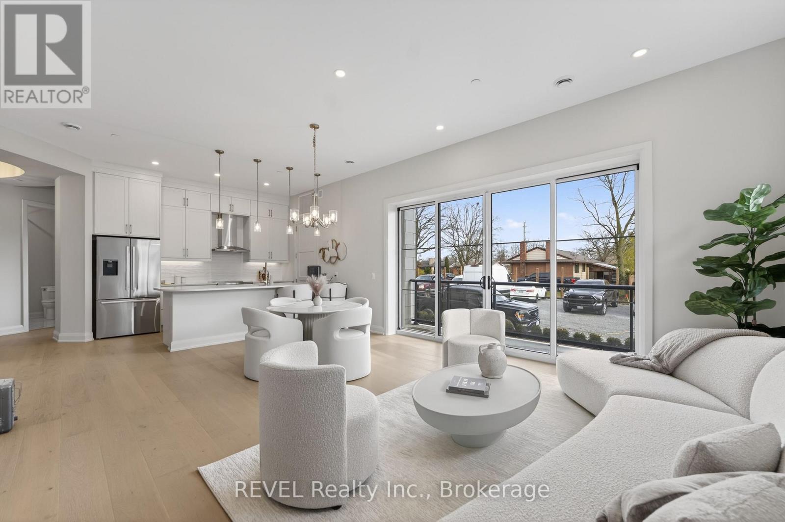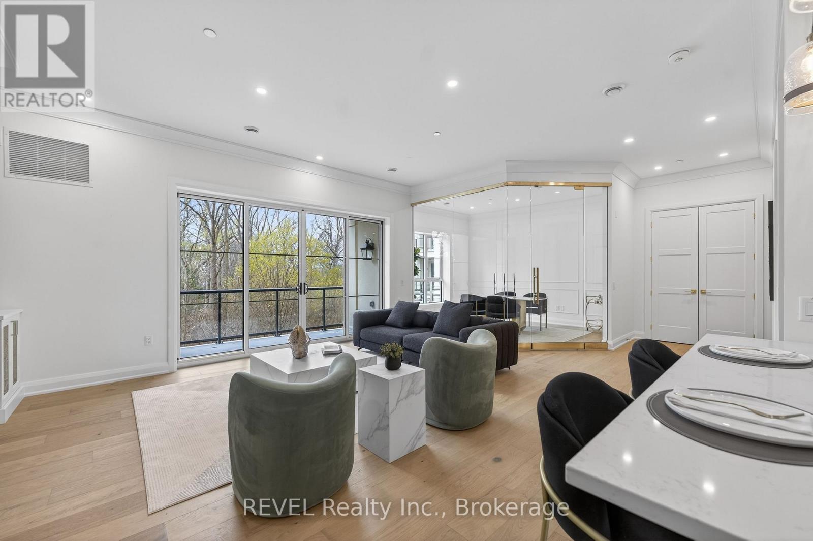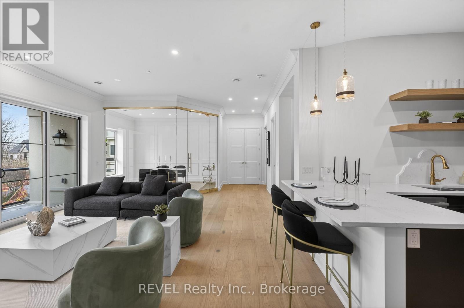 Welcome to The Gaultier A2 at Coveteur, Niagara's newest address for luxury living. This stunning fourth-floor suite offers 1,457 sq. ft. of beautifully finished living space with 2 spacious bedrooms and captivating West-facing views of the surrounding natural scenery. Designed for modern elegance, this open-concept suite features 10-ft ceilings, 8-ft doors, and an architecturally distinctive circular foyer. Personalize your home with one of four curated designer decor stylesParisian, Scandinavian Chic, New York Loft, or European Traveller each crafted for timeless sophistication. The kitchen boasts designer cabinetry with crown moulding, quartz countertops, a tile backsplash, and an eat-in island perfect for entertaining. Enjoy year-round comfort with an Echobee smart thermostat and an individual high-efficiency MagicPak system with fresh air ventilation. Elegant three-pane sliding doors open to a private balcony offering serene views. Building amenities include a landscaped outdoor terrace, party room with kitchen, library and lounge with two-sided fireplace, and a fitness and yoga studio. One underground parking space and locker included. Built strong with Insulated Concrete Forms (ICF) for superior quality and energy efficiency. Construction is underway with occupancy expected Fall 2026. Visit www.coveteur.ca for floorplans and more details. (id:64974)