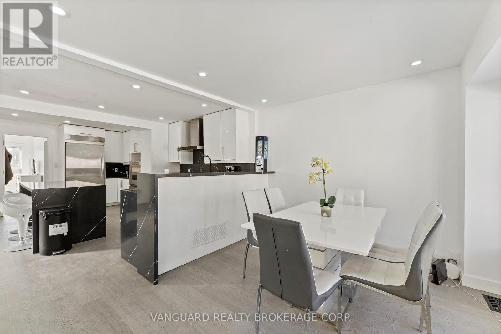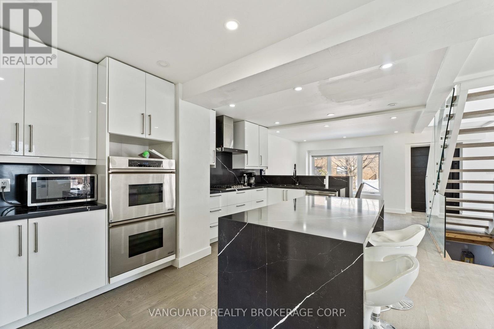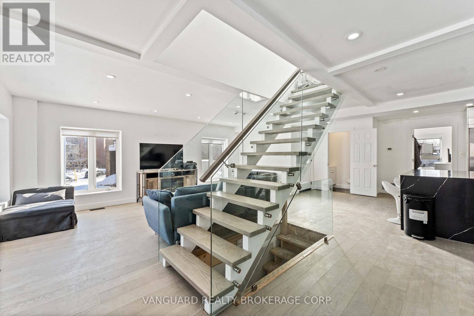 Experience the perfect blend of modern luxury and investment potential in the Junction! Meticulously reconstructed in 2022, this stunning two-dwelling home offers 1,709 sq ft of bright, open-concept living space. The main level features premium hardwood floors, a chef-inspired kitchen with built-in appliances, and a private second-level rooftop deck-perfect for entertaining or relaxing. A fully permitted one-bedroom basement suite with large windows, private laundry, and a separate walk-up entrance adds flexible living options-ideal for rental income or multi-generational living. Beautifully finished with porcelain tile flooring and granite countertops. All major systems are new and modern, including a 200-amp electrical panel, plumbing, and high-efficiency HVAC with HRV, wrapped in a sleek stucco exterior. Situated on a rare corner lot with two-car parking and R(d0.6) zoning, offering potential for laneway housing. This is a true turnkey, like-new home in Toronto's vibrant Junction neighborhood-luxury living with smart investment potential. (id:64974)