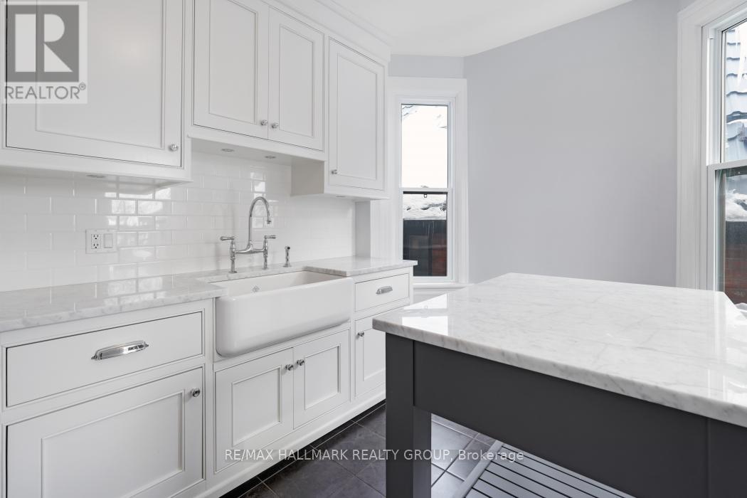 Welcome to this stunning Centretown residence at 410 McLeod Street, showcasing exceptional curb appeal and an unparalleled blend of historic charm and modern sophistication. This impressive three-storey home offers 7 bedrooms (5 + 2) and 5 bathrooms, presenting a rare and versatile opportunity in the Ottawa market. Meticulously upgraded while preserving its character, the home features restored baseboards, trim, staircases, and pocket doors, seamlessly complemented by modernized windows, designer fixtures, and hotel-inspired bathrooms. The heart of the home is the spacious chef's kitchen, complete with two built-in ovens, a six-burner gas cooktop, a stone-topped island with a second sink, Caesarstone countertops, marble backsplash, maple and birch cabinetry, and a centre island - a chef's dream. The principal rooms are generous and inviting, ideal for hosting gatherings, and include glass door to the rear deck. The elegant rotunda offers flexible space for your personalized use. Recent dark wool stair runners add warmth and continuity across all levels. The second floor features two bedrooms with beautiful transom windows, including a primary suite with a four-piece ensuite, dressing quarters, and a conveniently located, well-appointed laundry room. The third floor offers three additional bedrooms or office spaces, a recently constructed three-piece bathroom, and updated light fixtures. The lower level includes a family room, exercise room, two more bedrooms, and a three-piece bathroom. With its separate entrance, this level provides excellent potential for a home-based business or private client space. Outside, enjoy the recently constructed private rear deck and interlock patio, complete with tasteful privacy screens-perfect for quiet evenings or entertaining family and friends. A truly exceptional property not to be missed. 24 hours irrevocable on offers. Schedule B to accompany all offers. See attached Historical Updates (2010-2025). Room measurements +/- jogs. (id:64974)