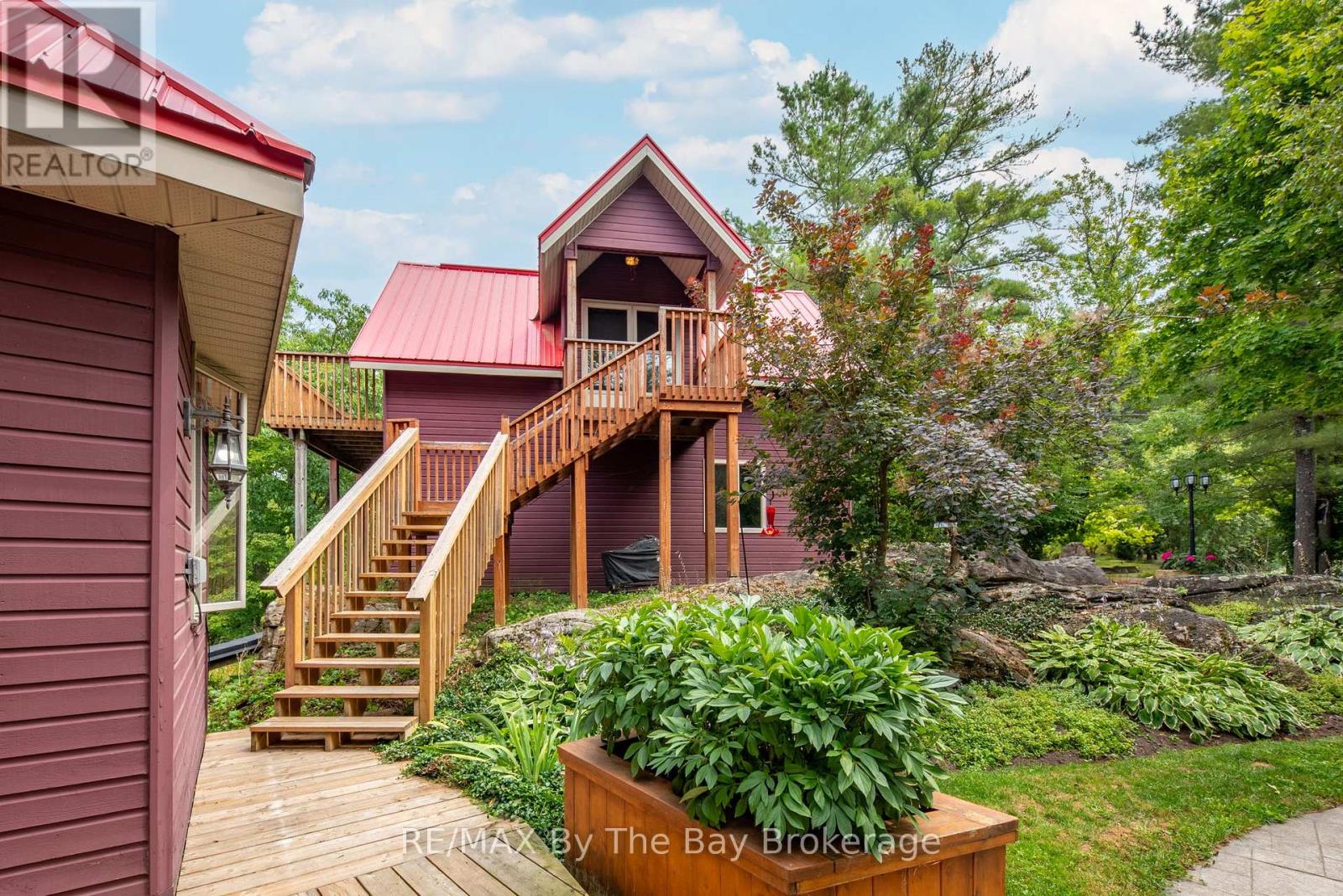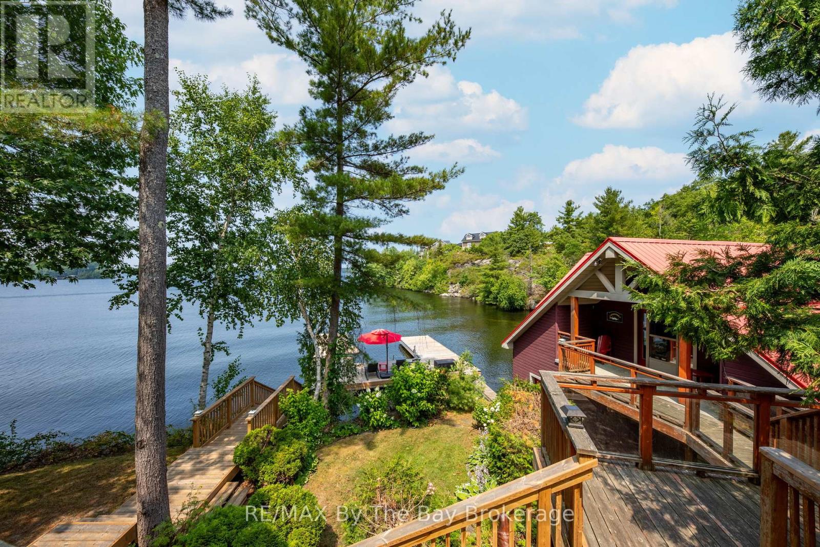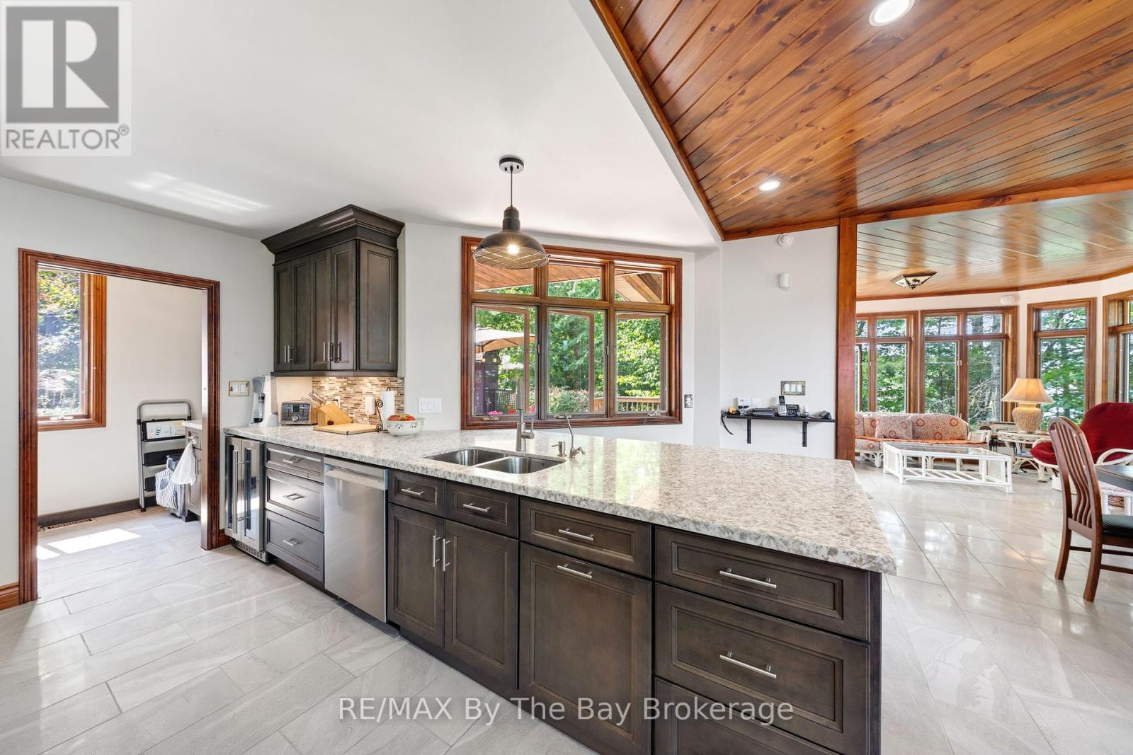 Discover your waterfront sanctuary where exceptional craftsmanship meets pristine natural beauty. This stunning 3-bed, 3-bath home showcases superior construction throughout, featuring an open concept design that connects living spaces while maximizing the breathtaking water views through expansive windows that flood the interior with natural light.The heart of this home centers around a massive stone fireplace, creating a focal point perfect for cozy evenings after days spent on the water. The thoughtful layout includes generous guest accommodations, ensuring friends and family feel welcome during their lakeside retreats. Multiple ceiling fans provide comfort during warm summer months, while the winterized construction allows for year-round enjoyment.Step outside to experience the magic of waterfront living. The property has an array of outdoor amenities, including a large dock perfect for mooring watercraft, a convenient double marine rail for easy boat launching, and your own private boathouse for secure storage. Gloucester pool offers refreshing swims, scenic water views and access to Georgian Bay and Severn River, while the screened patio provides bug-free relaxation during summer evenings.Multiple decks create various outdoor entertainment zones, complemented by beautifully maintained gardens that add natural charm to the landscape. A practical shed offers additional storage for outdoor equipment and seasonal items.Privacy is paramount here, with the secluded location ensuring peaceful mornings with coffee overlooking the water and tranquil evenings watching spectacular sunsets. Whether you're an avid boater, swimming enthusiast, or simply someone who appreciates the finer things in life, this property delivers an unmatched combination of luxury, functionality, and natural splendor.This is more than just a house it's your gateway to the ultimate waterfront lifestyle, where every day feels like a vacation and memories are made to last a lifetime. (id:64974)