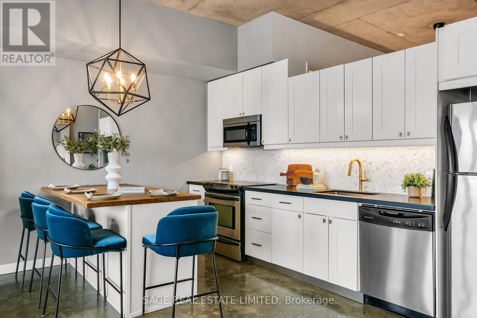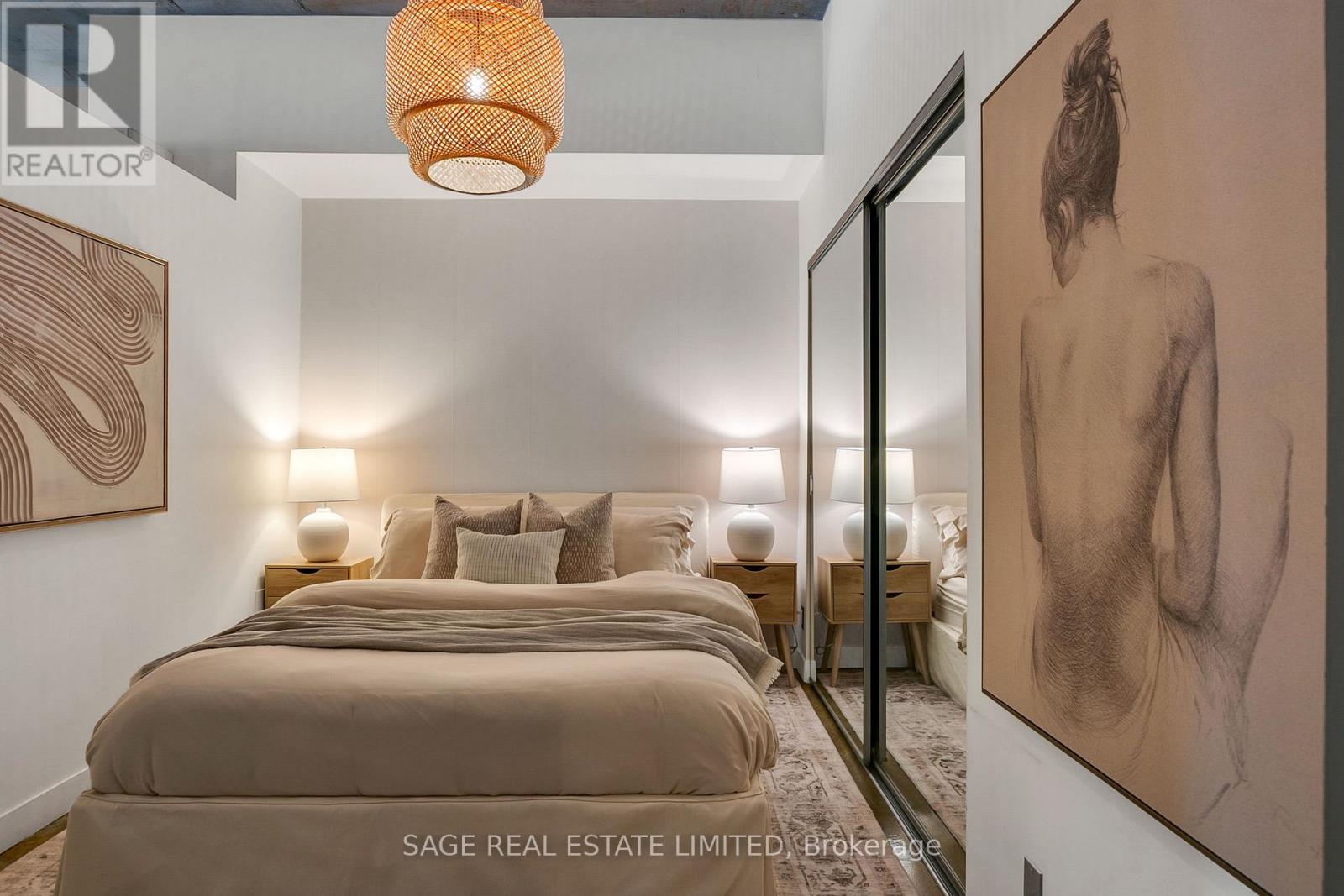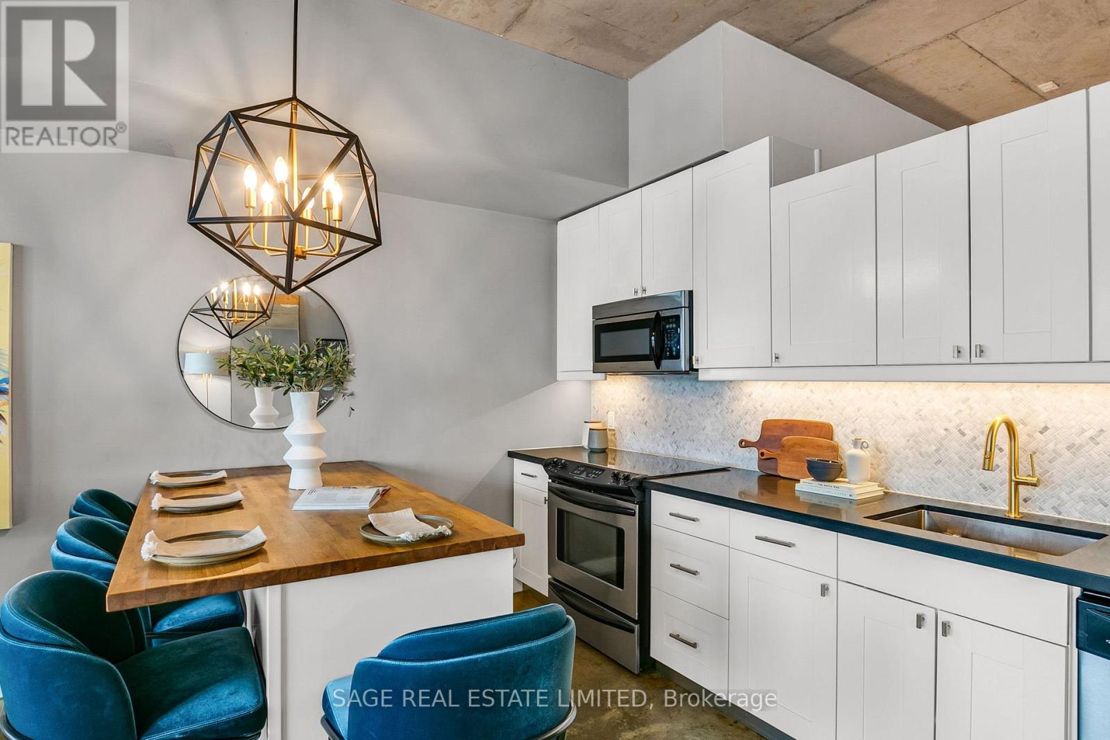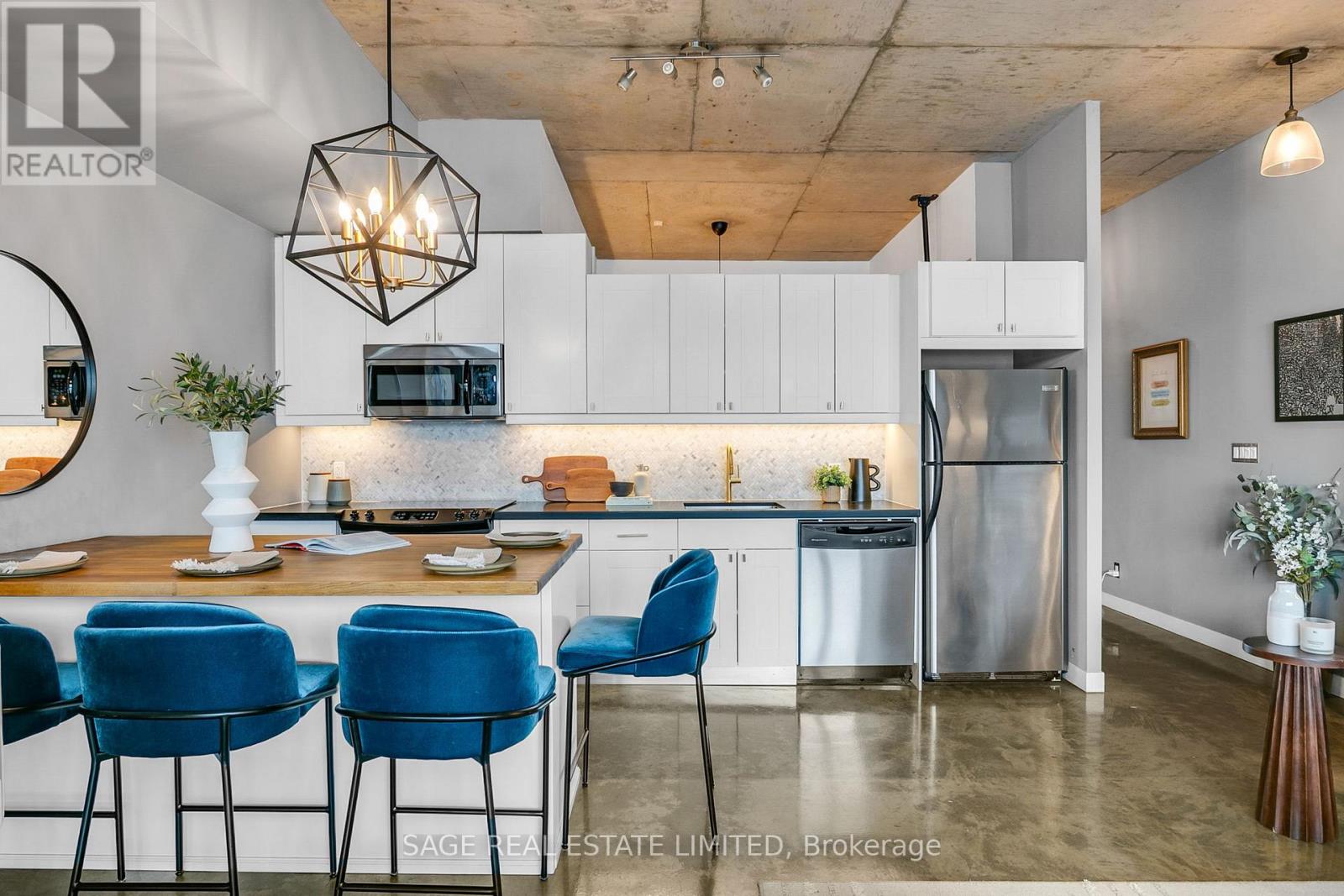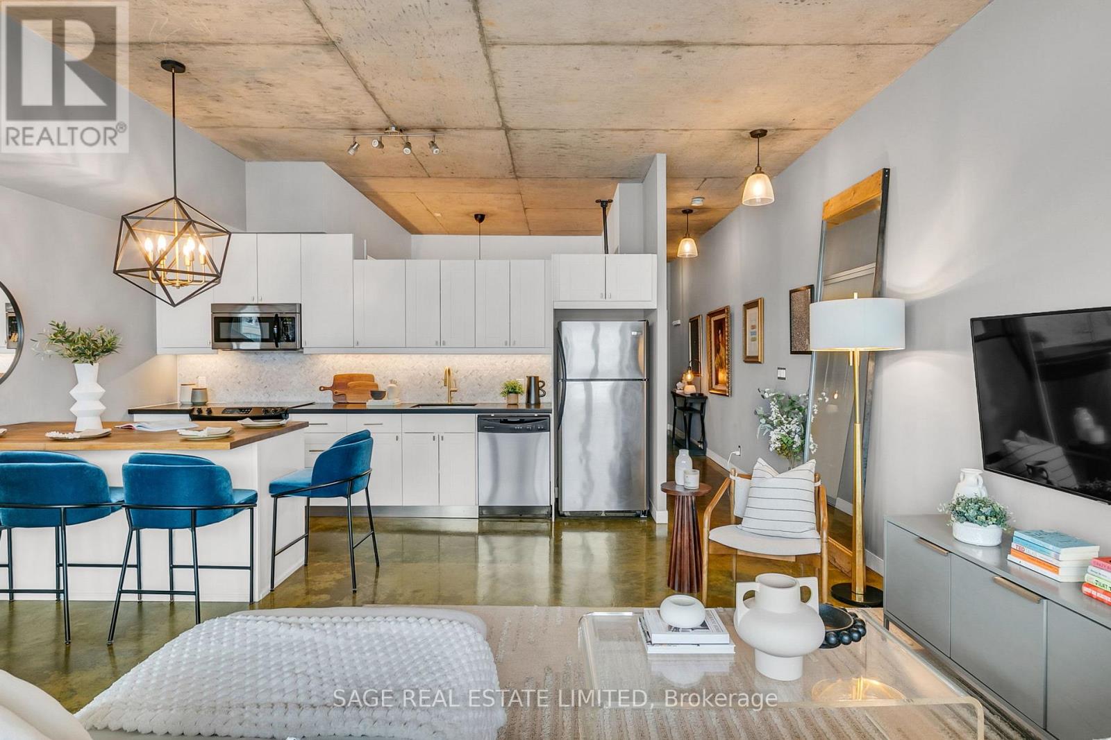 Welcome to The Printing Factory Lofts in the heart of Leslieville, Toronto's east-end neighbourhood known for its independent spirit, vibrant Queen Street corridor, and authentic hard loft conversions. This south-facing 1 bedroom, 1 bathroom residence offers over 700 square feet of thoughtfully designed living space in one of the area's most coveted industrial buildings. Inside, original green stained concrete floors ground the space in true hard loft character. A soaring heritage pillar is revealed as you move through the unit, intentionally positioned to let the layout unfold with subtle architectural drama. The updated kitchen and modernized bathroom feature clean, contemporary finishes that contrast beautifully with the building's industrial roots. Nothing to renovate. Nothing to rethink. Just move in. Living here means stepping directly into the rhythm of Leslieville. Morning runs to Woodbine Beach. Winter skating at nearby neighbourhood parks. Swim at local community pools. Patio evenings along Queen Street East. A two-minute walk to Crow's Theatre. Quick streetcar access downtown and easy routes out of the city via the DVP and Lakeshore. Ideal for young professionals seeking a stylish Toronto hard loft with downtown access, or for end users who value authentic architecture, community energy, and lifestyle over cookie-cutter condo living. This is for buyers who understand that location is not just proximity. It is immersion. This is where Leslieville actually happens. (id:64974)
