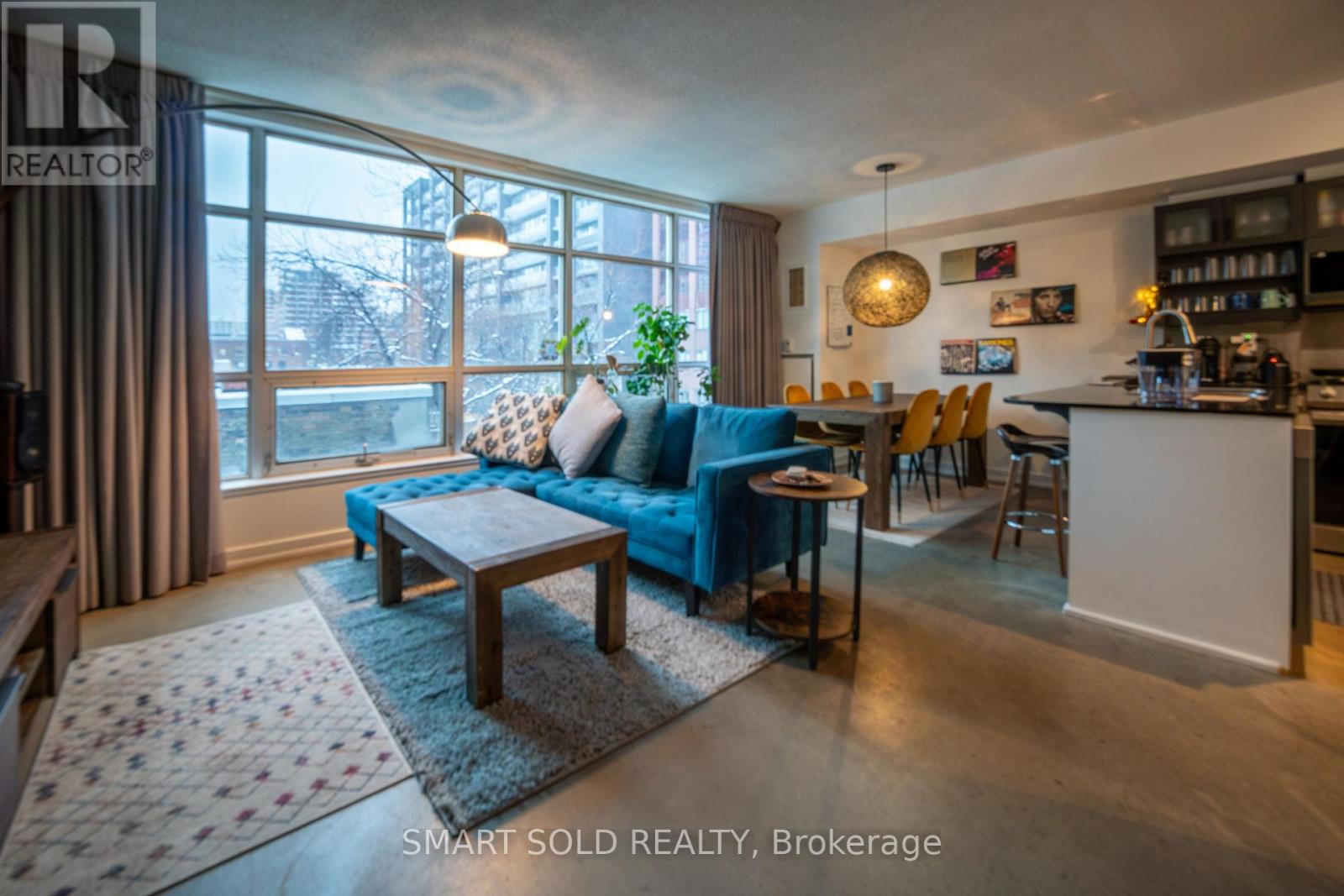 Fully furnished and all-inclusive. First time offered for rent - meticulously maintained and owner-occupied. This 615 sq. ft. soft loft-style unit offers an exceptional layout with no wasted space. Bright west-facing views in a sought-after boutique condo.Features include a spacious bedroom with an extra-wide doorway and sliding doors, smooth concrete floors, and a large kitchen complete with full-sized appliances and a breakfast bar - perfect for everyday living or entertaining. Enjoy an exclusive, boutique living experience in an ultra-prime downtown location. Just minutes from The Well. (id:64974)