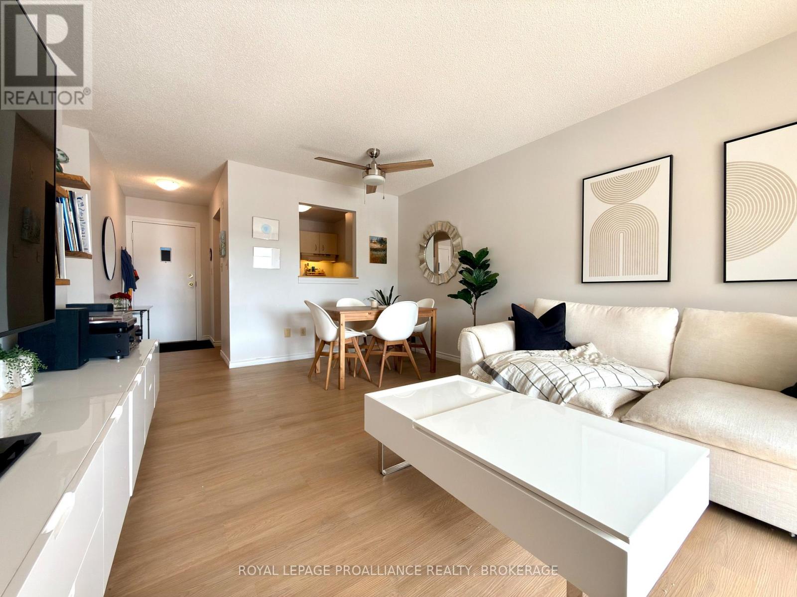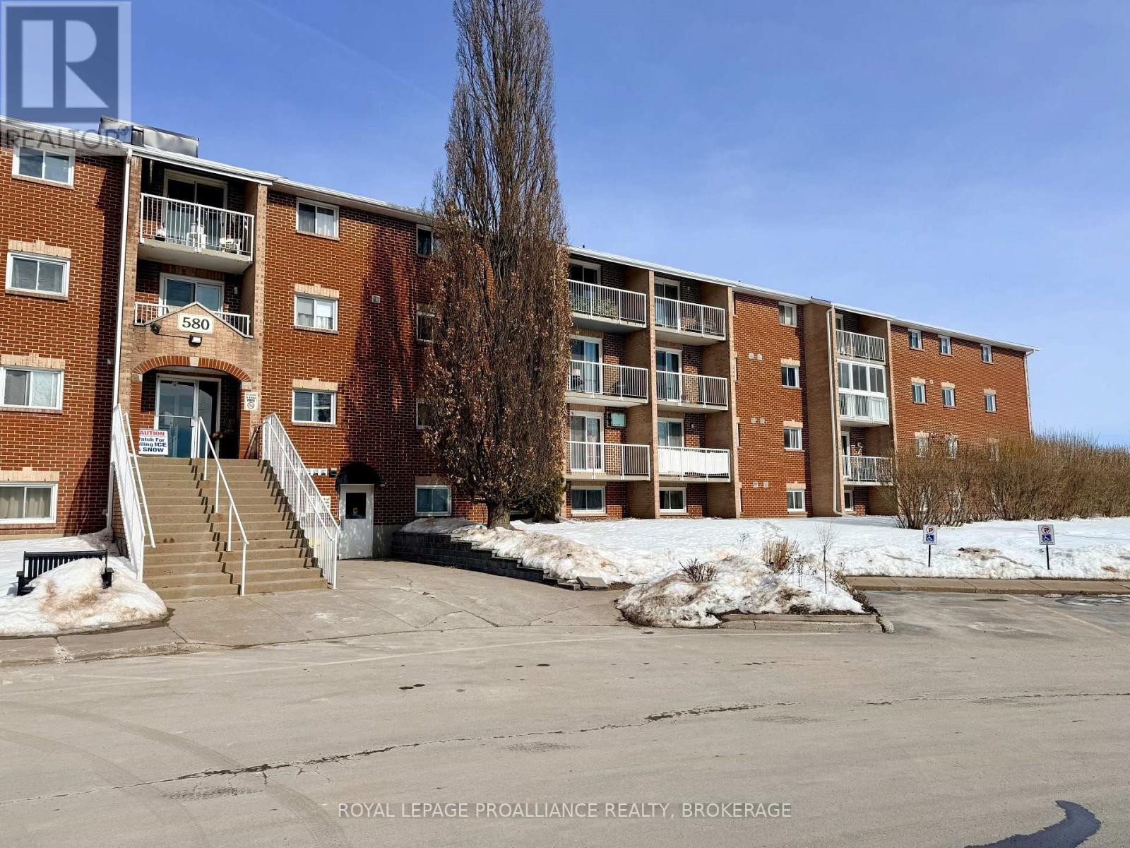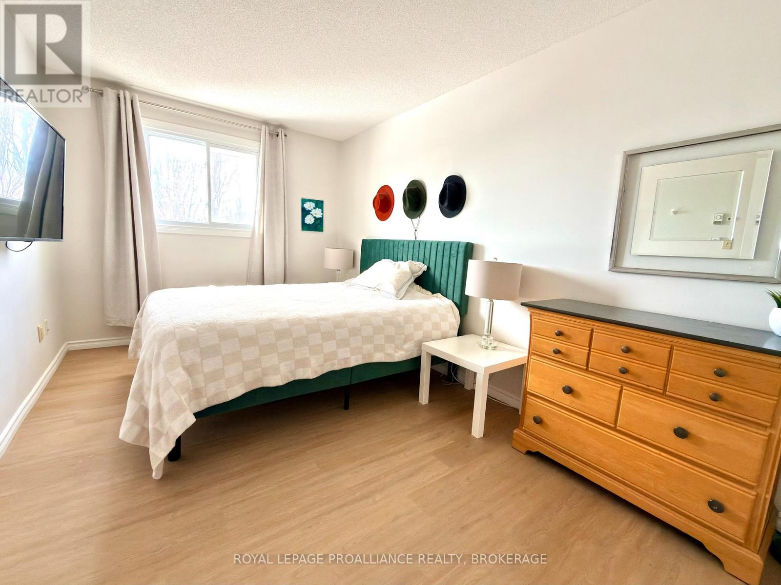 Welcome to this ideally located 2-bedroom condo in a great central city neighbourhood - perfect for students, professionals, or investors alike. Conveniently situated near transit with easy access to St. Lawrence College and Queen's University, this location makes commuting simple and stress-free. Inside, you'll find a bright and functional layout featuring a spacious living and dining area with sliding doors leading to a private south-facing balcony - the perfect spot to enjoy natural light throughout the day. The galley -style kitchen offers efficient workspace and a pass-through window overlooking the main living area, creating an open and connected feel. The unit includes two well sized bedrooms and a 4-piece bath. Additional features include in-building laundry and a secure entry system for piece of mind. Close to parks, shopping and public transit, this condo offers comfort, convenience and an unbeatable location in the heart of the city. This condo is updated and move-in ready! (id:64974)