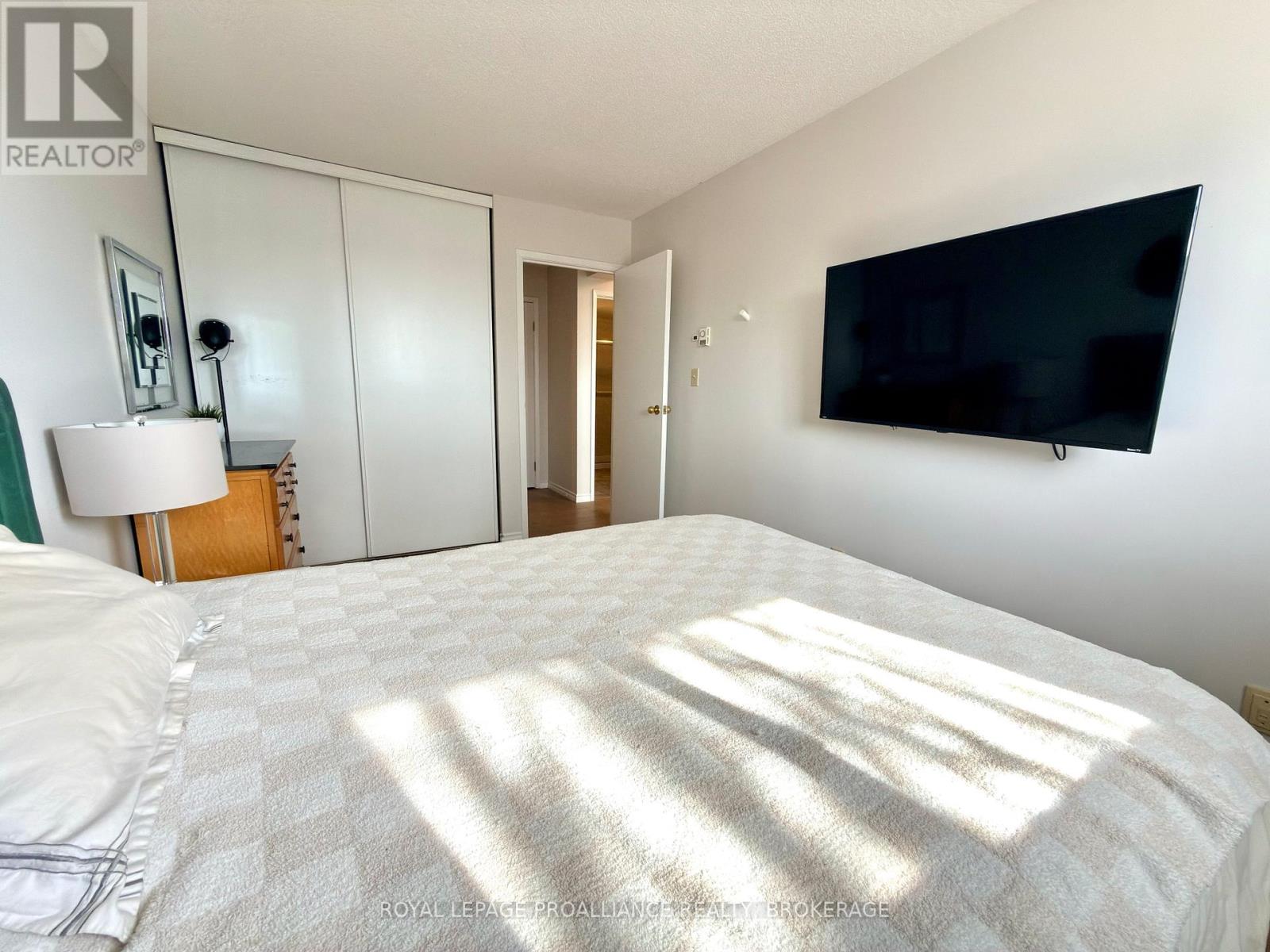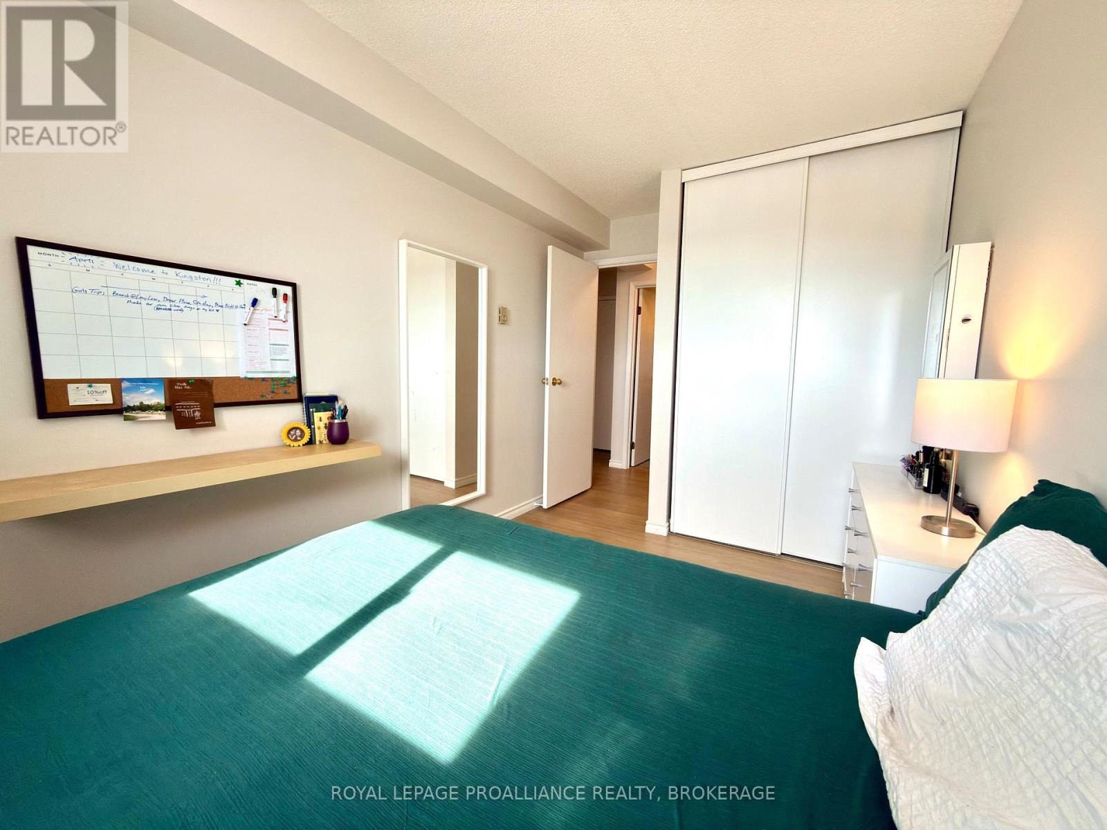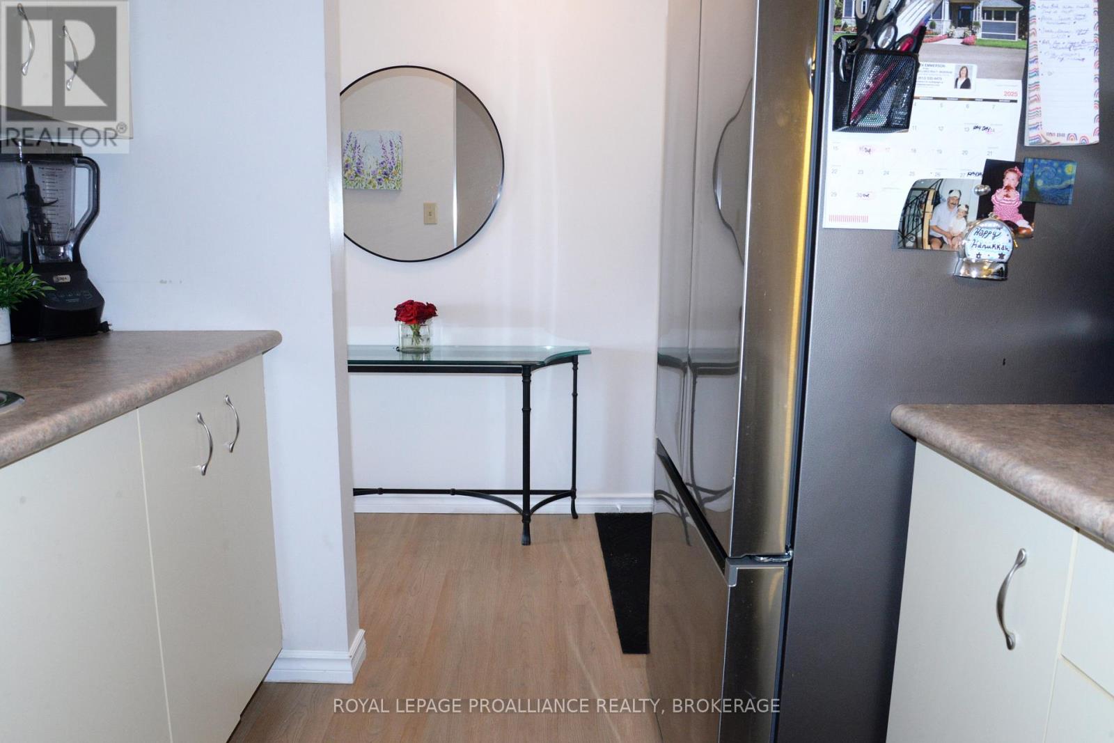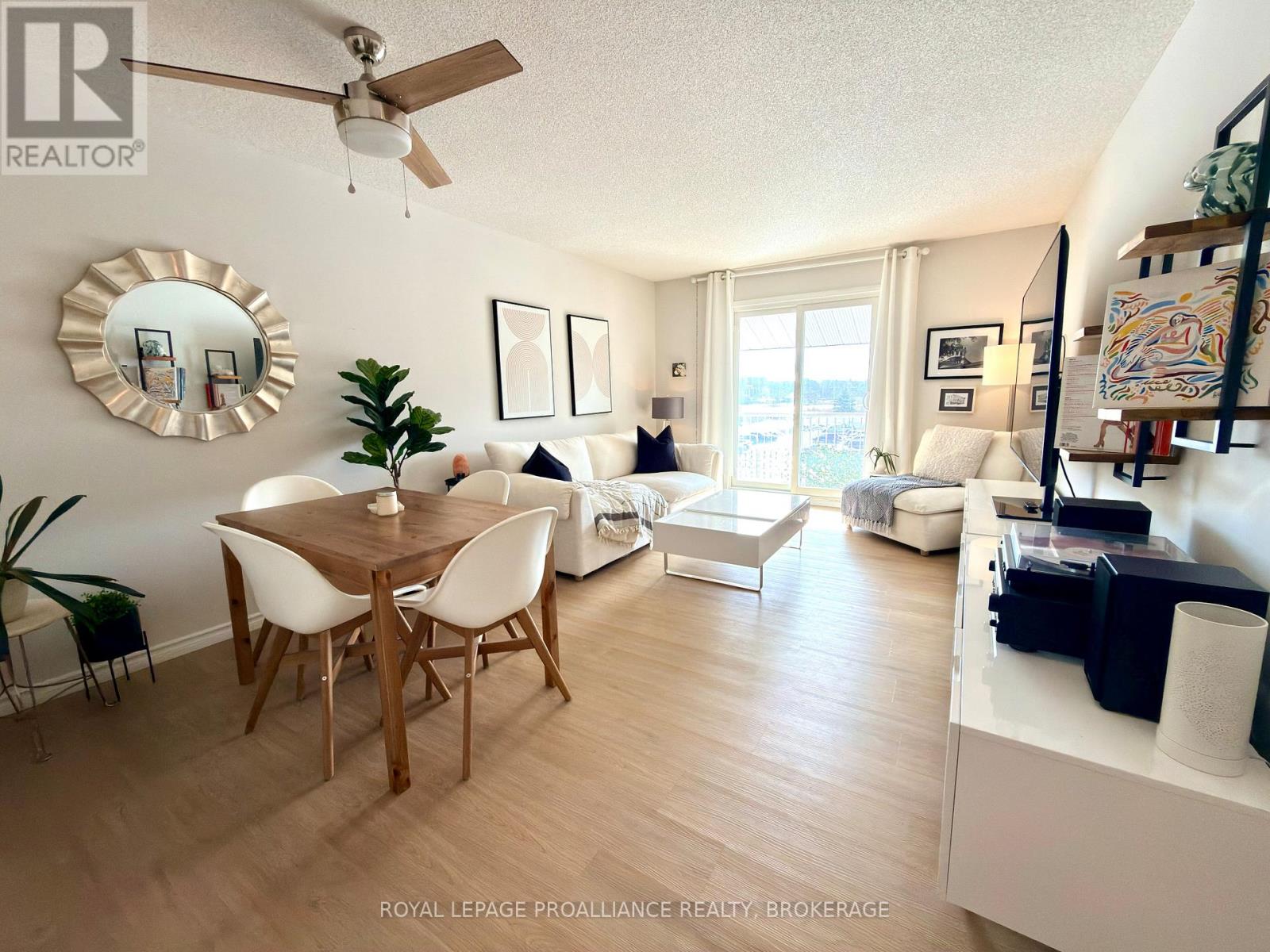 Welcome to this ideally located 2-bedroom condo in a great central city neighbourhood - perfect for students, professionals, or investors alike. Conveniently situated near transit with easy access to St. Lawrence College and Queen's University, this location makes commuting simple and stress-free. Inside, you'll find a bright and functional layout featuring a spacious living and dining area with sliding doors leading to a private south-facing balcony - the perfect spot to enjoy natural light throughout the day. The galley -style kitchen offers efficient workspace and a pass-through window overlooking the main living area, creating an open and connected feel. The unit includes two well sized bedrooms and a 4-piece bath. Additional features include in-building laundry and a secure entry system for piece of mind. Close to parks, shopping and public transit, this condo offers comfort, convenience and an unbeatable location in the heart of the city. This condo is updated and move-in ready! (id:64974)